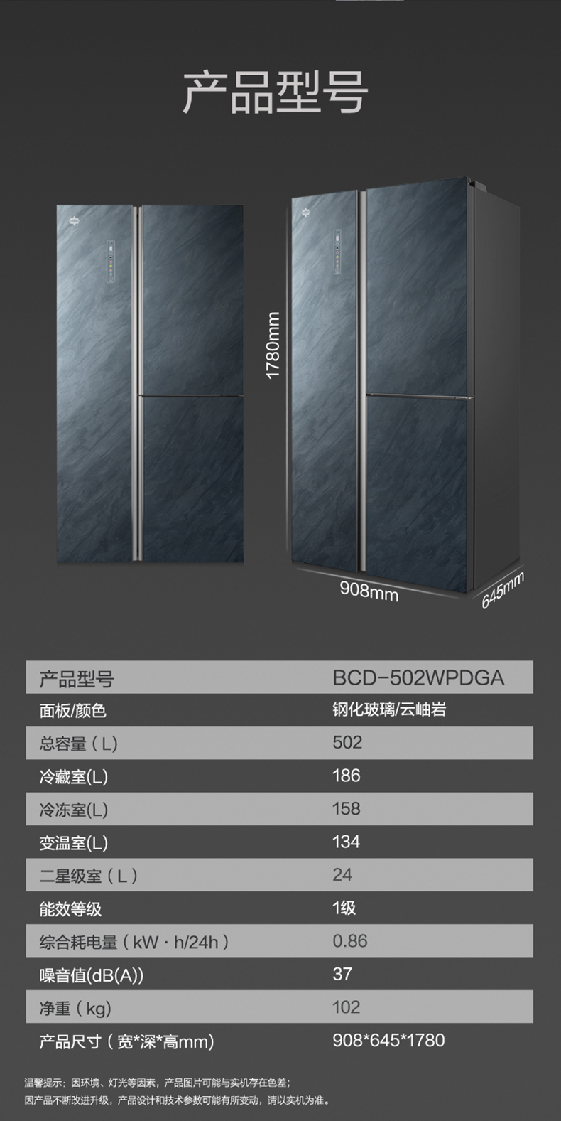 晶弘·对开门冰箱 502L BCD-502WPDGA/云岫岩