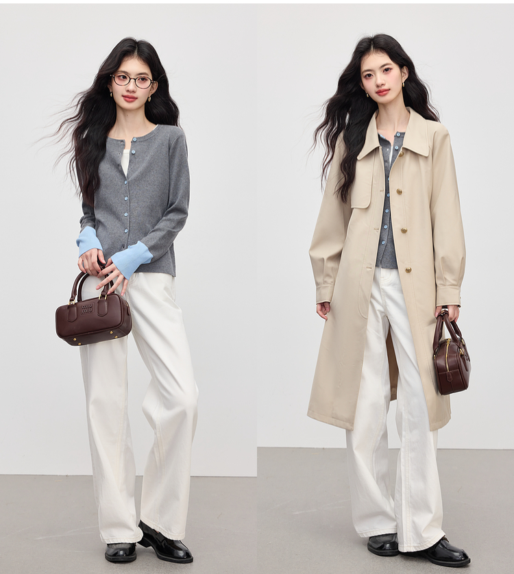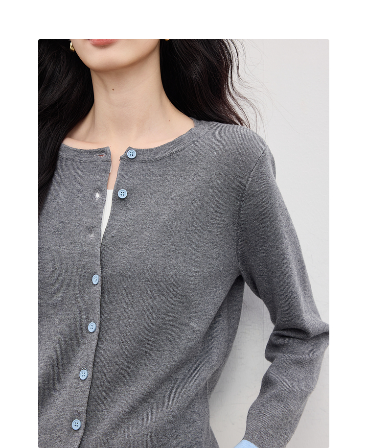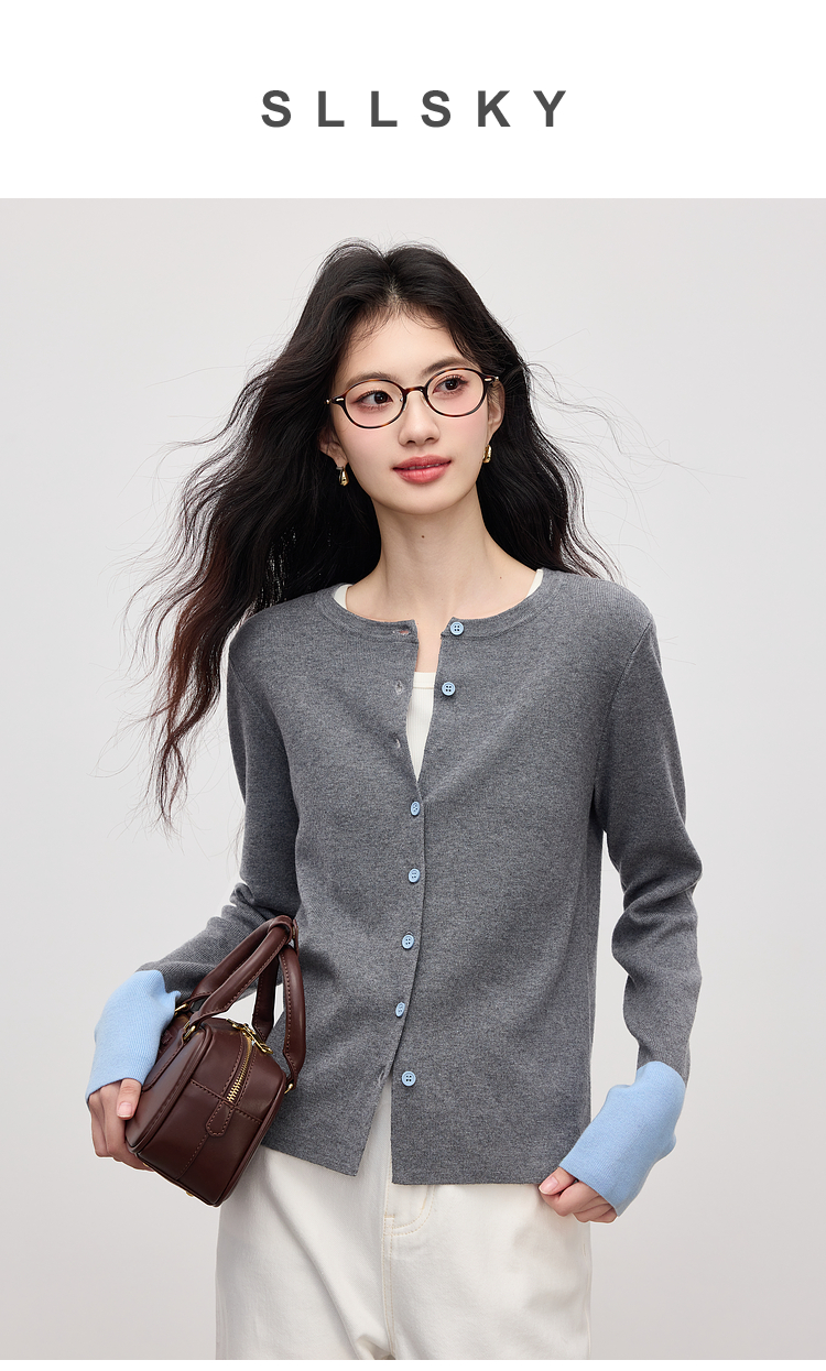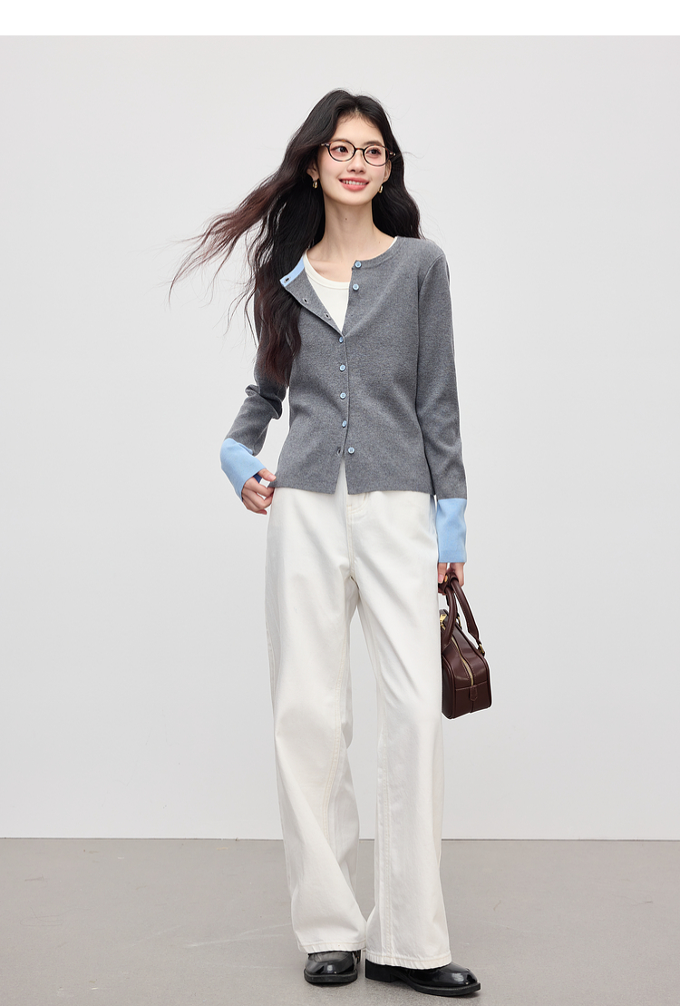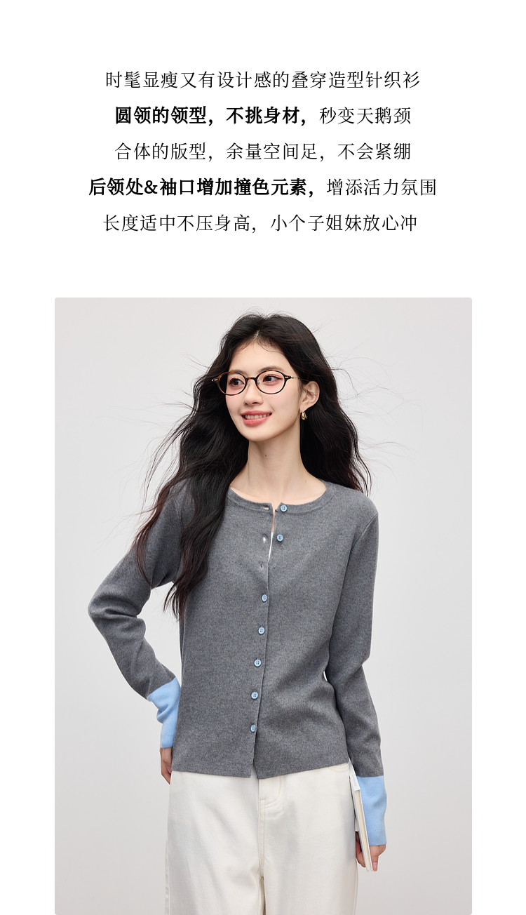 【09/03新品】熙世界2025女秋季新款拼色长袖羊毛针织衫女休闲修身圆领毛衣开衫