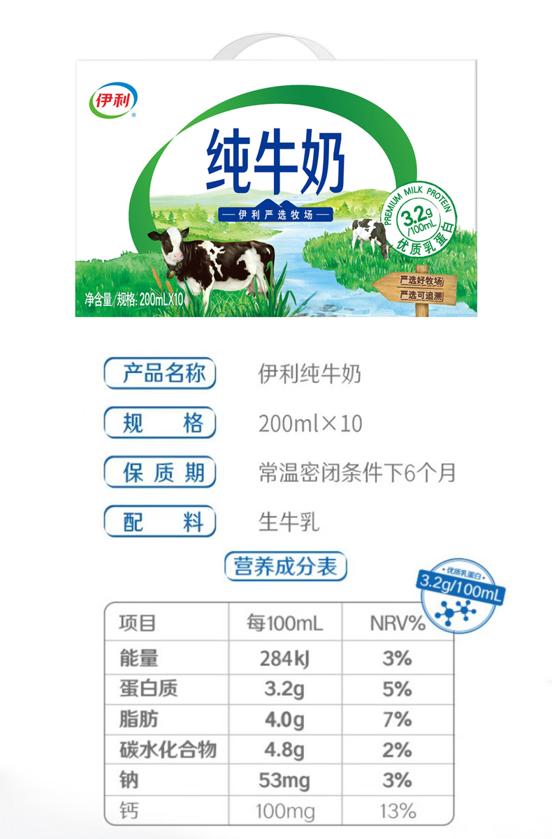 伊利严选牧场纯牛奶(200ml*10)