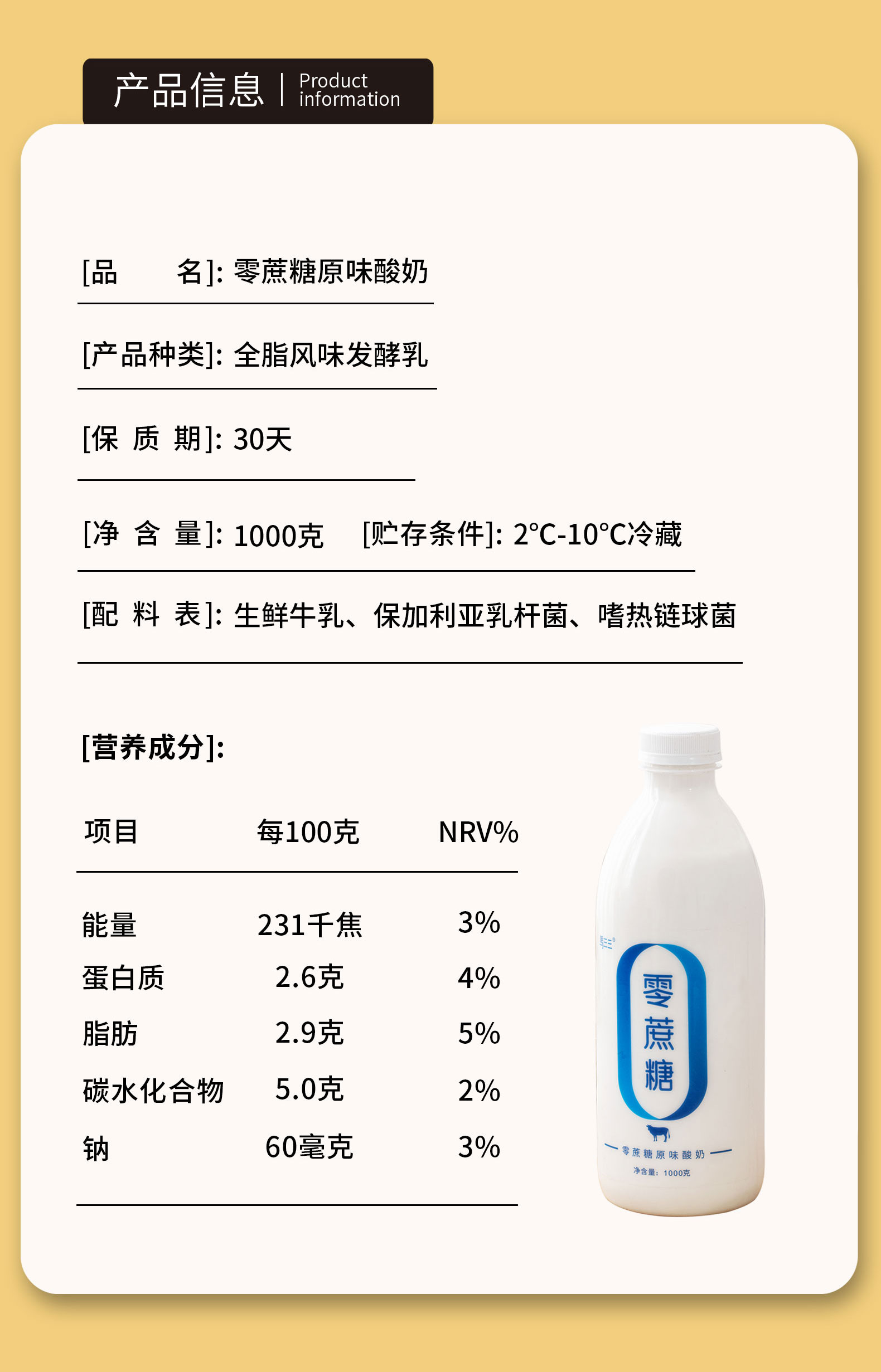 【配料】生鲜牛乳、保加利亚乳杆菌、嗜热链球菌