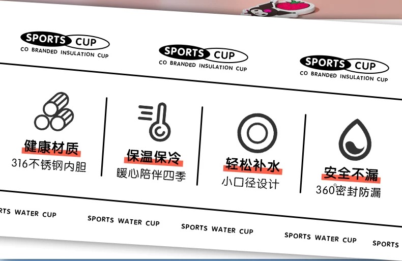 【品牌直发】【杯具熊飞天小女警联名系列】 便携简约运动杯 保温杯