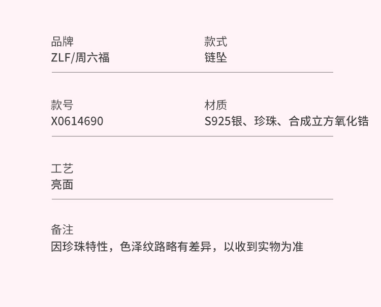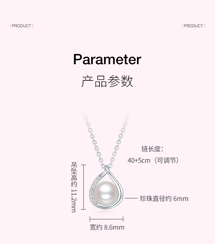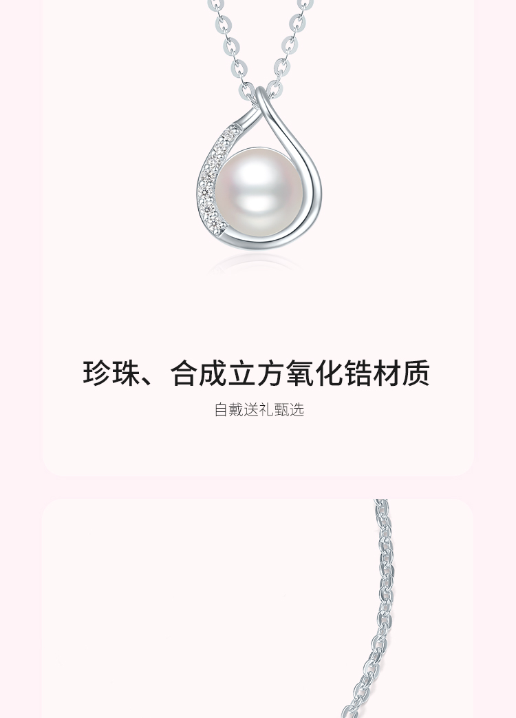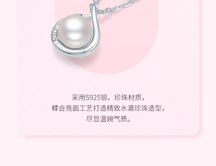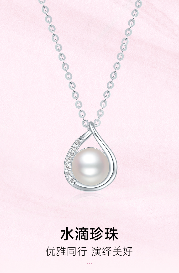 周六福淡水珍珠项链女水滴珍珠链坠S925银优雅送女友送女友礼物