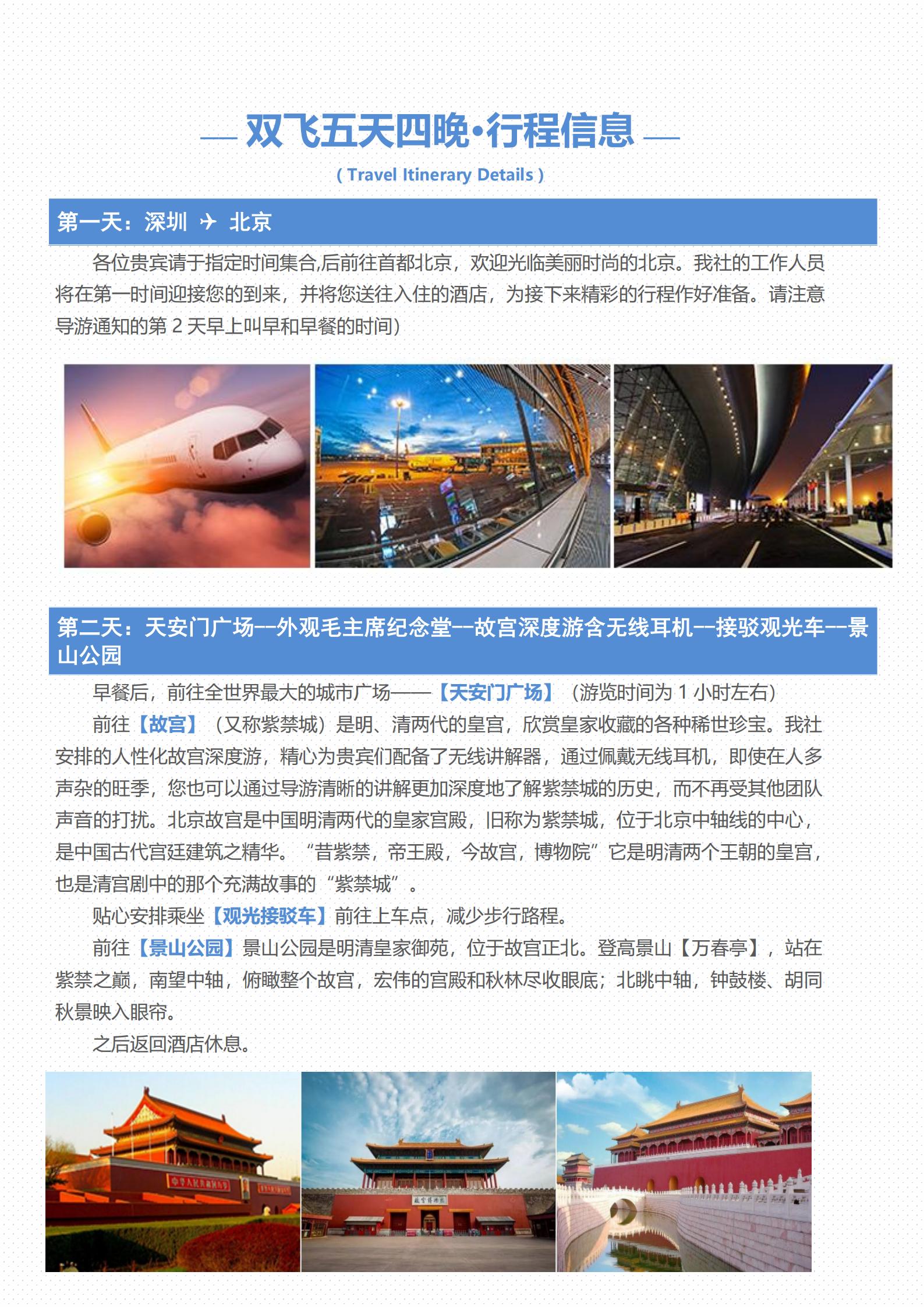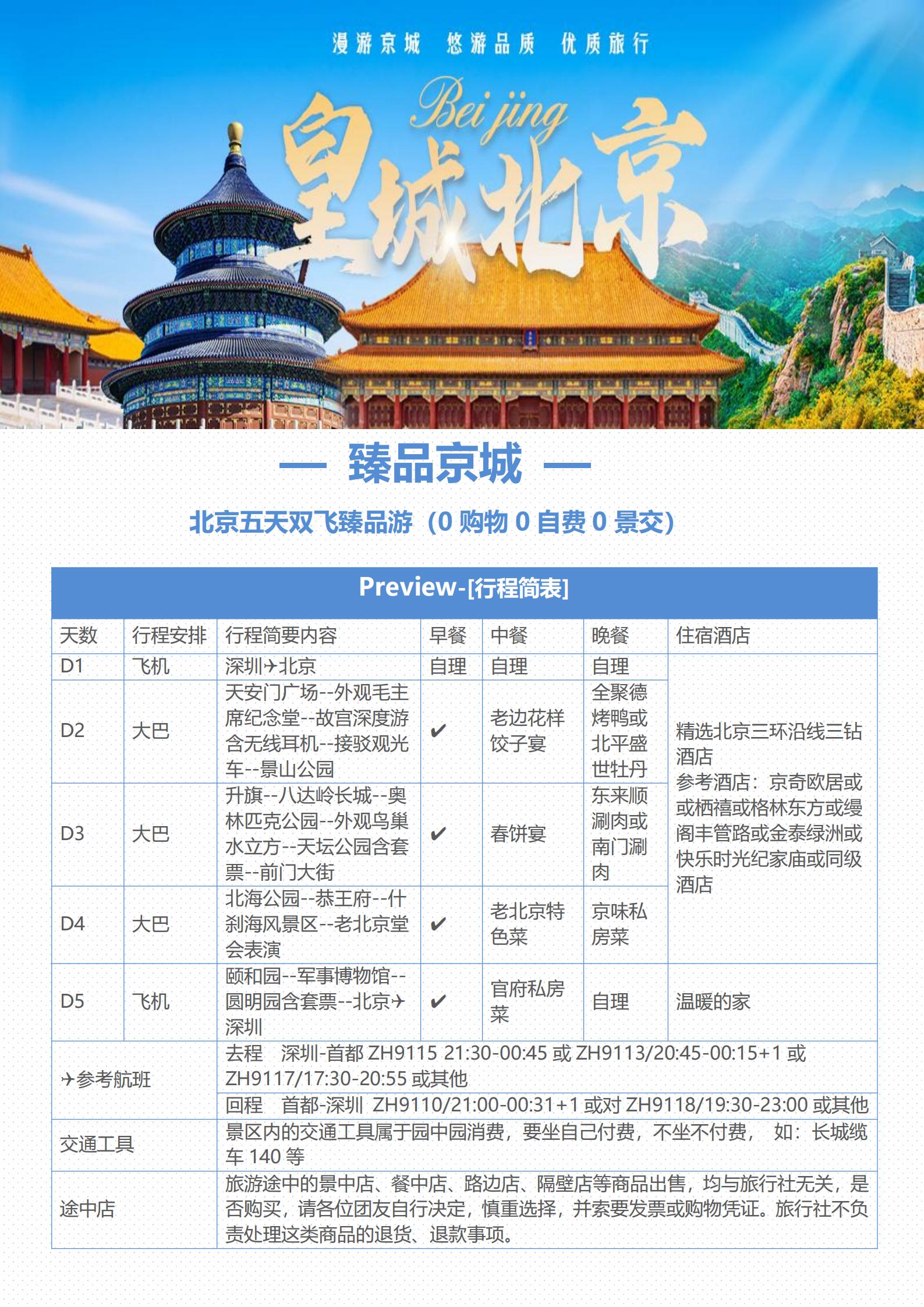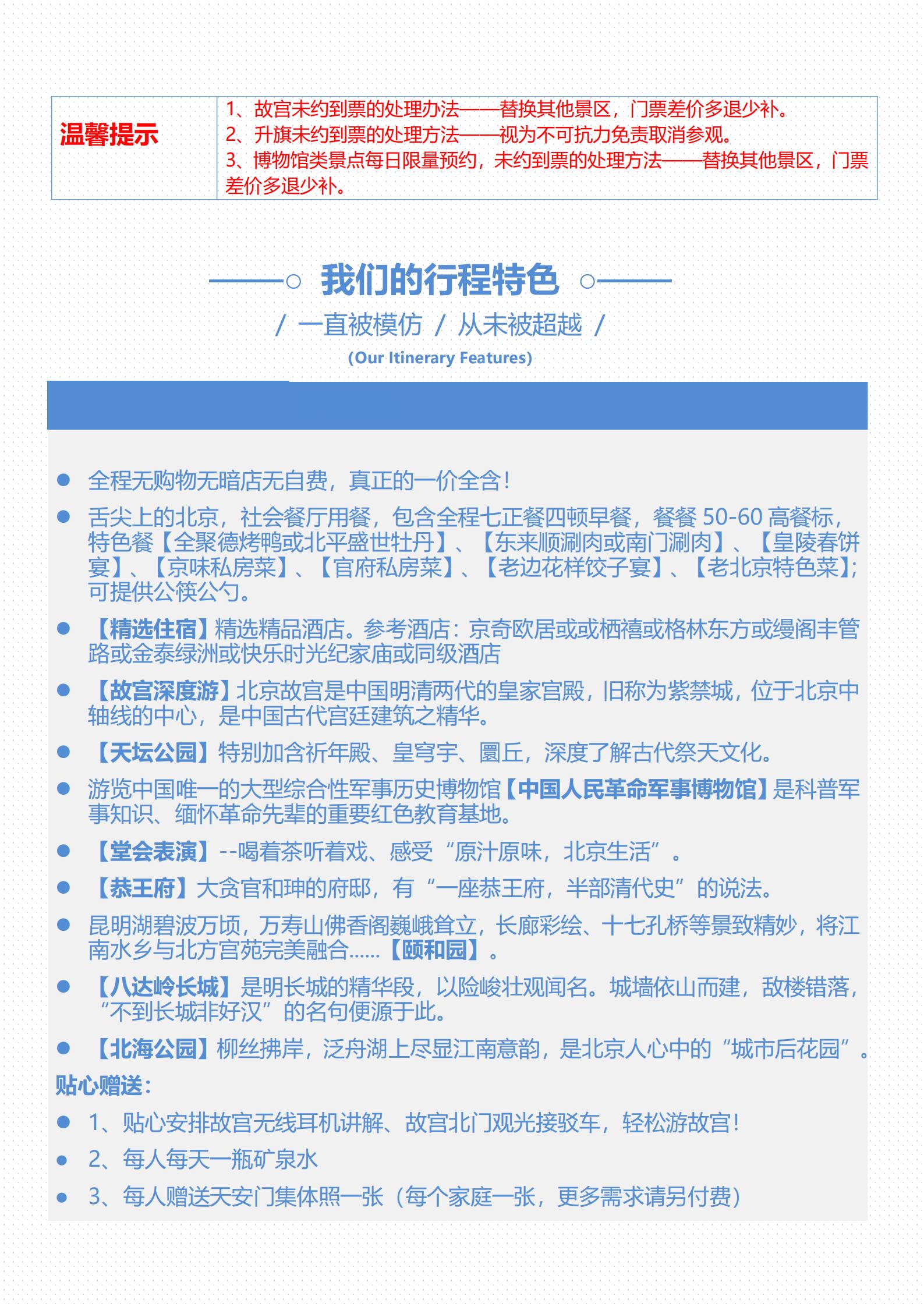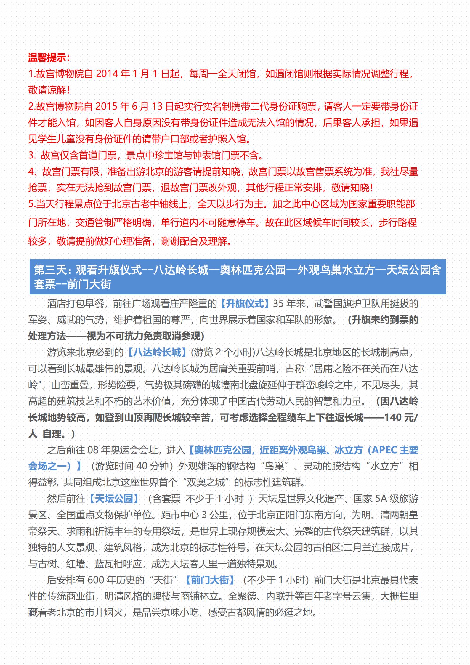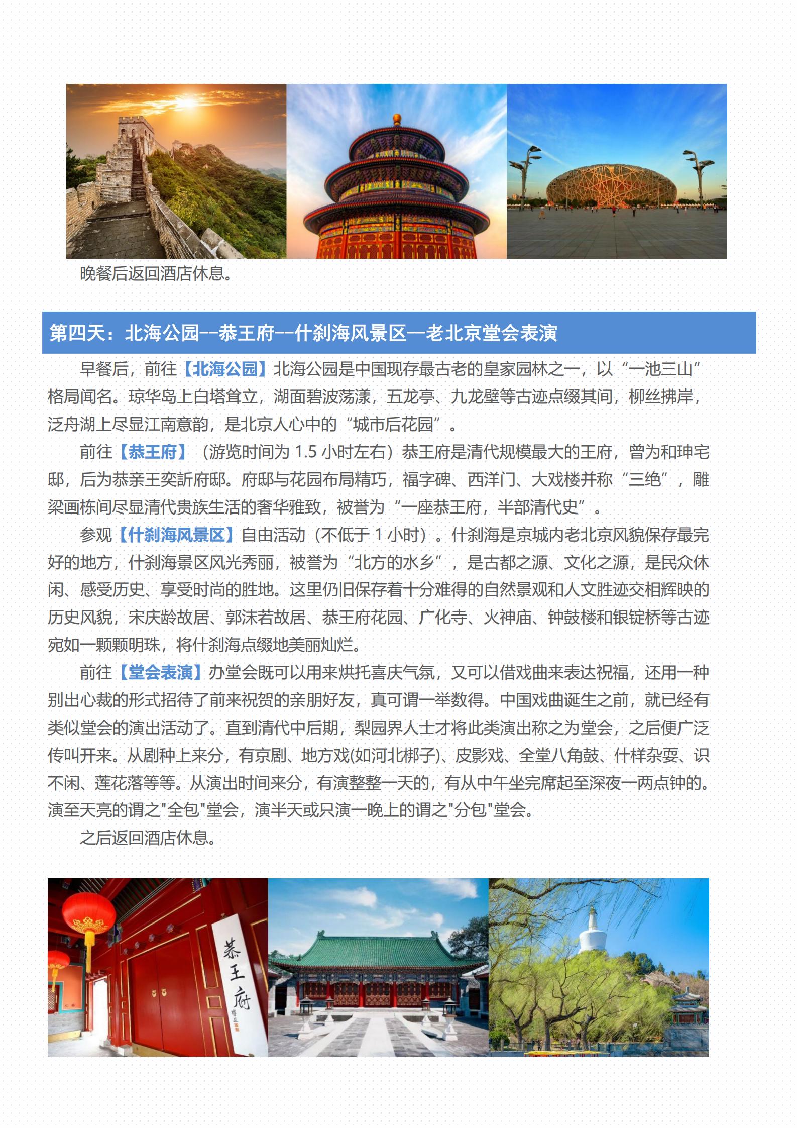 【五一 特惠游】<北京五天双飞(三环沿线3钻酒店)>故宫、什刹海、天安门广场、景山公园、升旗、八达岭长城、奥林匹克公园、国粹杂技表演、颐和园、北海公园、恭王府、天坛、军事博物馆、堂会表演、圆明园