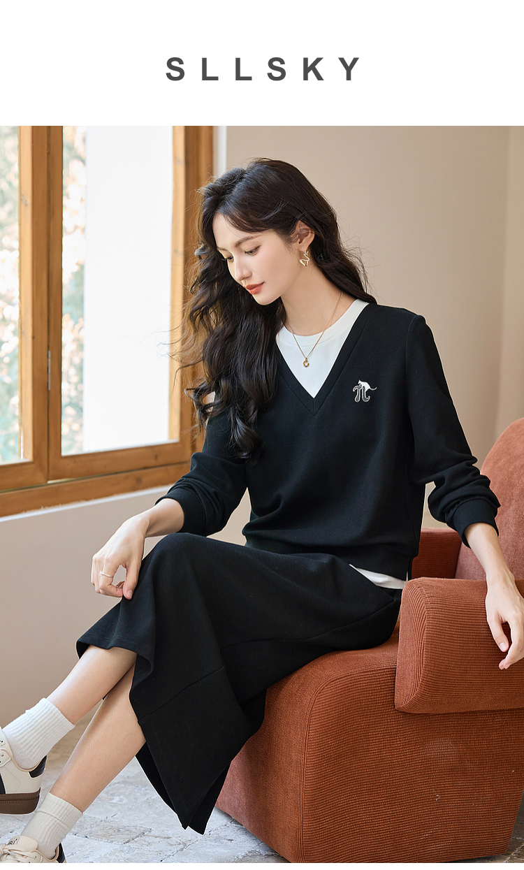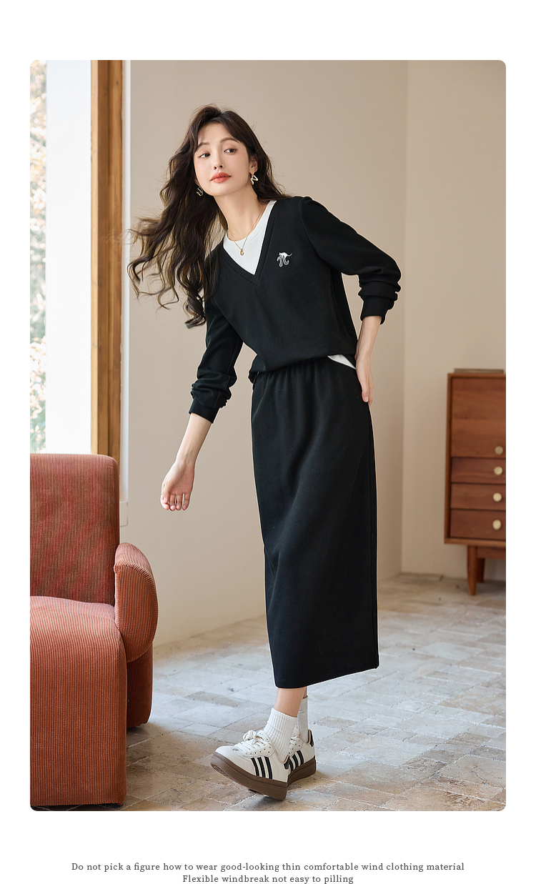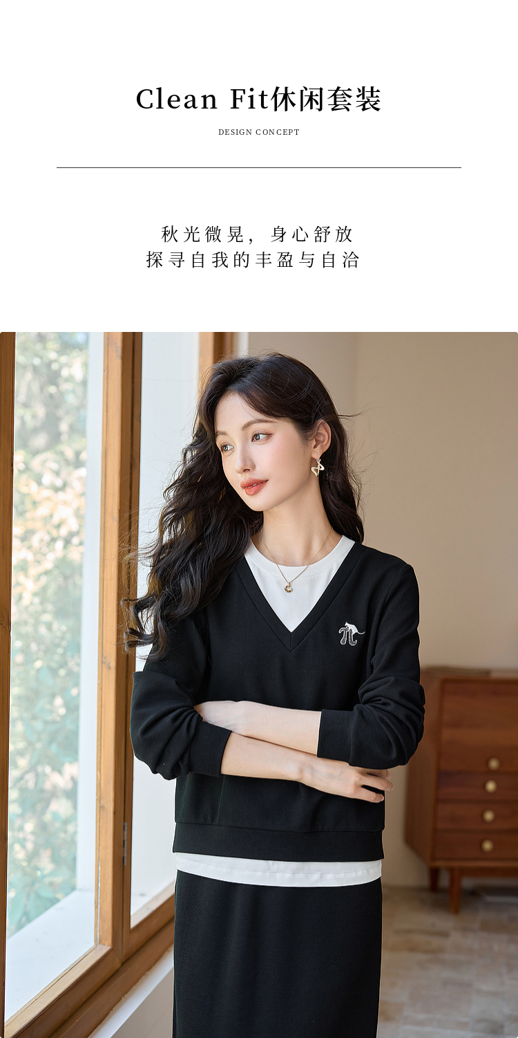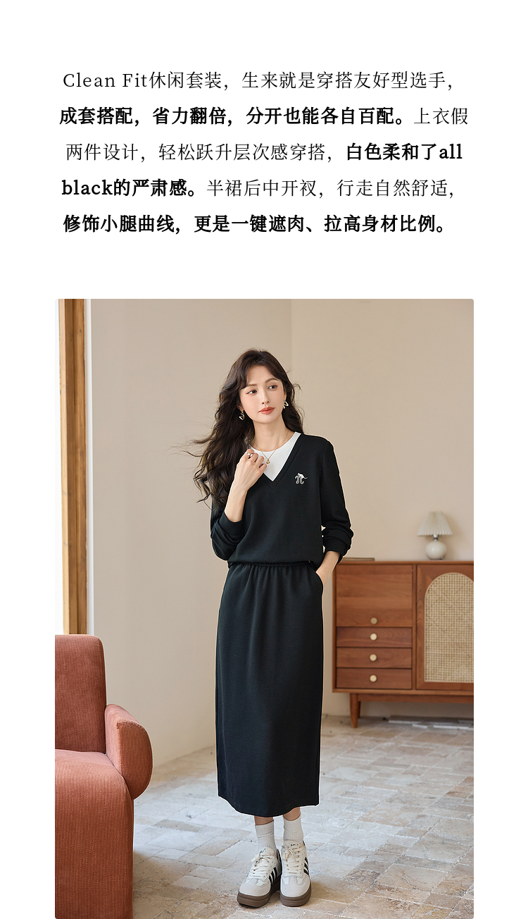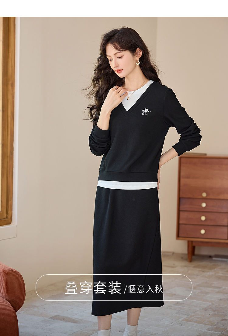 【年终特卖】熙世界休闲套装2025秋季新款时尚减龄撞色套头上衣半身裙两件套