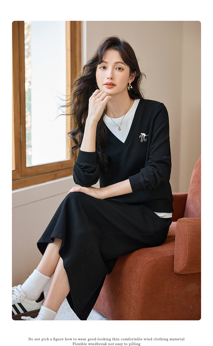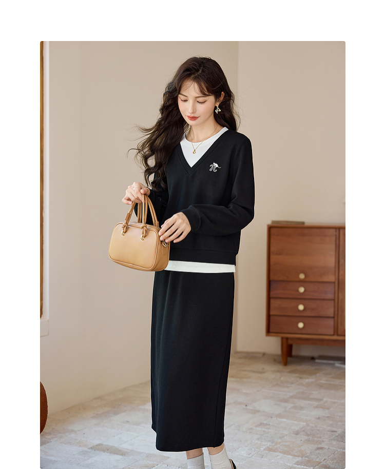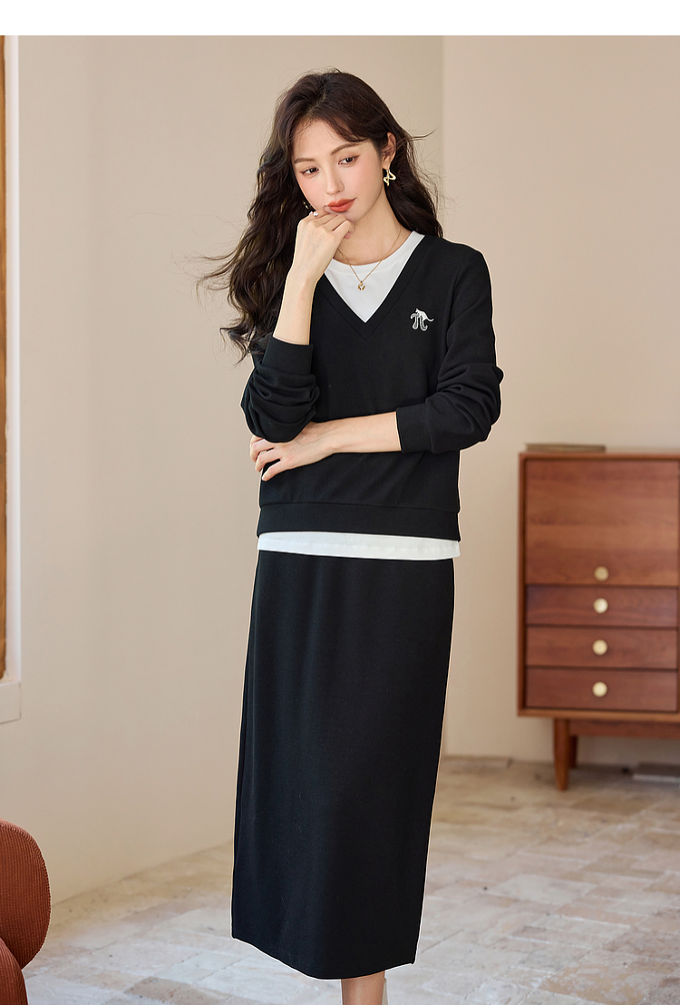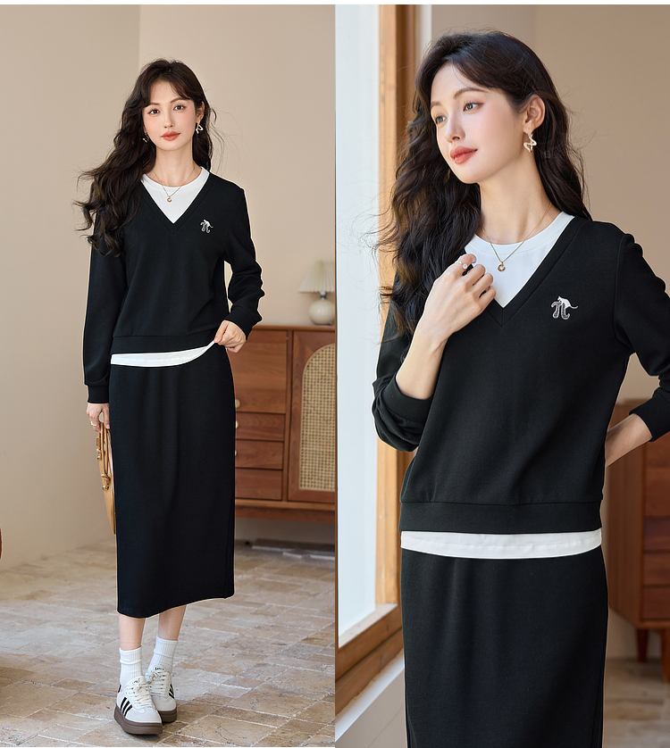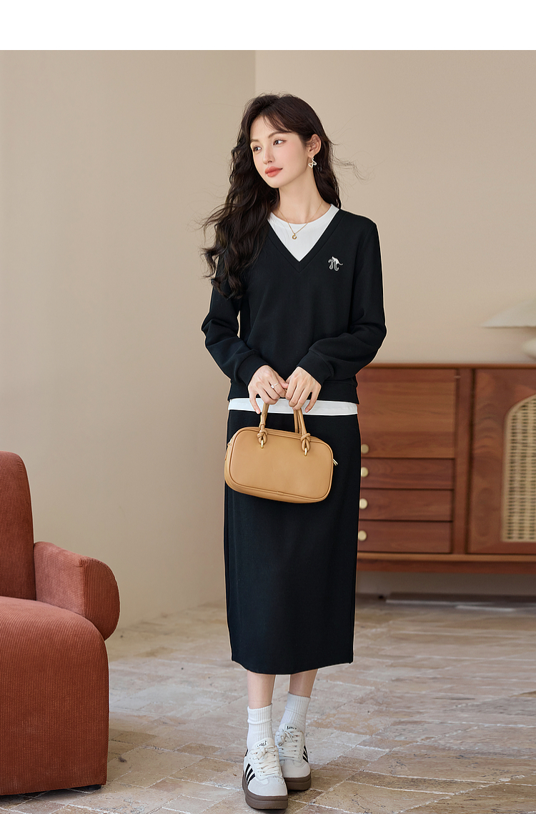 【年终特卖】熙世界休闲套装2025秋季新款时尚减龄撞色套头上衣半身裙两件套