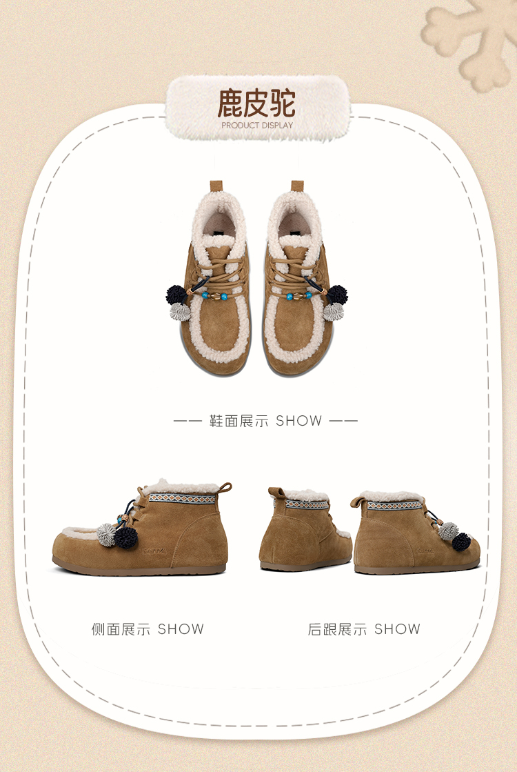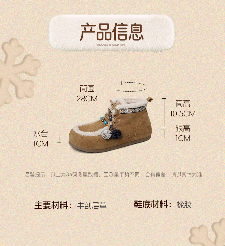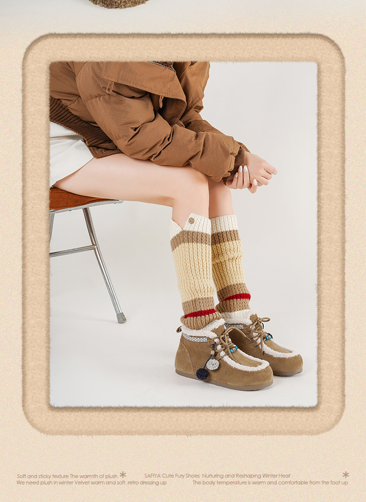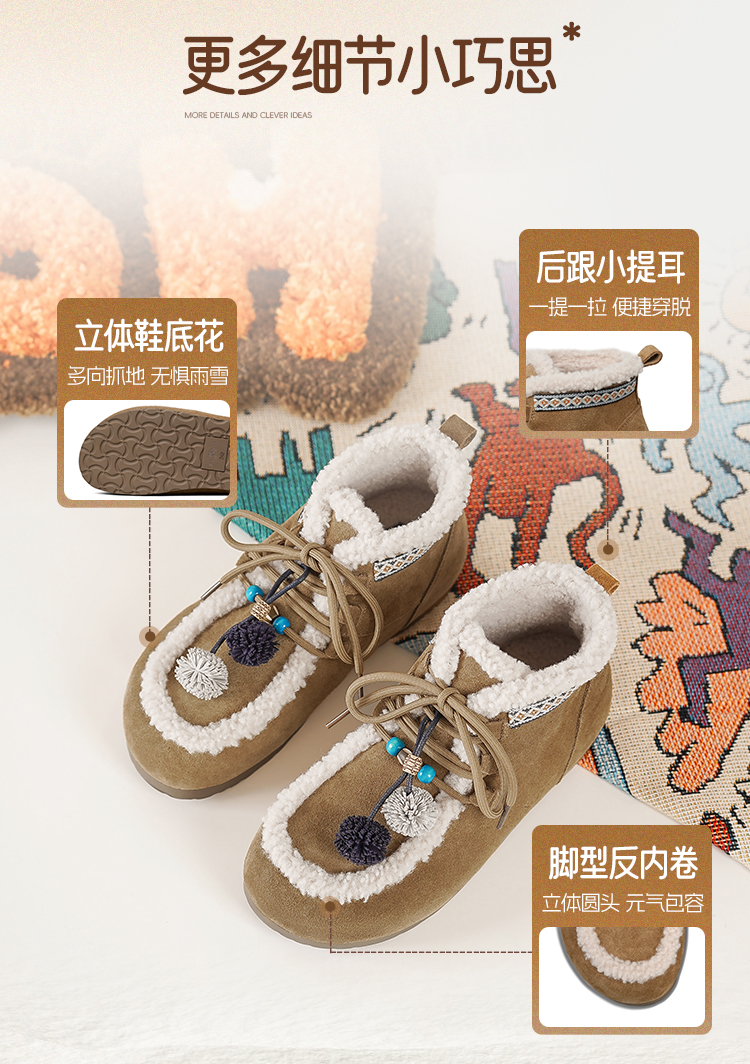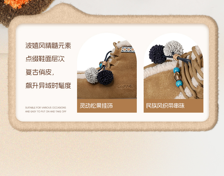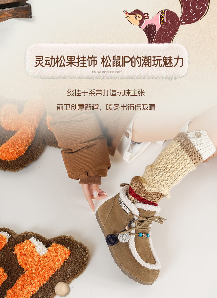 Safiya/索菲娅2025艺术家联名松果串珠系带百搭厚底加绒保暖短靴SFD411A025