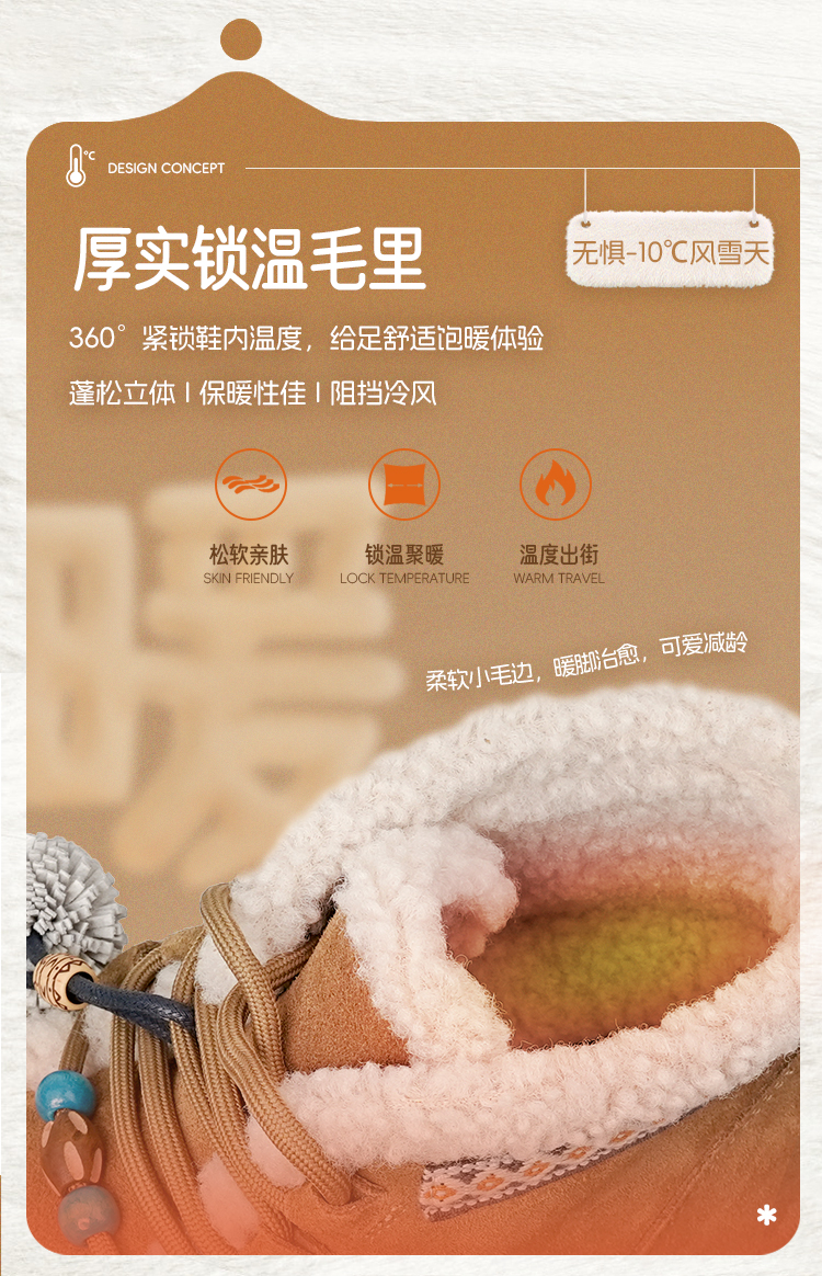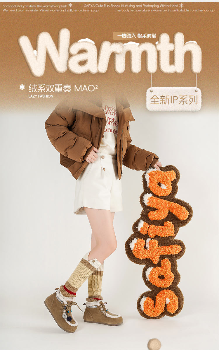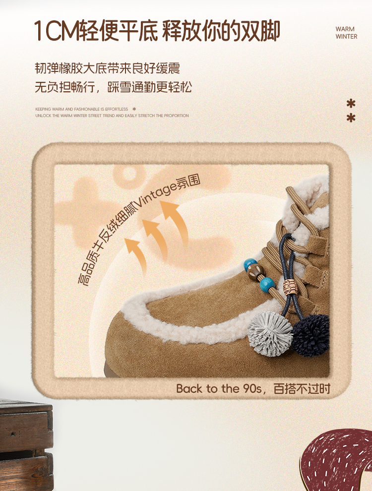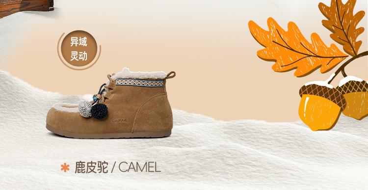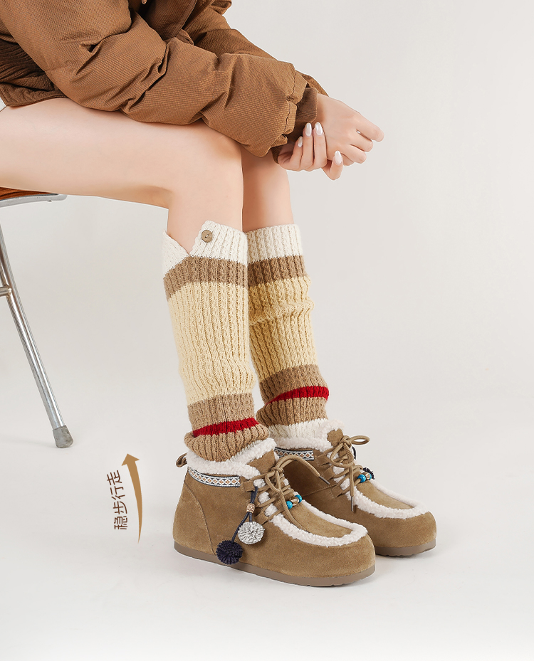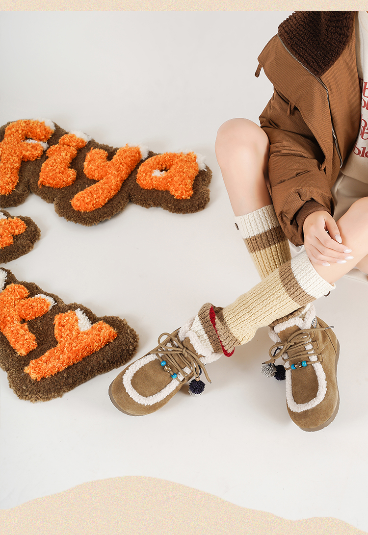 Safiya/索菲娅2025艺术家联名松果串珠系带百搭厚底加绒保暖短靴SFD411A025