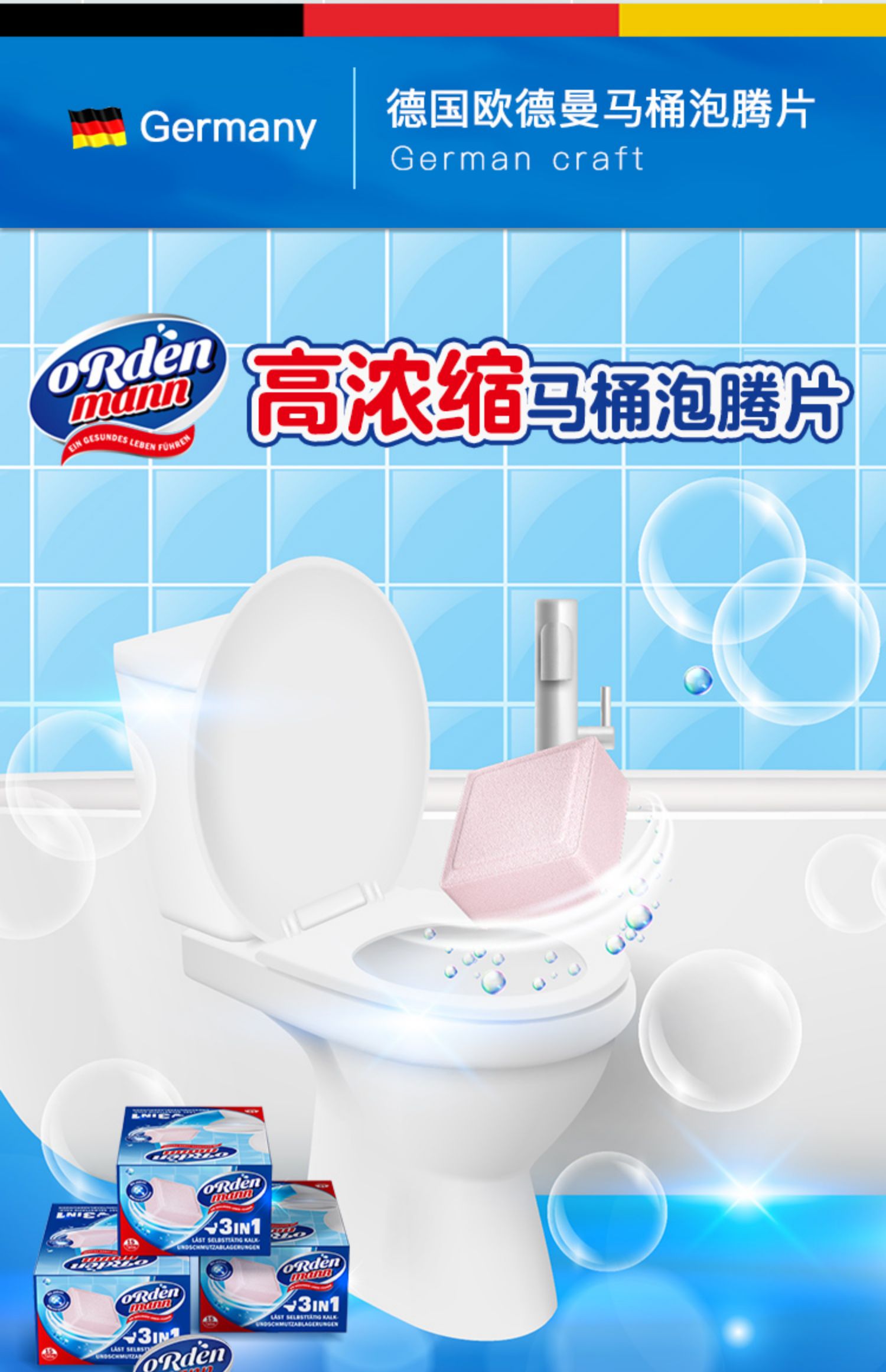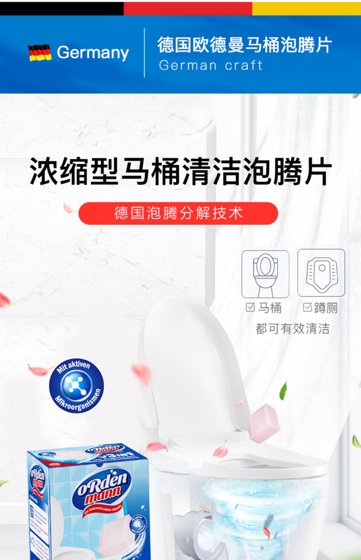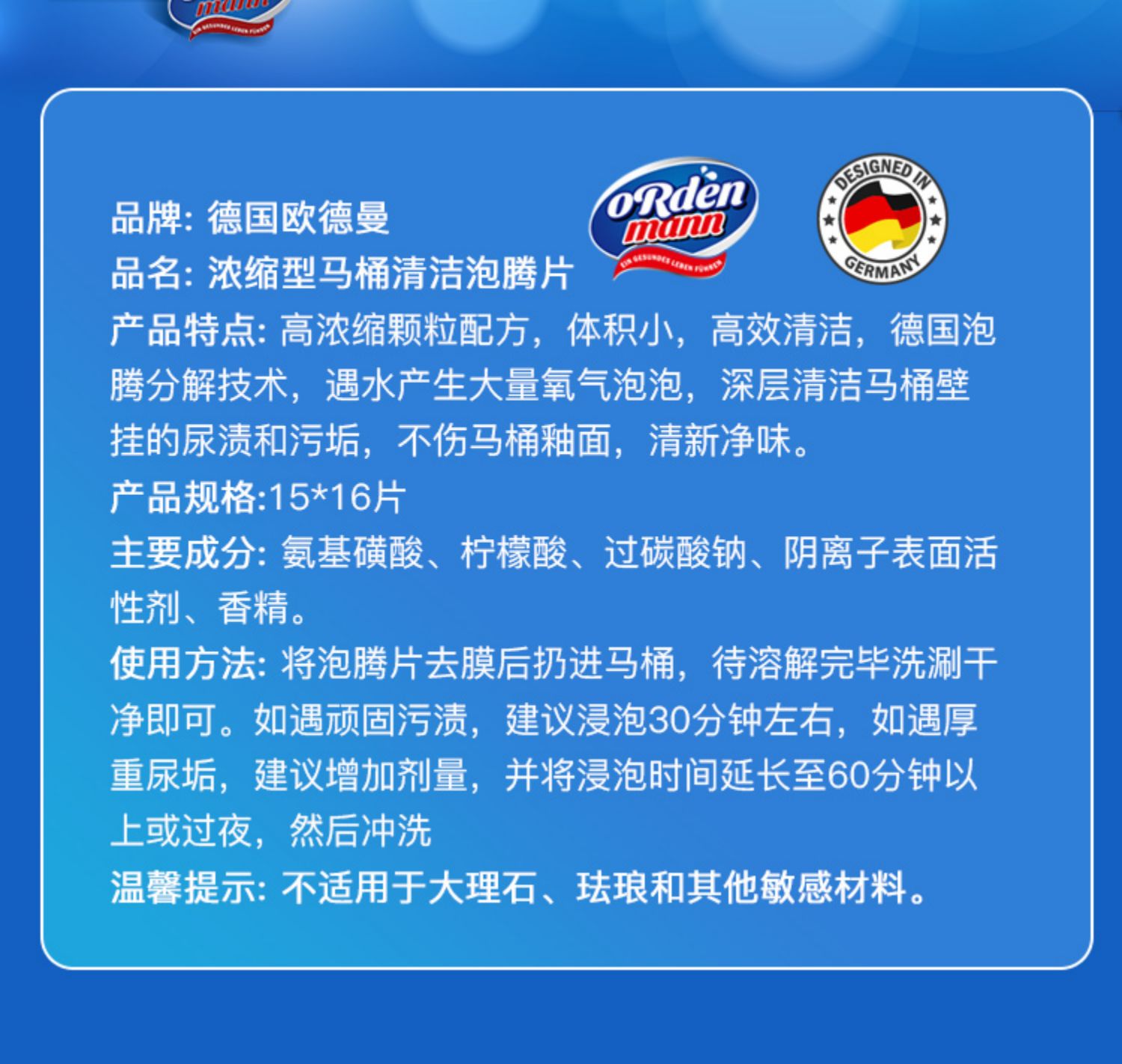 欧德曼 浓缩型马桶清洁泡腾片 15克*16片 【全新品】