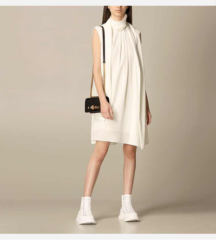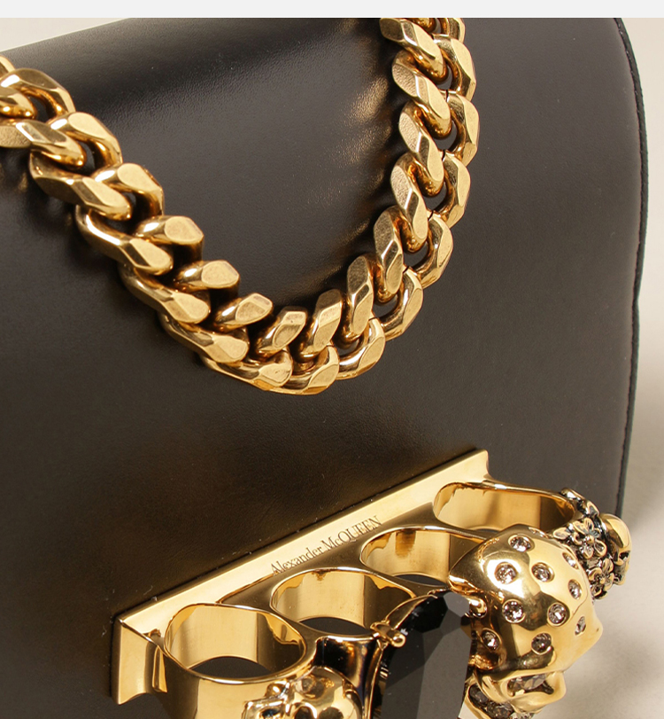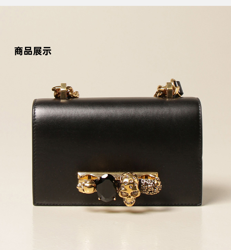 ALEXANDER MCQUEEN 亚历山大.麦昆 女士小号鳄鱼压纹皮革施华洛世奇水晶镶嵌手指骷髅单肩包 黑色 653134 CMO0T 1000