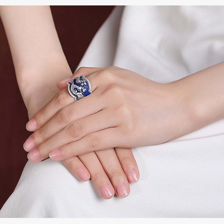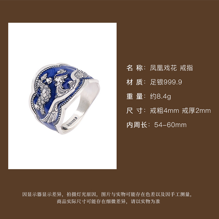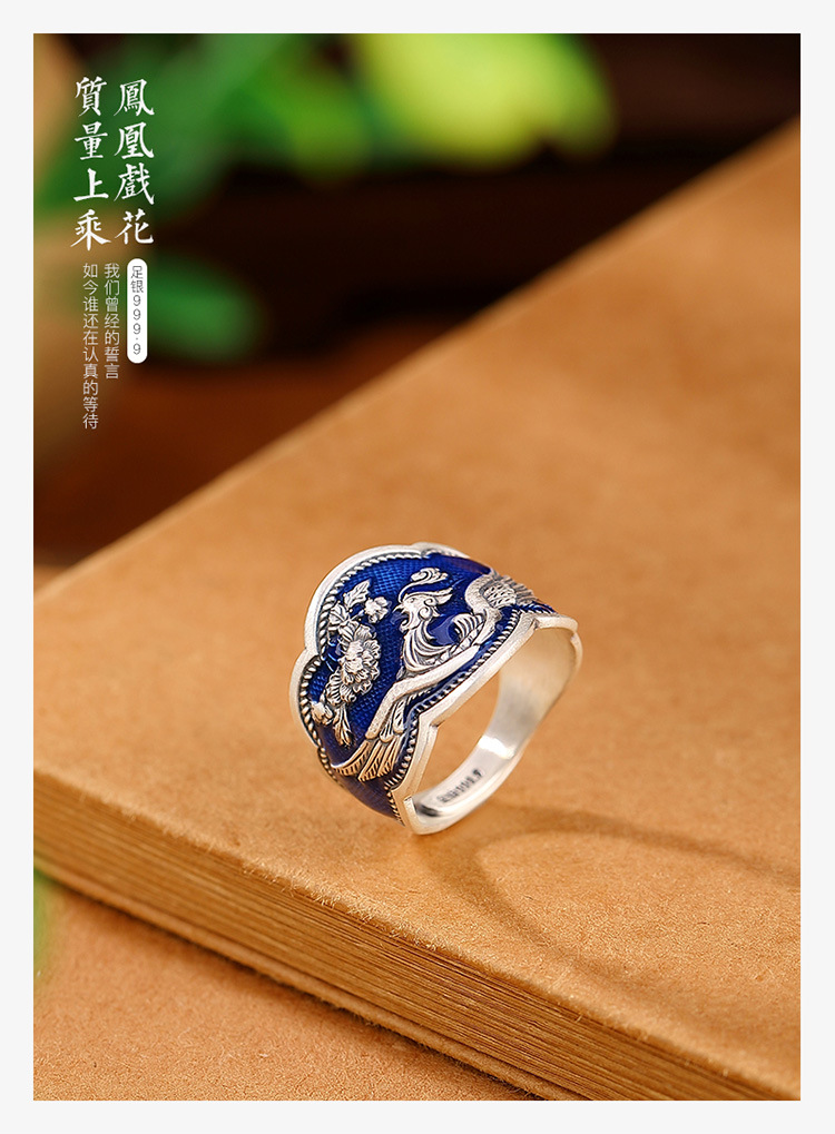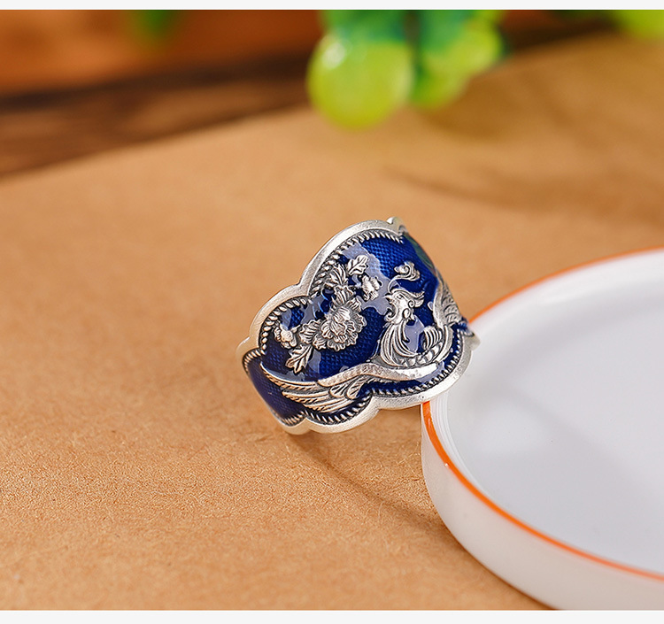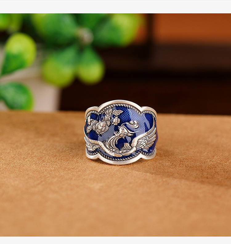 【莲花凤凰】S999银足银景泰蓝戒指【RP-JZ580052】