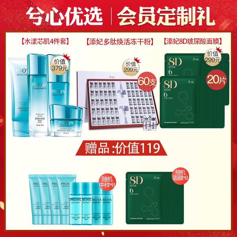 【补水保湿,改善干燥】珀莱雅水漾芯肌洁水乳霜四件套+添妃多肽焕活冻干粉套盒+添妃8D玻尿酸面膜20片D