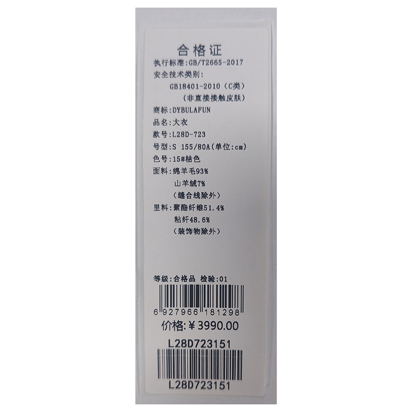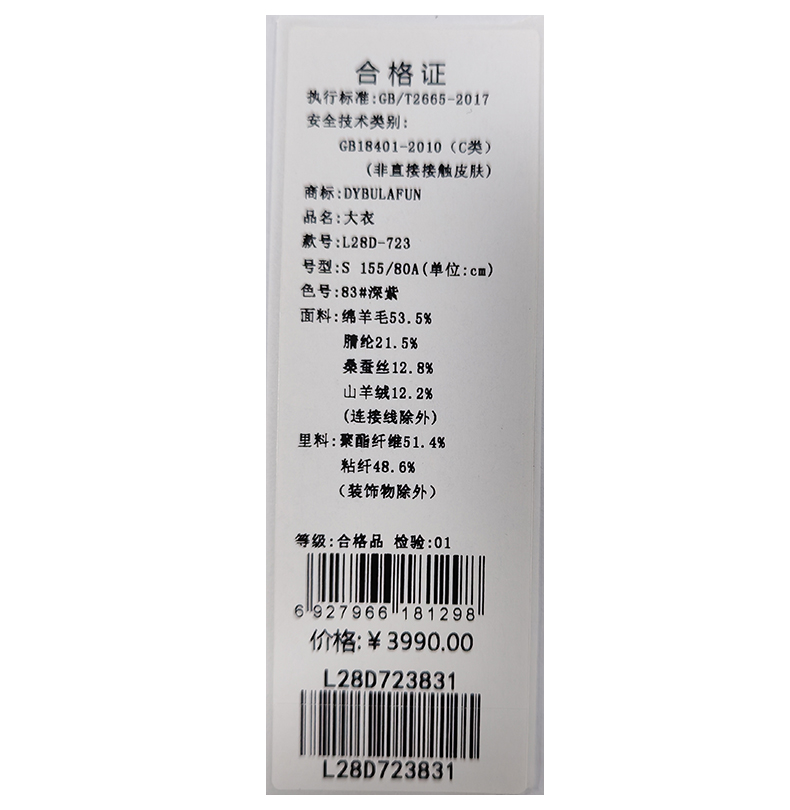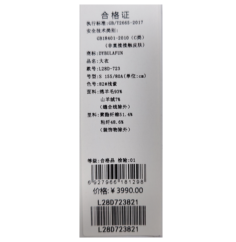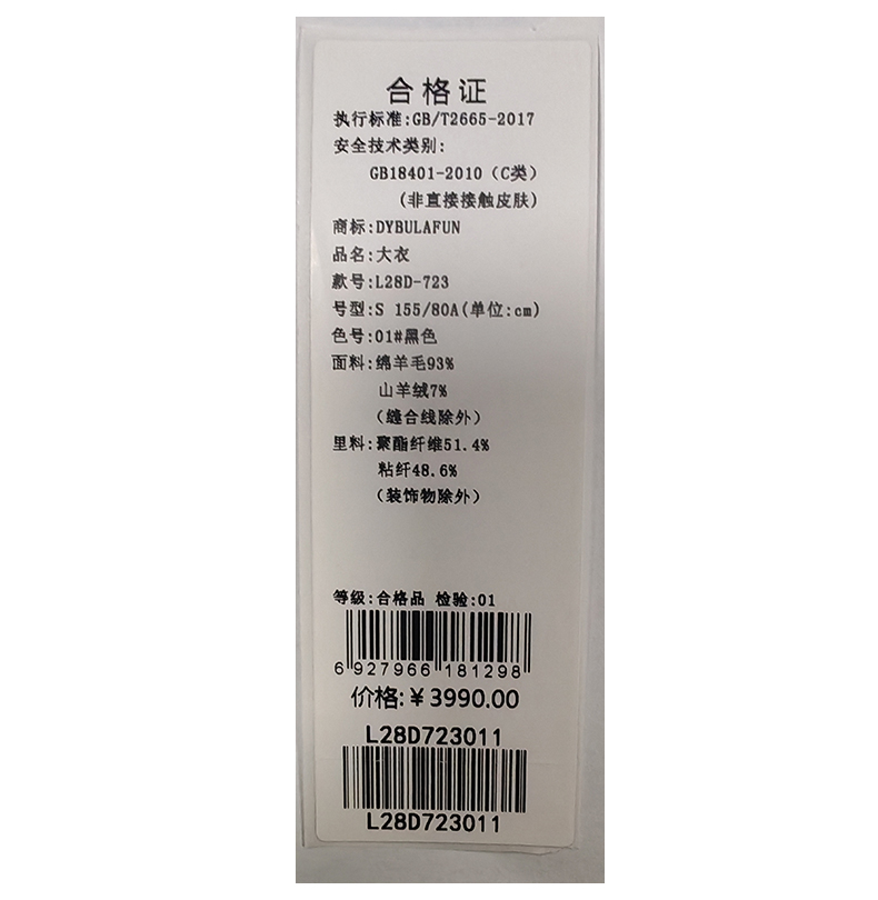戴布拉芬大衣L28D723