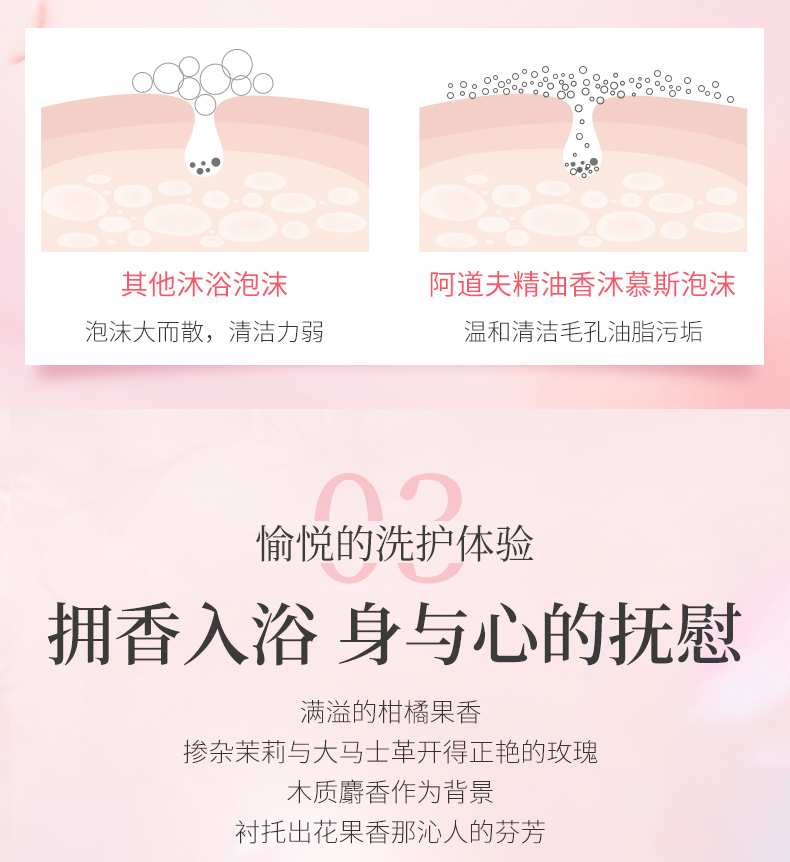 阿道夫 精油香护理专研 香沐慕斯 心动记忆沐浴乳 520ml 48小时发货