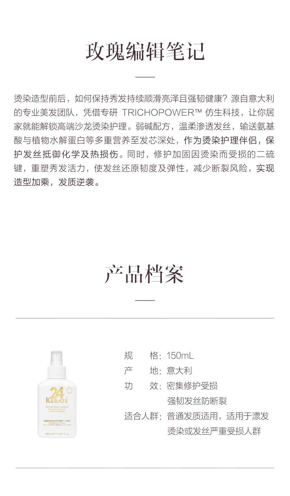 保税直发 24 KERATS 发丝还原喷雾150mL