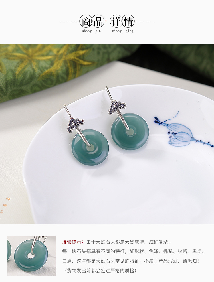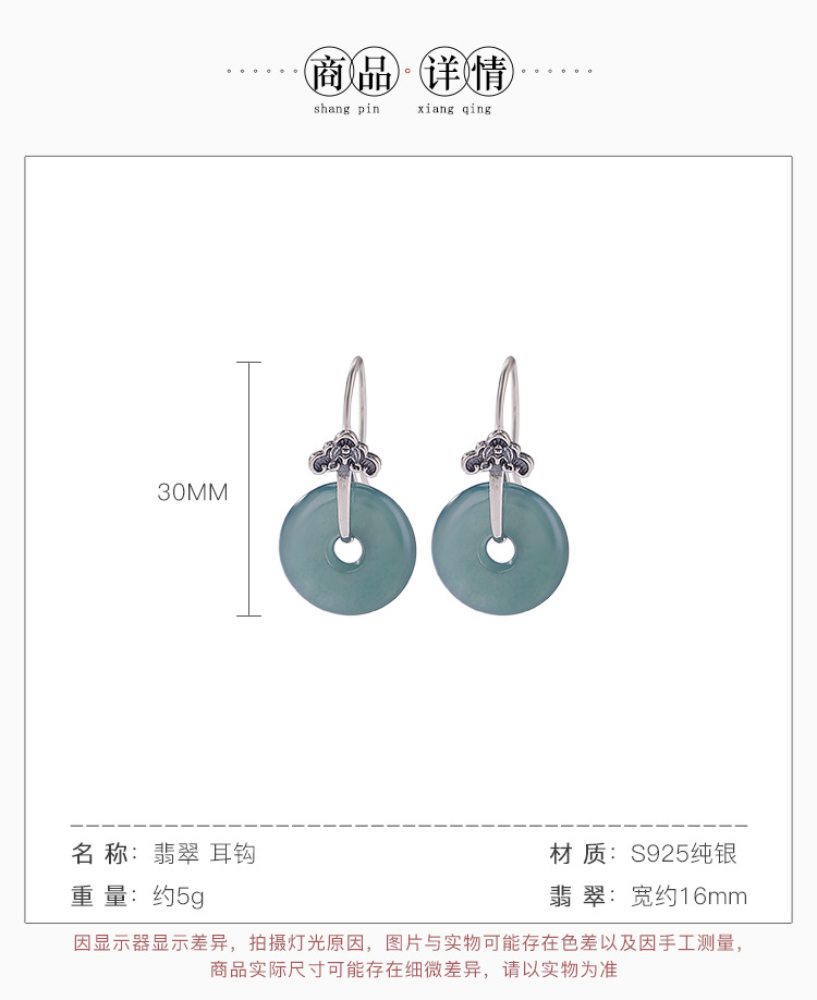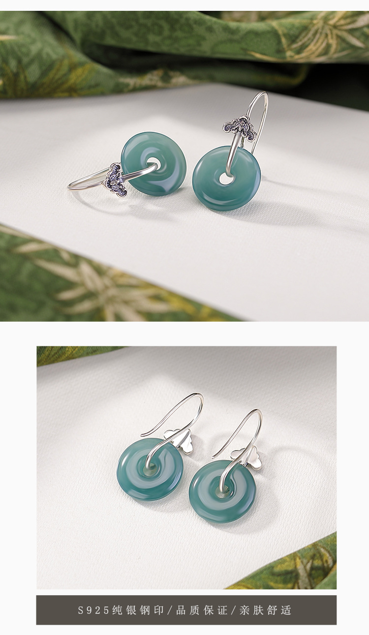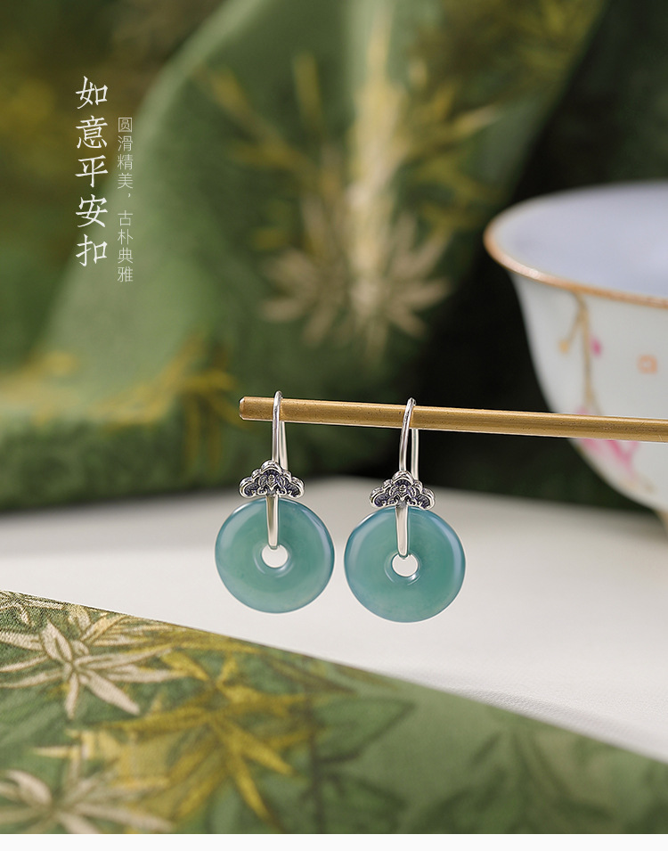 【如意相扣】S925纯银蓝水翡翠古典如意平安扣耳饰【CW-EG02377】
