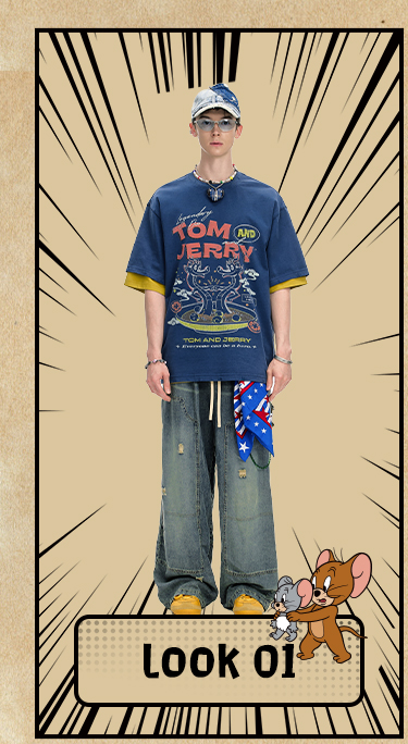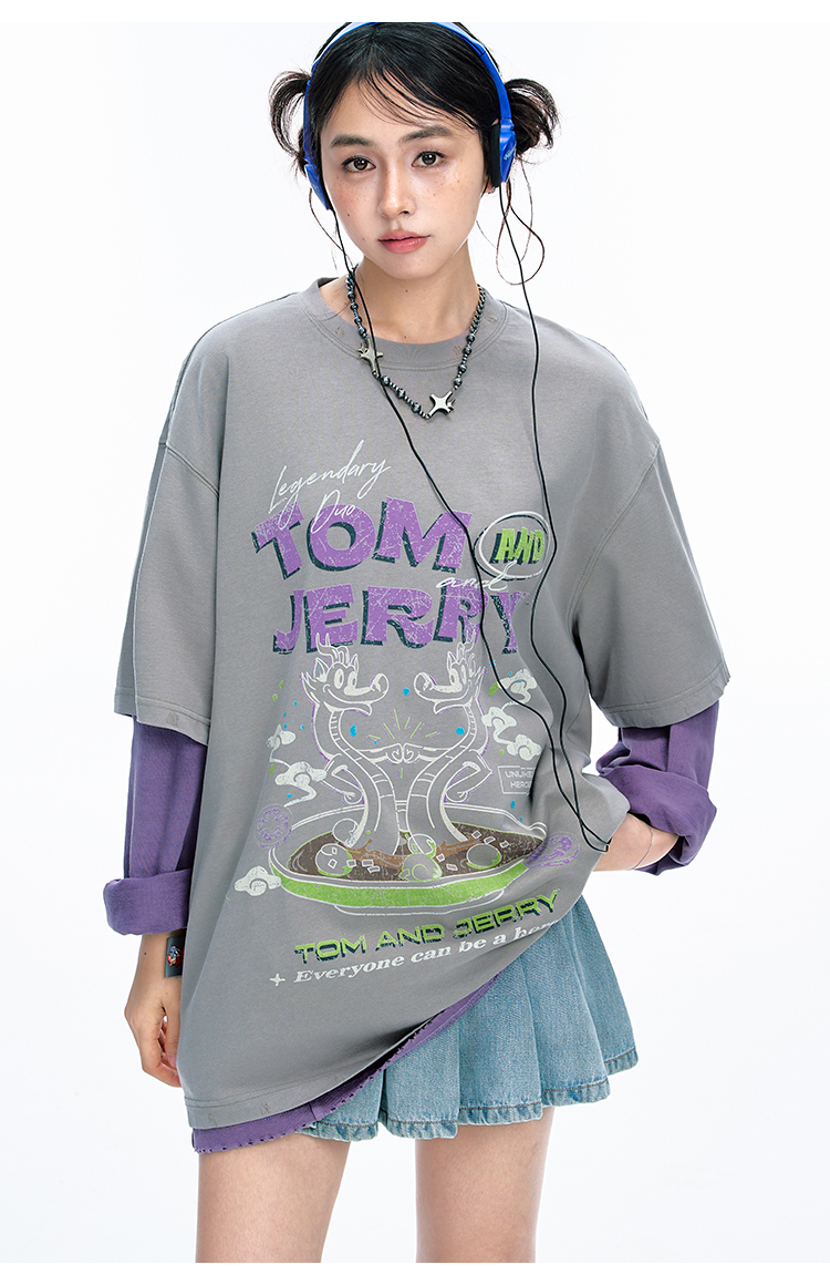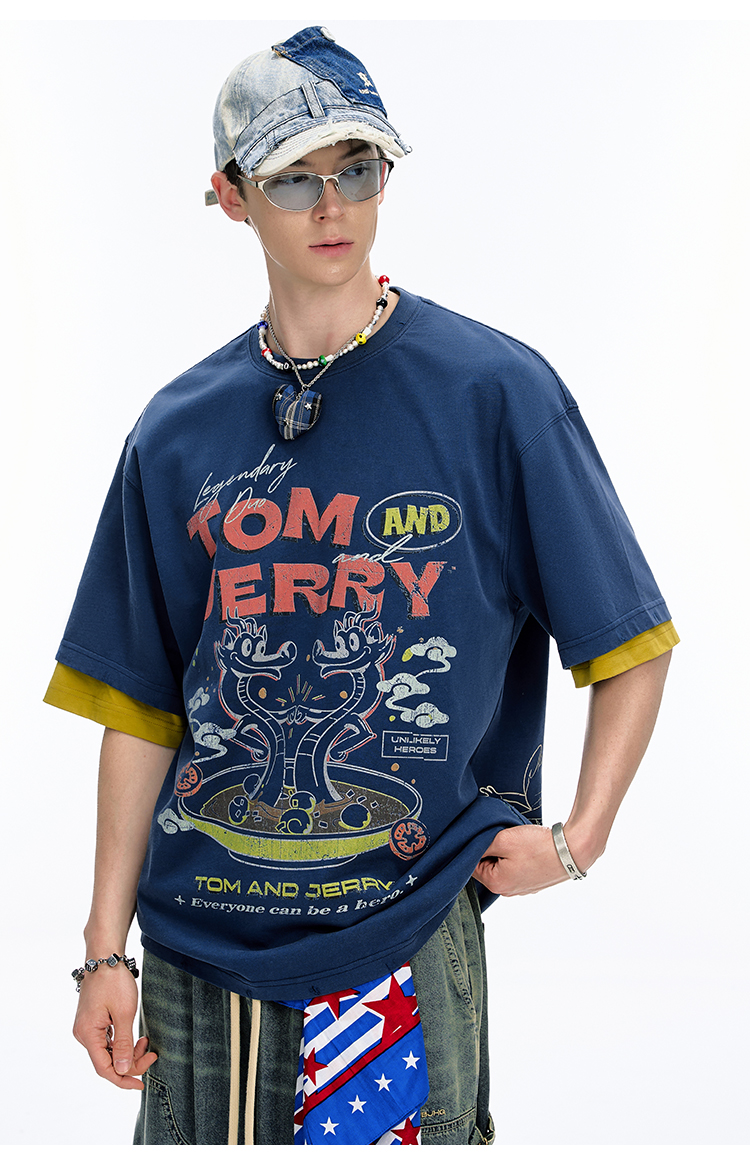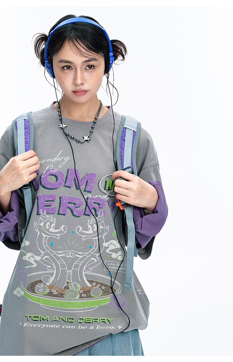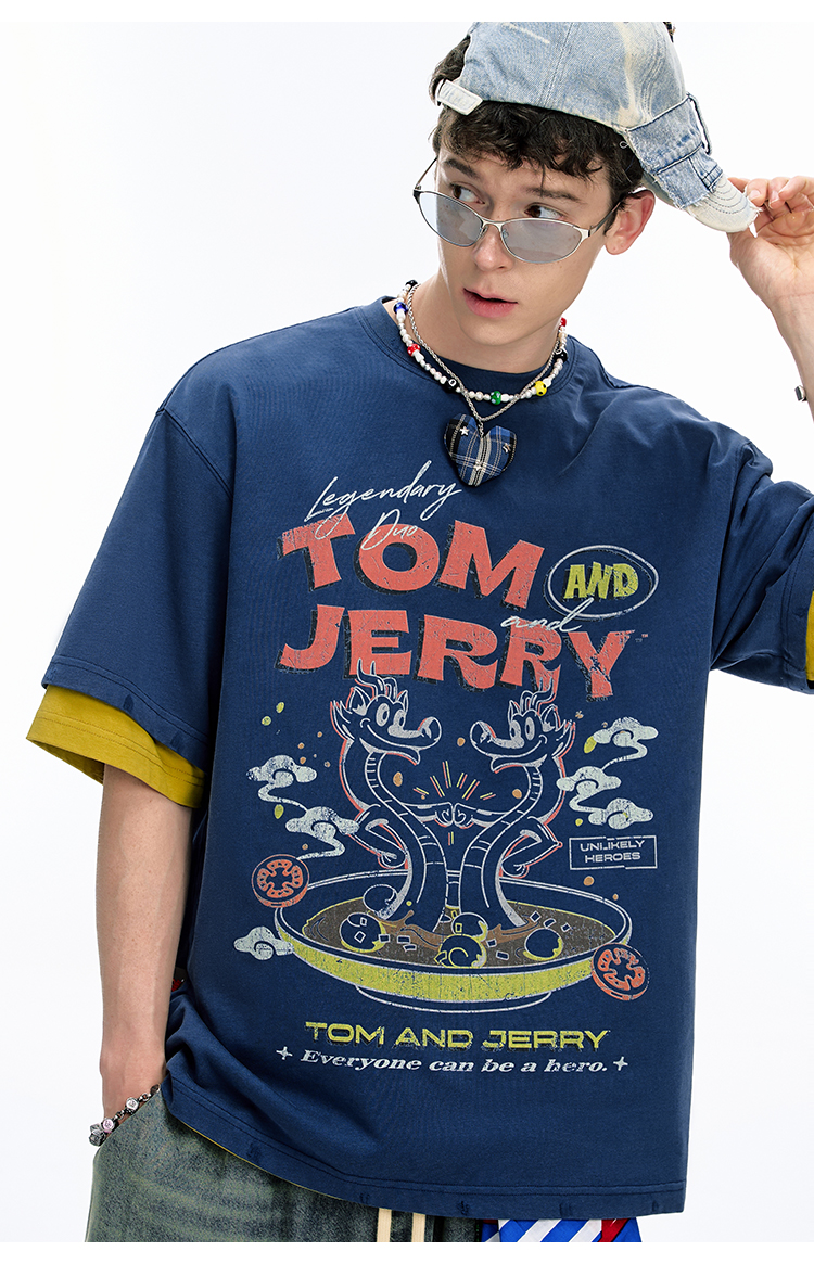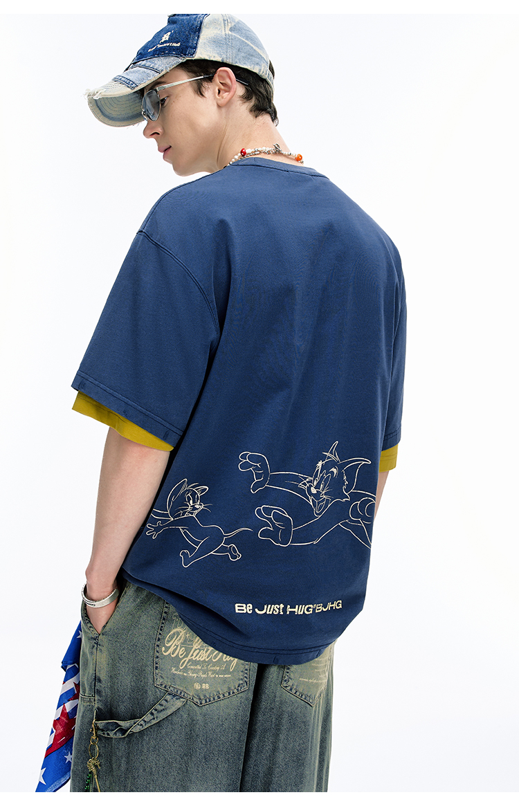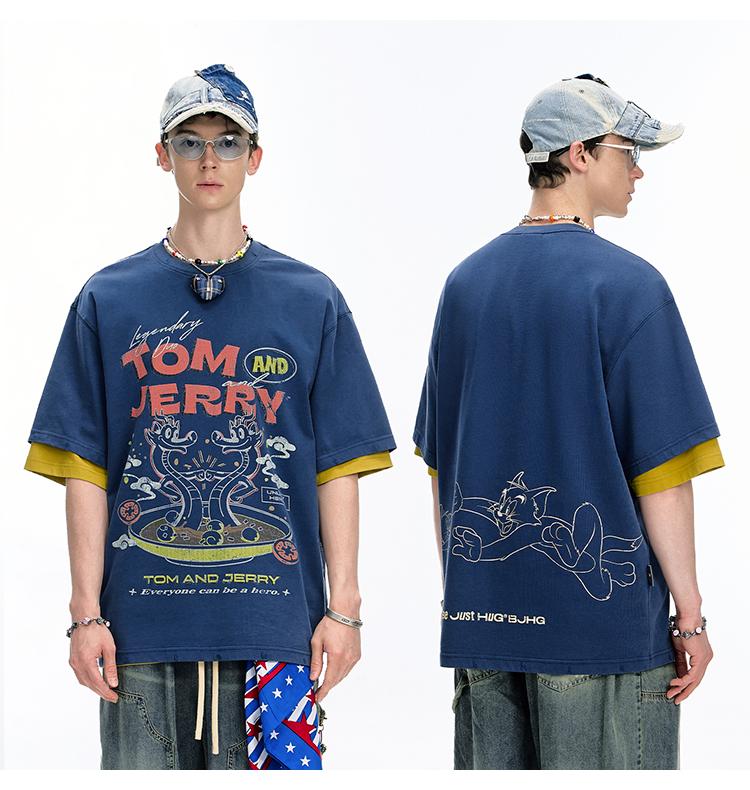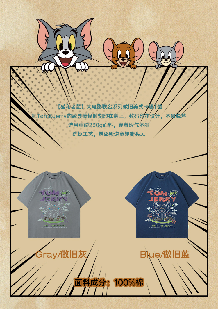 【猫和老鼠联名】 BJHG不计后果美式短袖t恤男夏复古纯棉情侣半袖