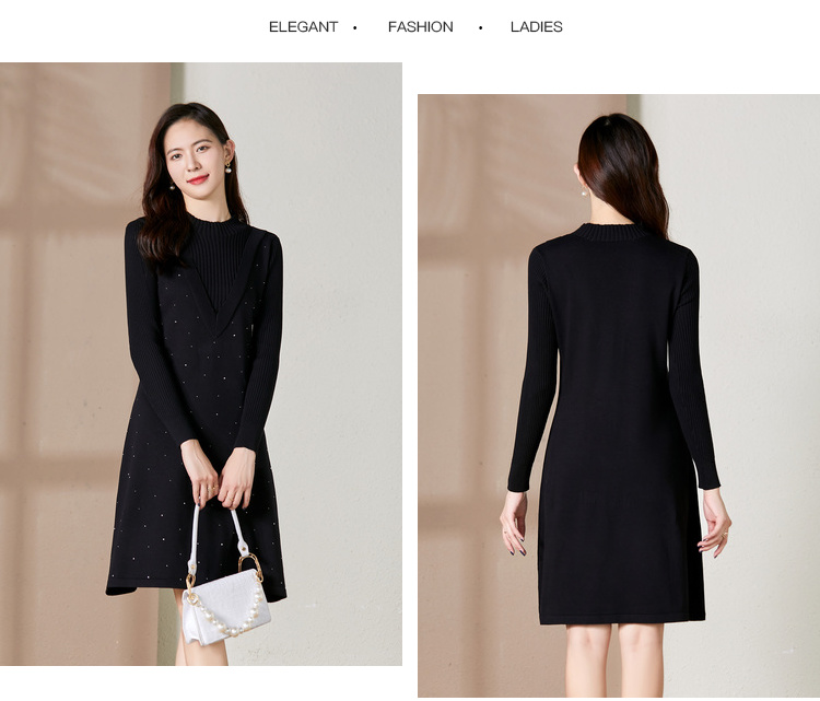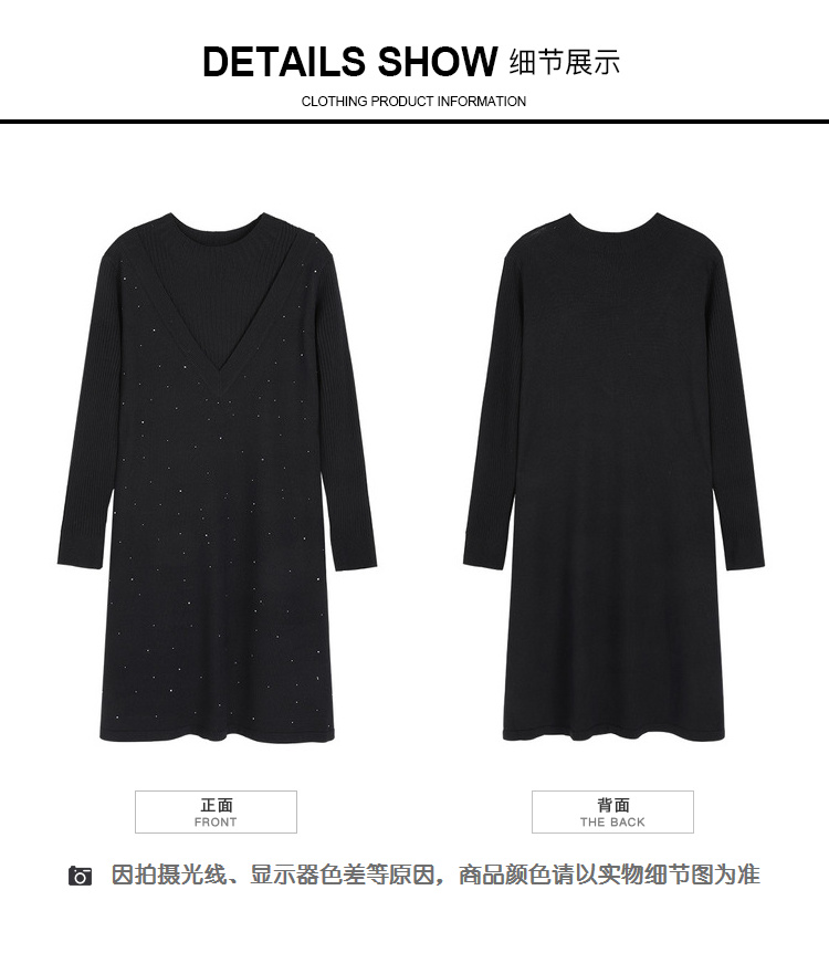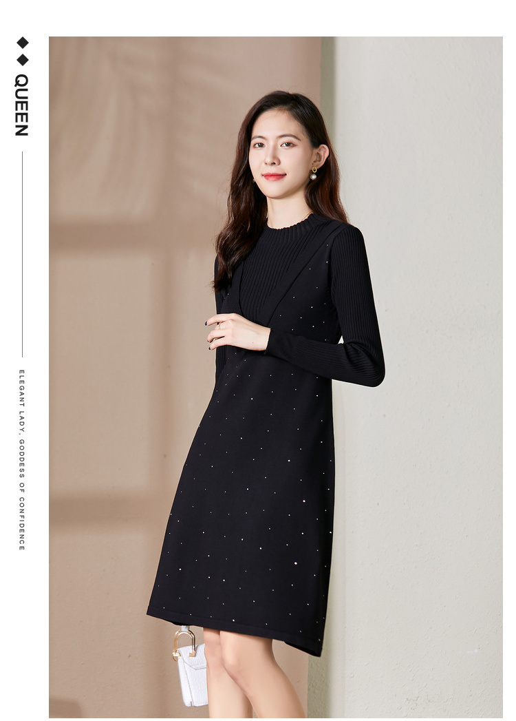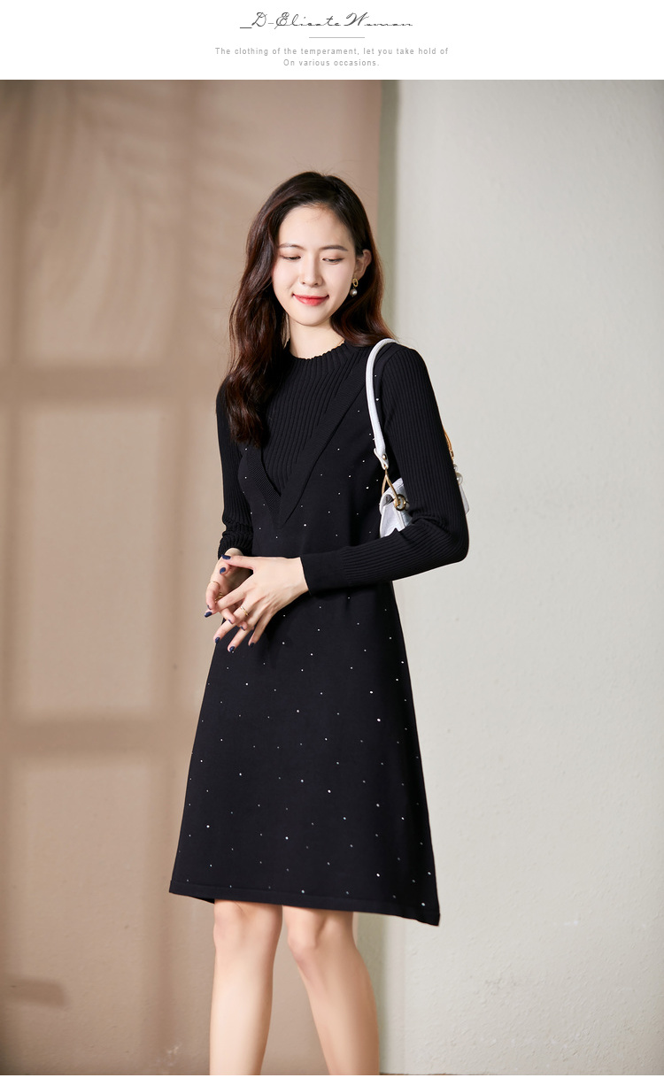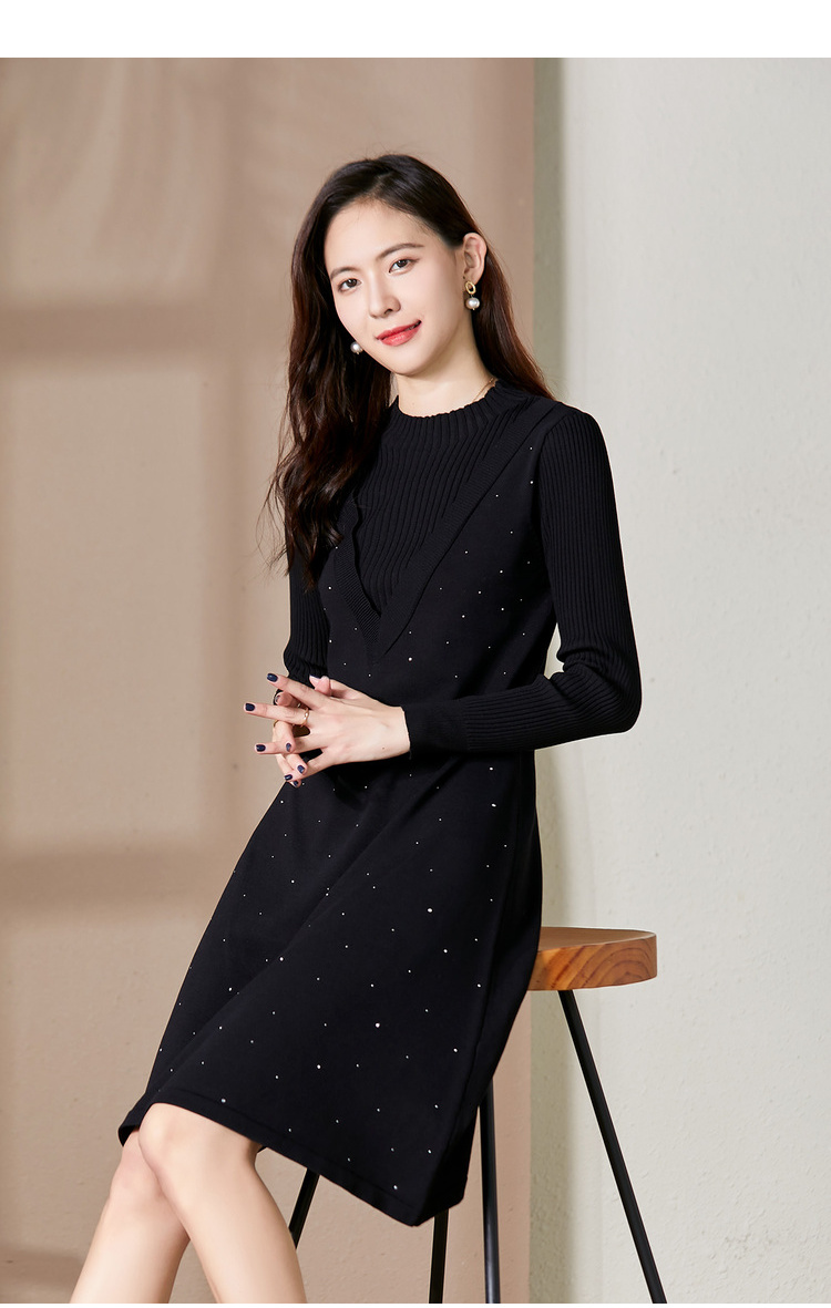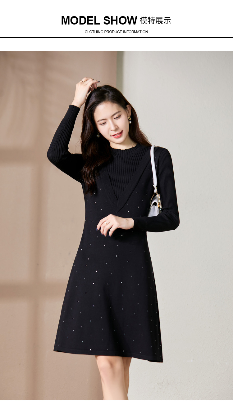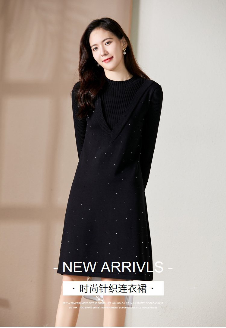【假两件显瘦针织连衣裙】,简约领口,面料舒适弹力,9813051348
