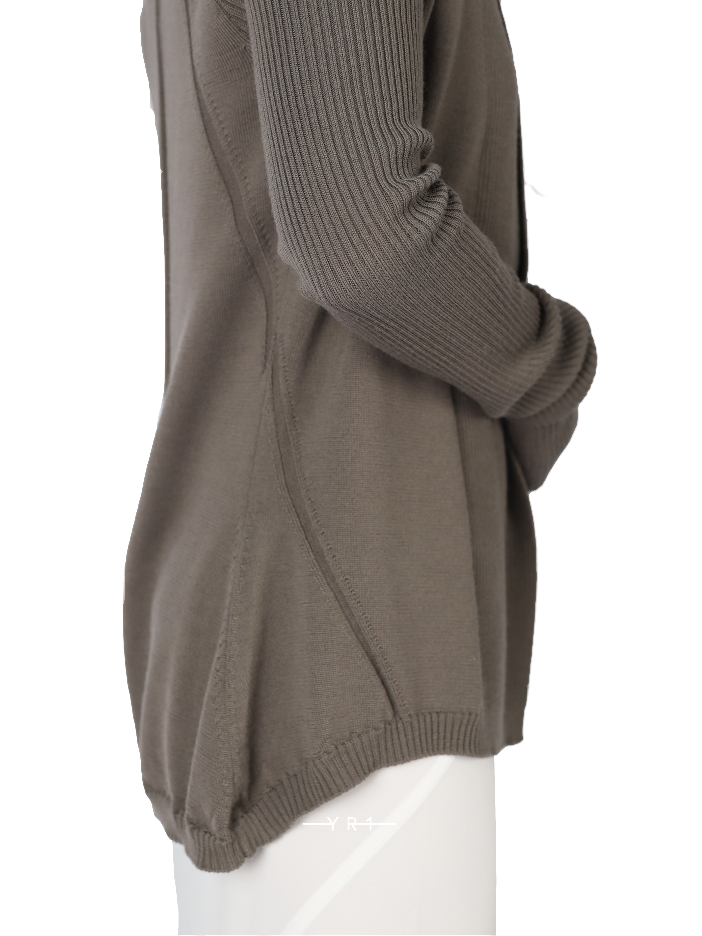 这款 NASKA 开衫长度及臀,长袖设计。正面中央开襟,宽罗纹边缘在领口处略微收拢;
