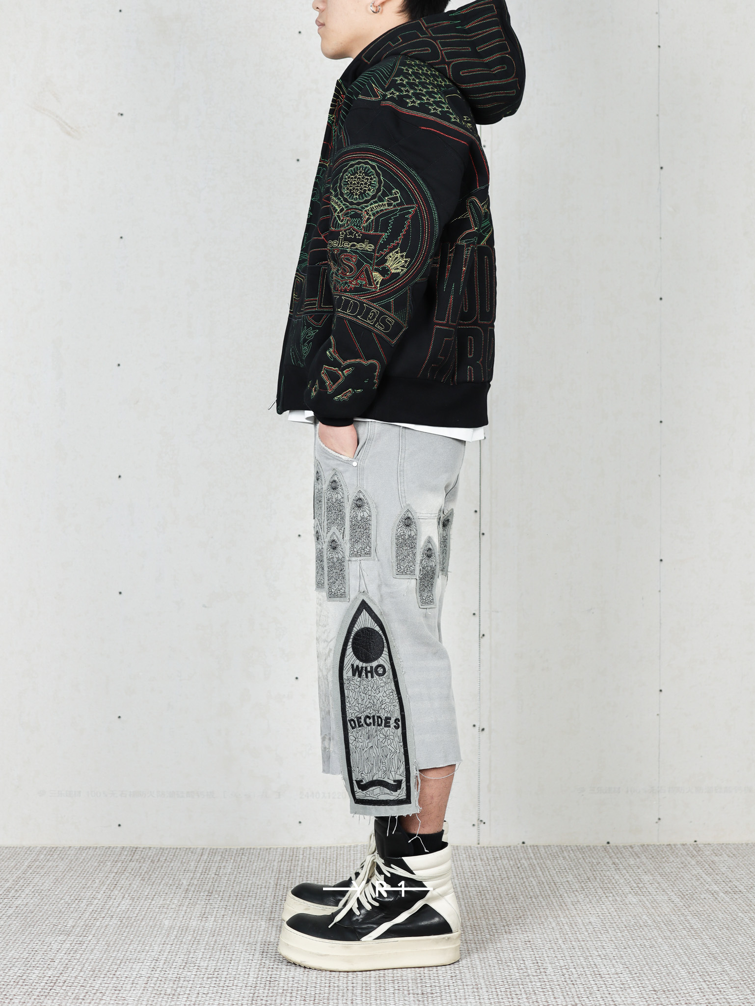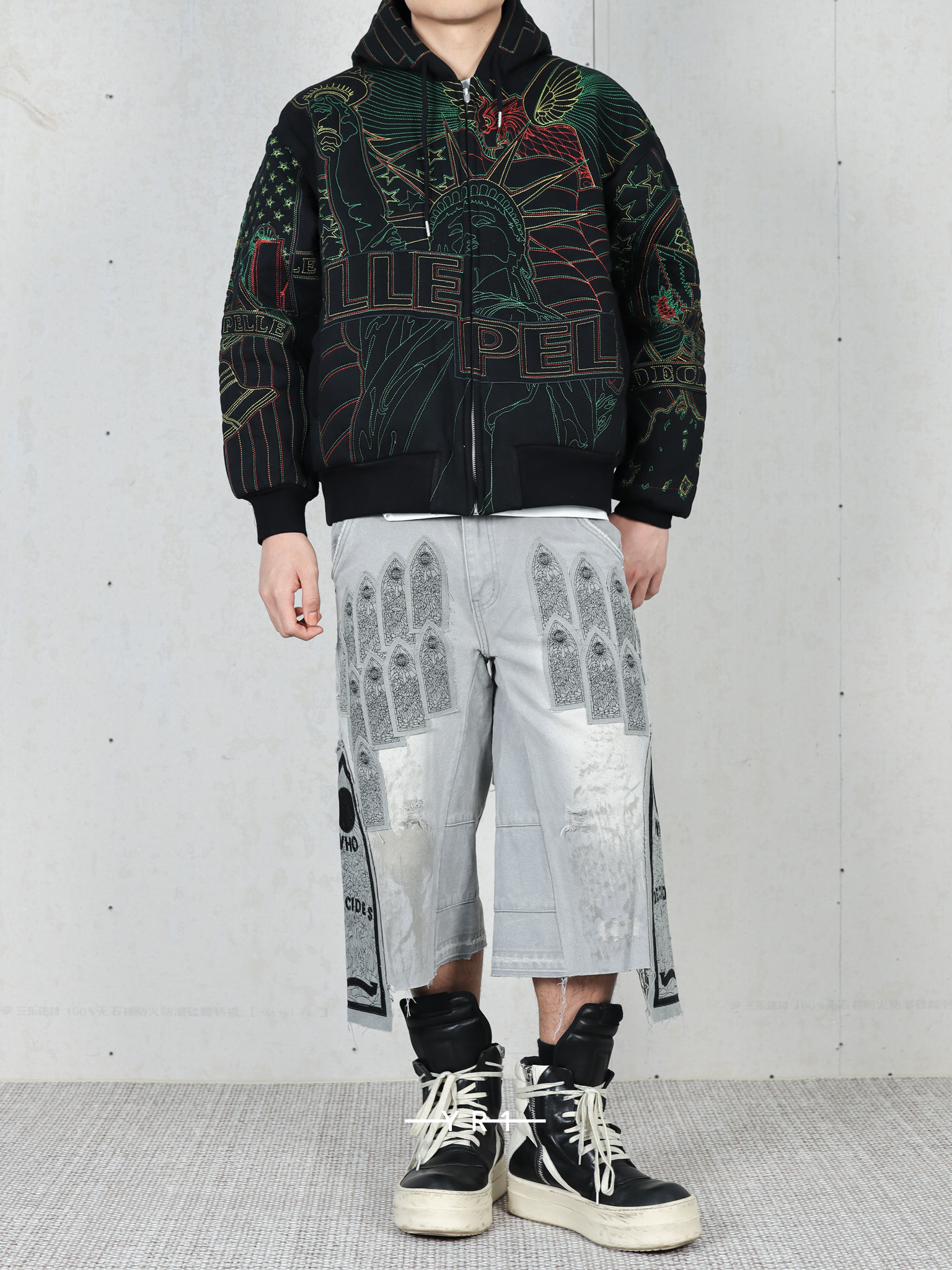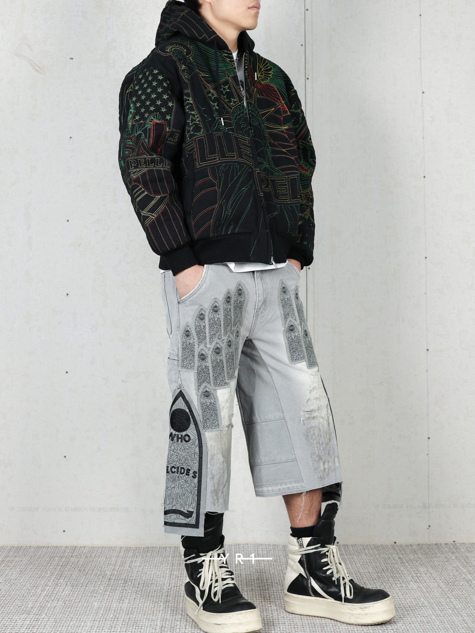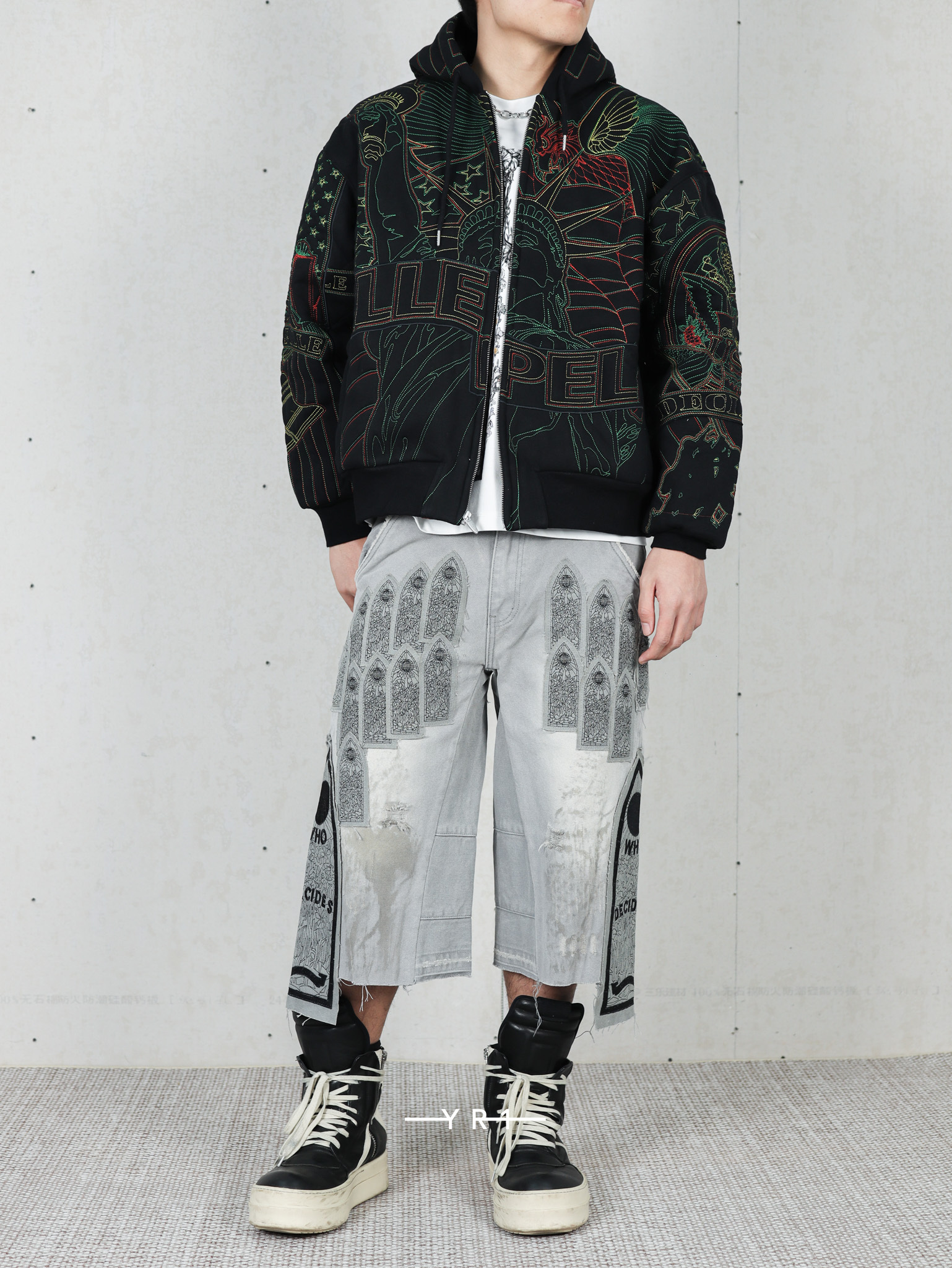 拉链门襟和刺绣图形贴片