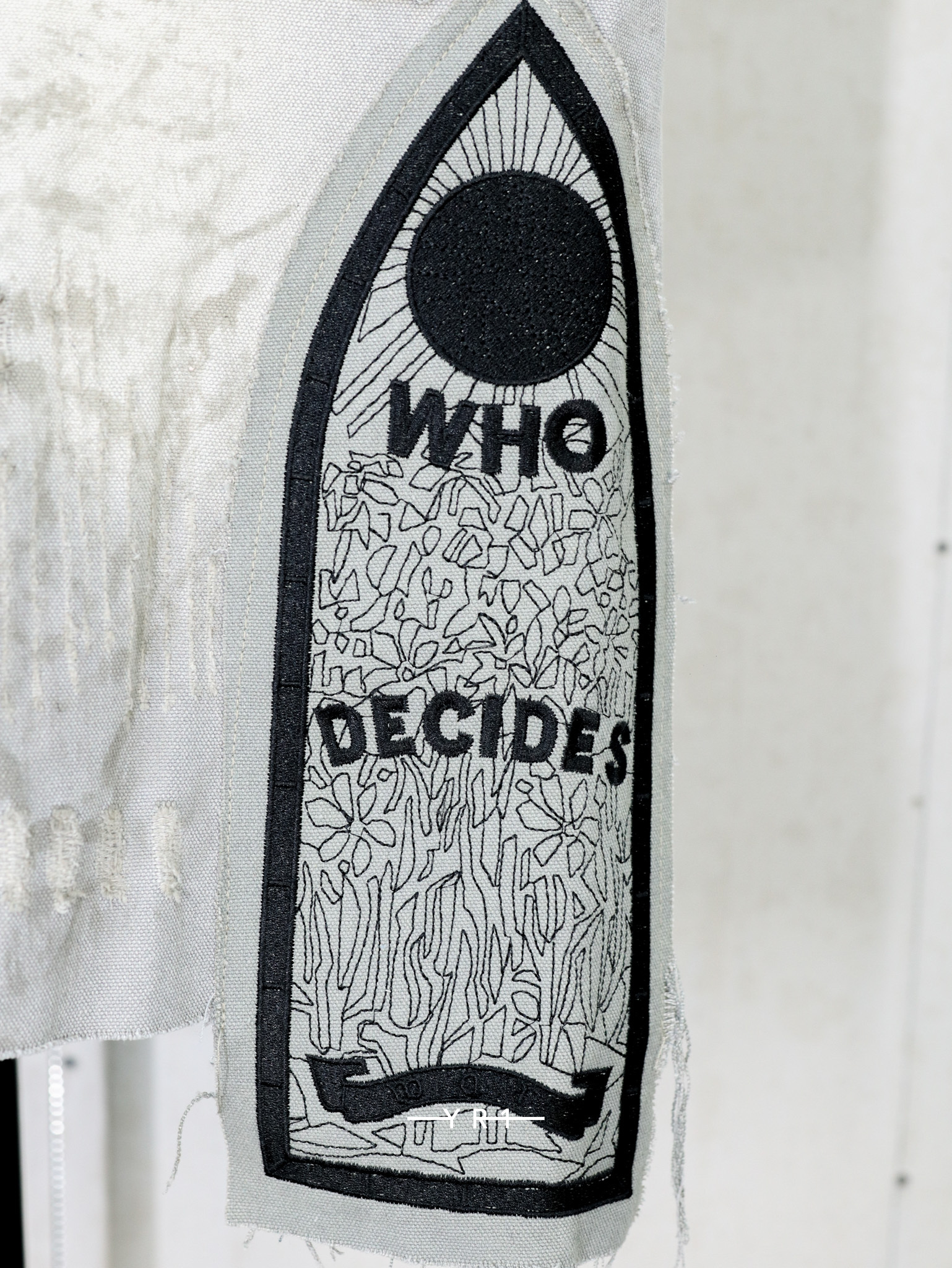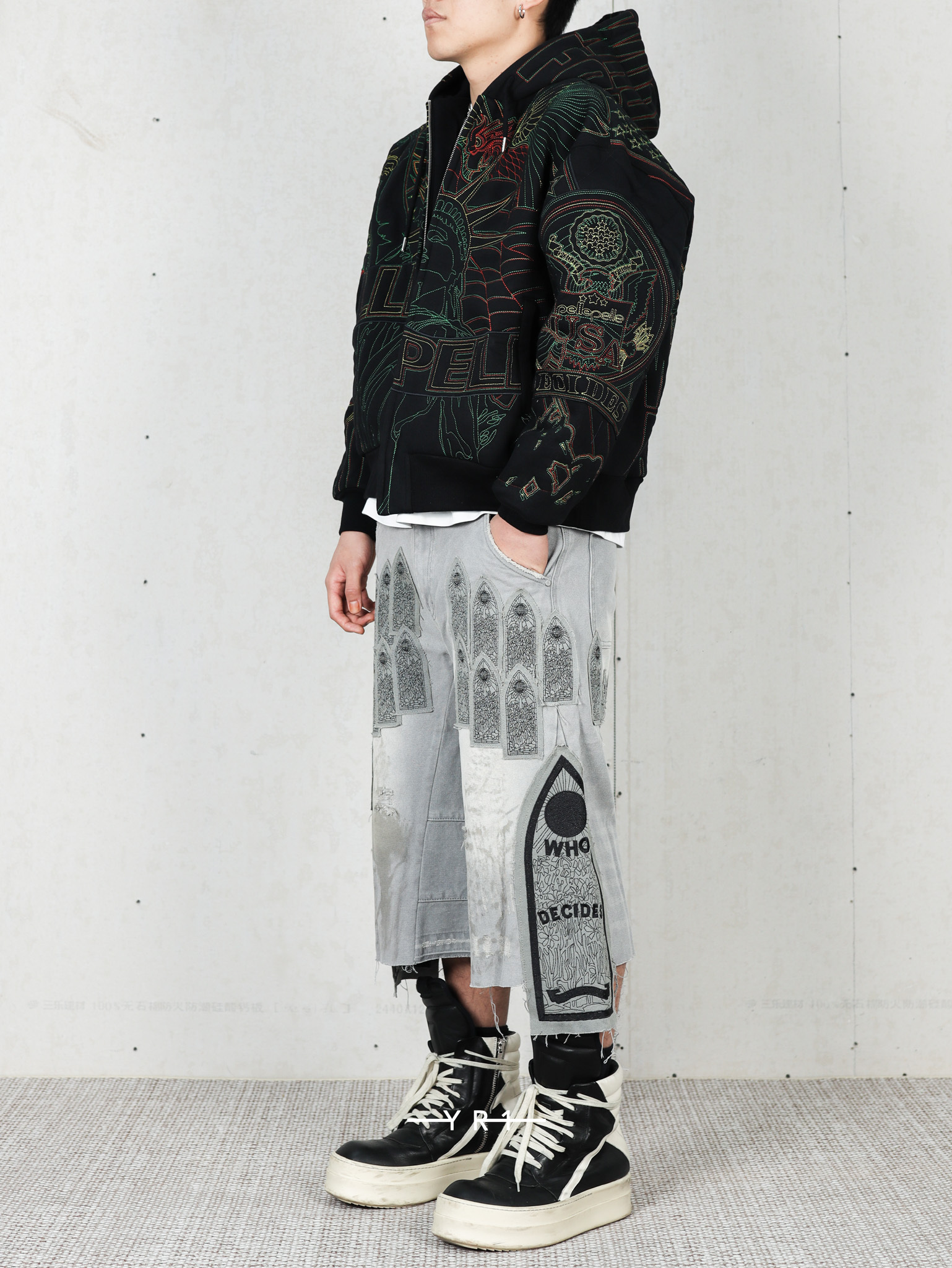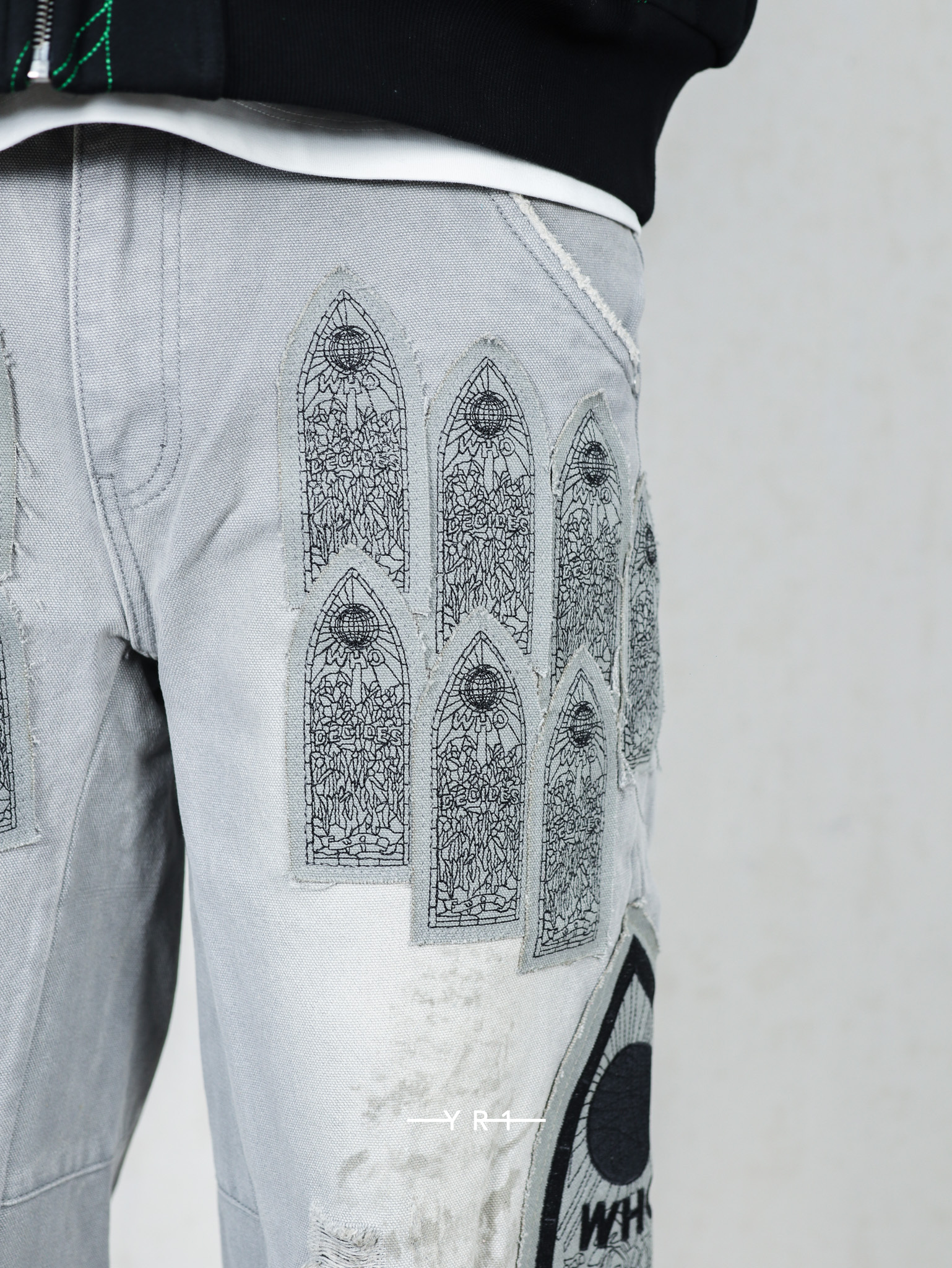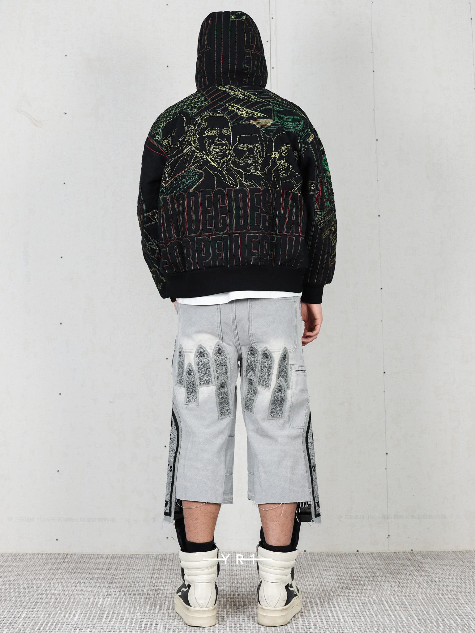 拉链门襟和刺绣图形贴片