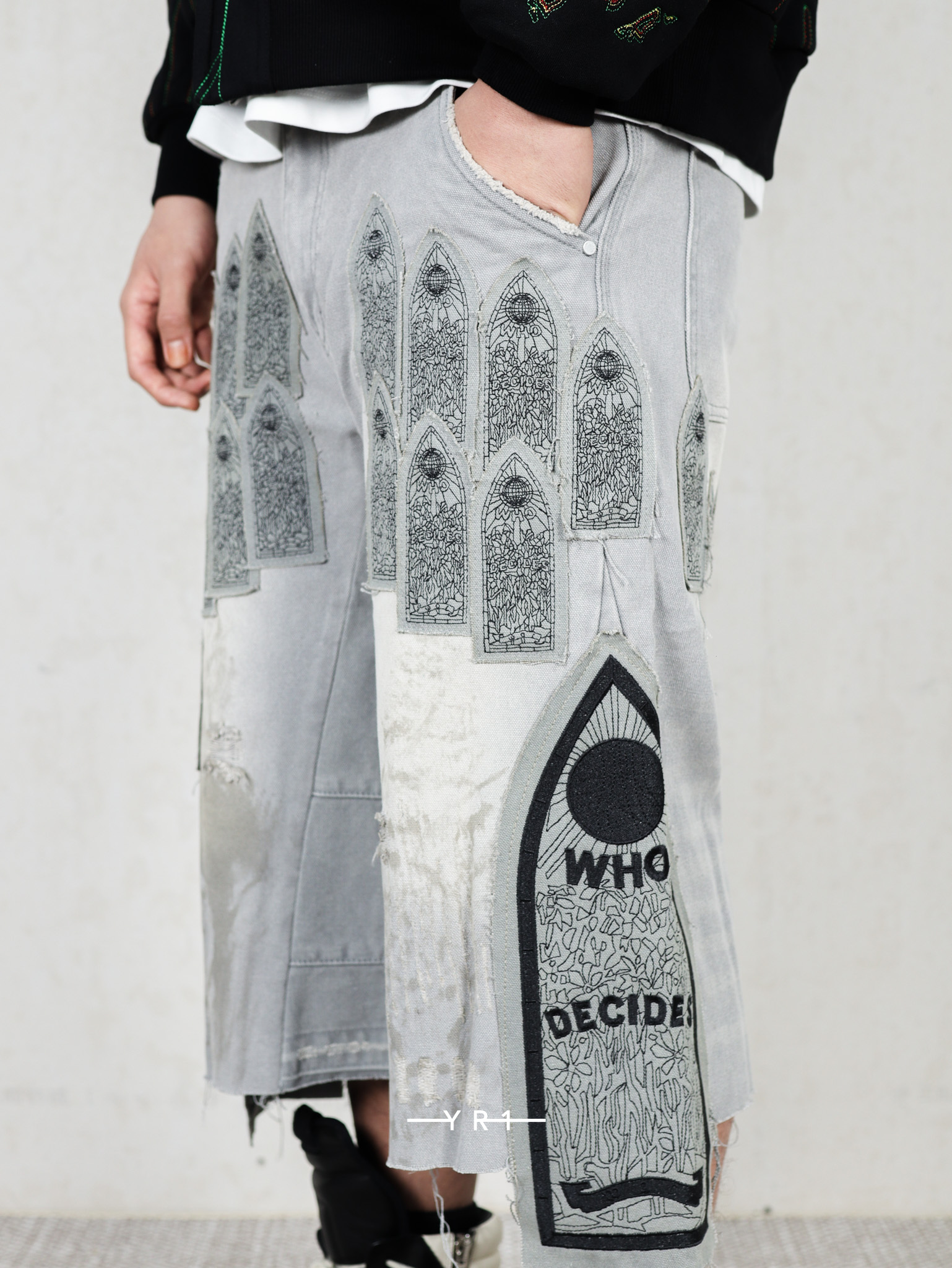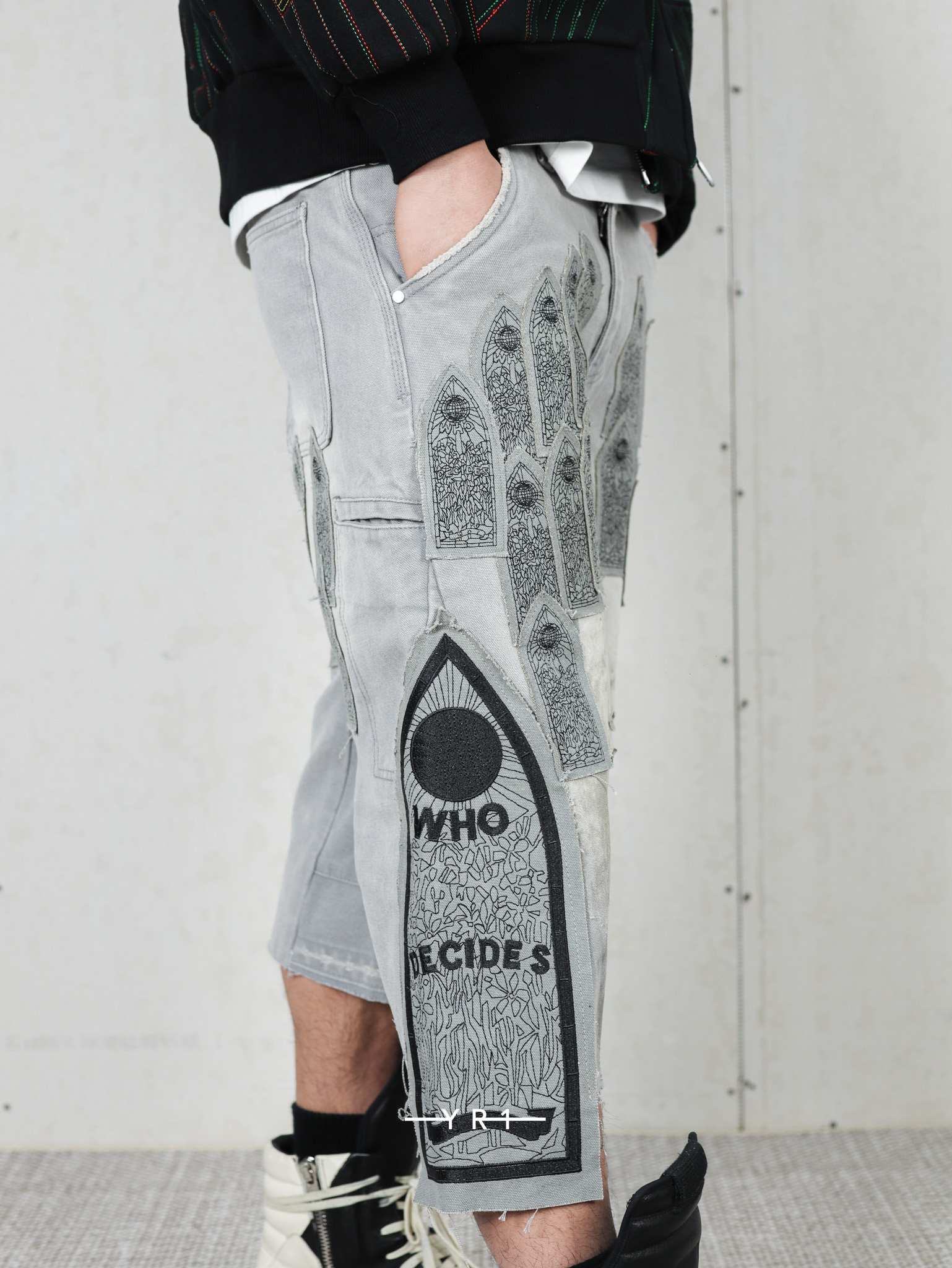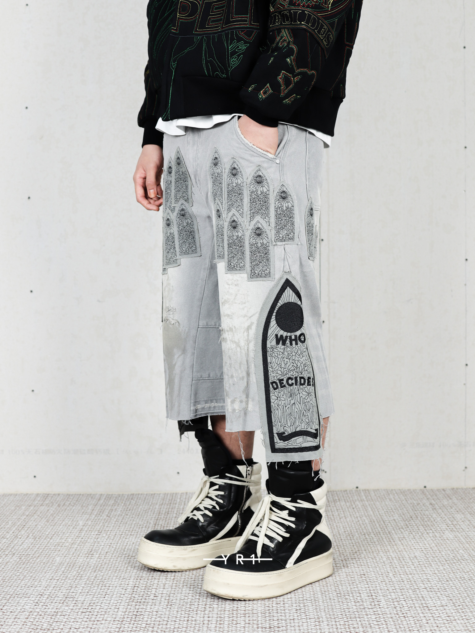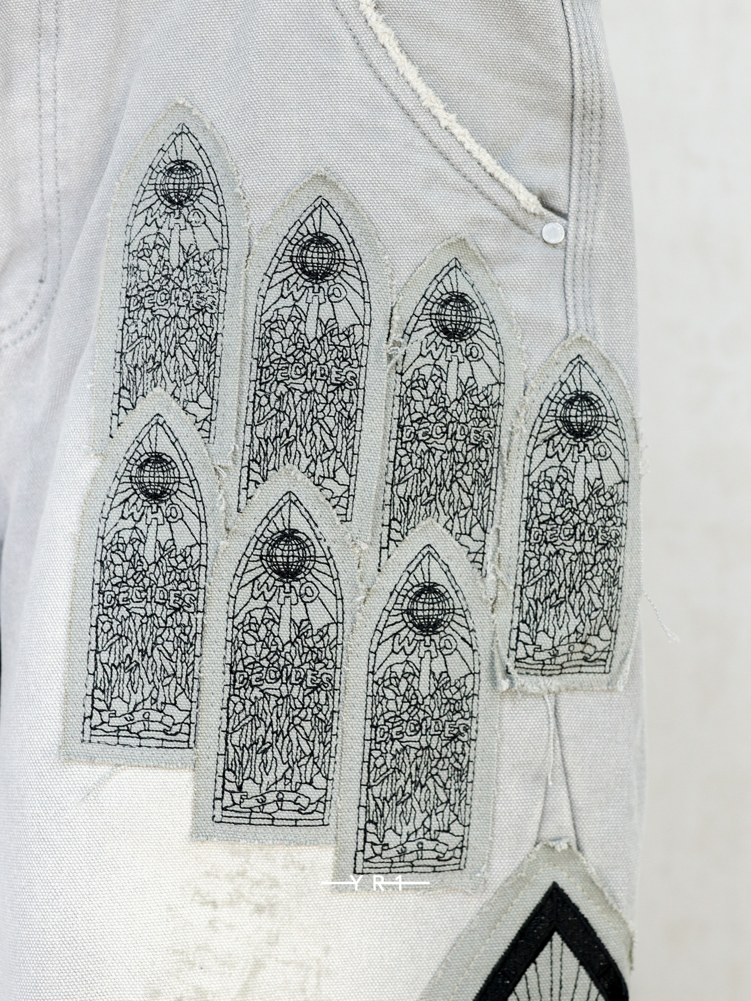 拉链门襟和刺绣图形贴片