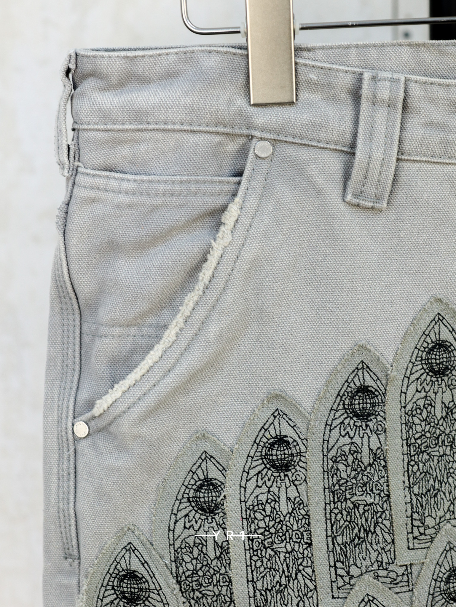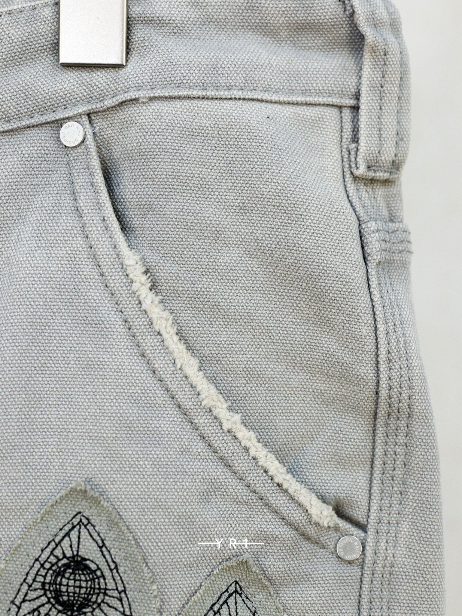 采用非弹力牛仔布,褪色、做旧、刺绣细节