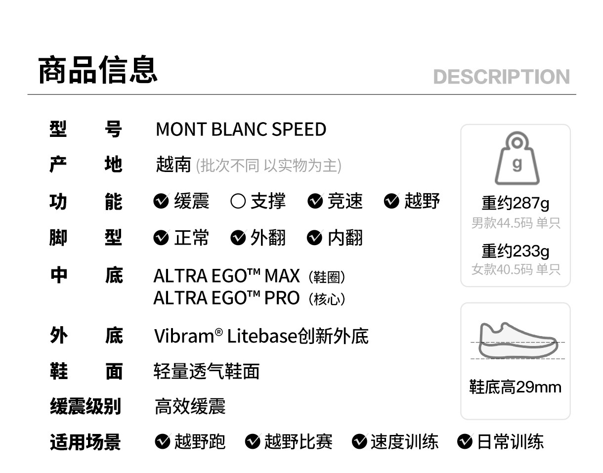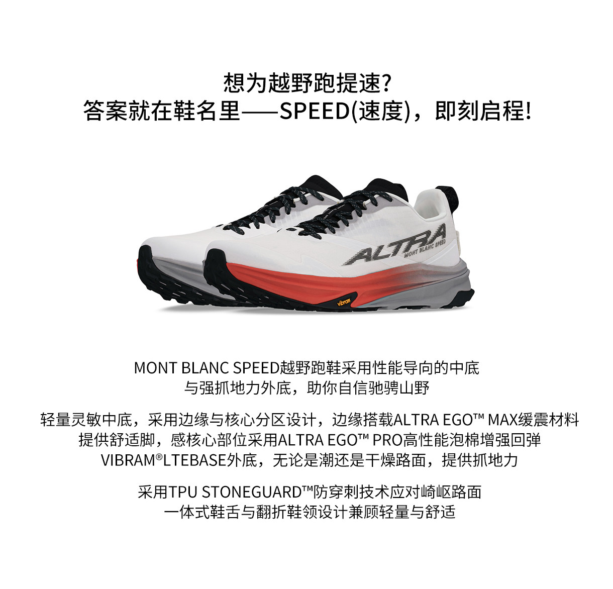 ALTRA奥创Mont Blanc Speed勃朗峰竞速越野跑鞋户外轻量越野鞋