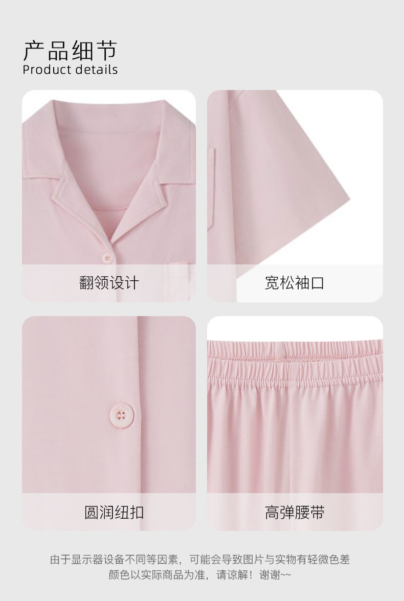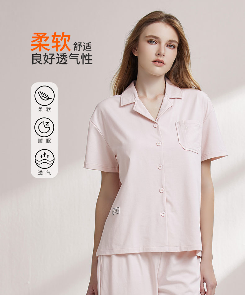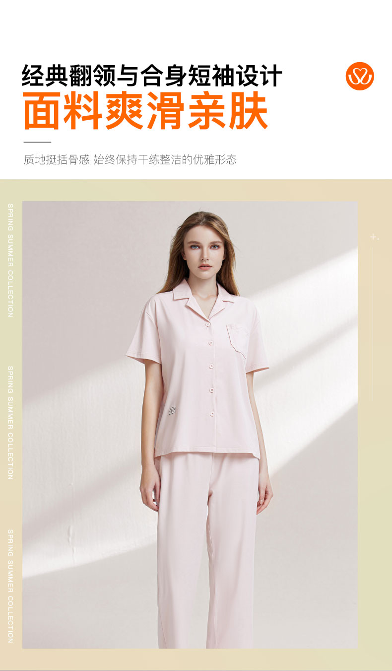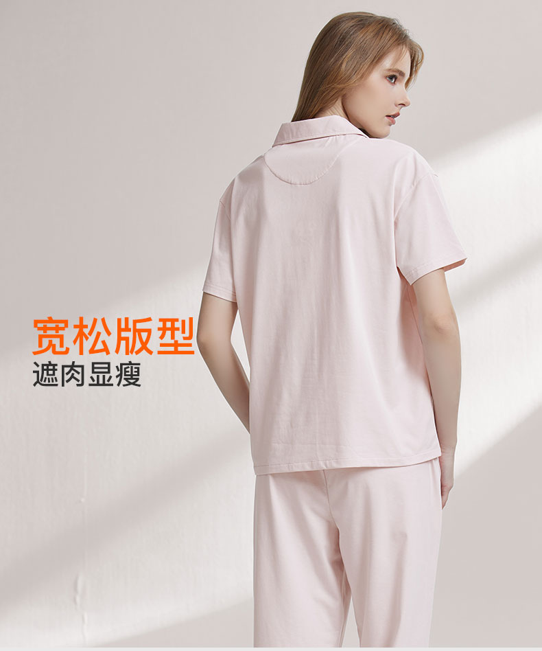 【99元超值新品】【秀黛】女翻领开扣短袖套装挺括爽滑女士夏季短袖长裤睡衣家居服W2551038T【门店同款】
