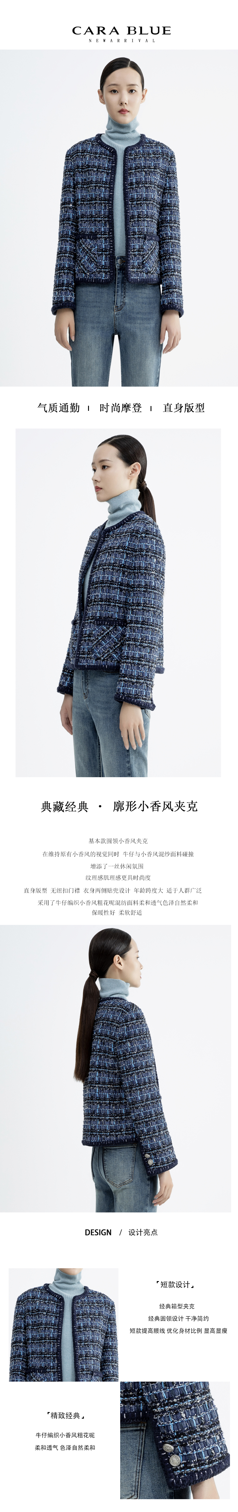 CARA BLUE气质优雅小香风夹克
