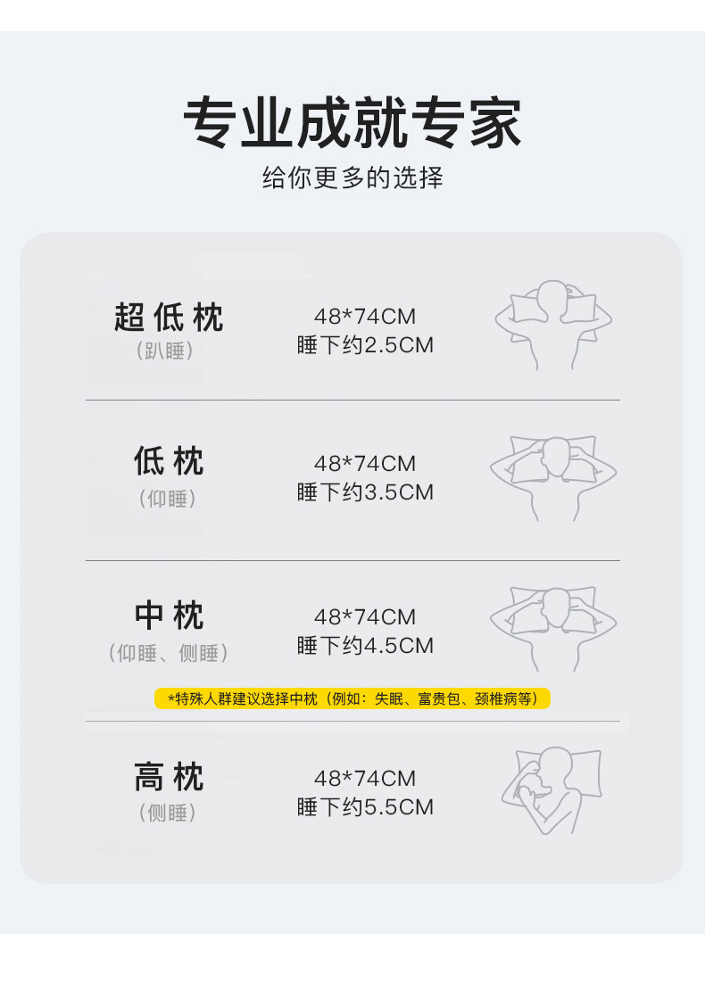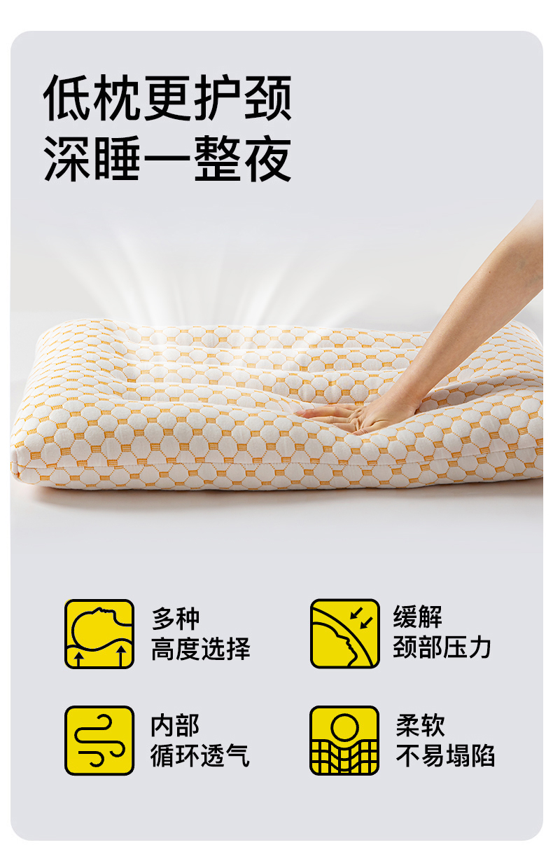 全棉枕头软低枕芯不塌陷助睡眠护颈椎整头家用一对装3儿童6小学生