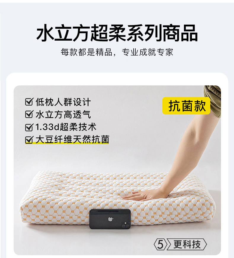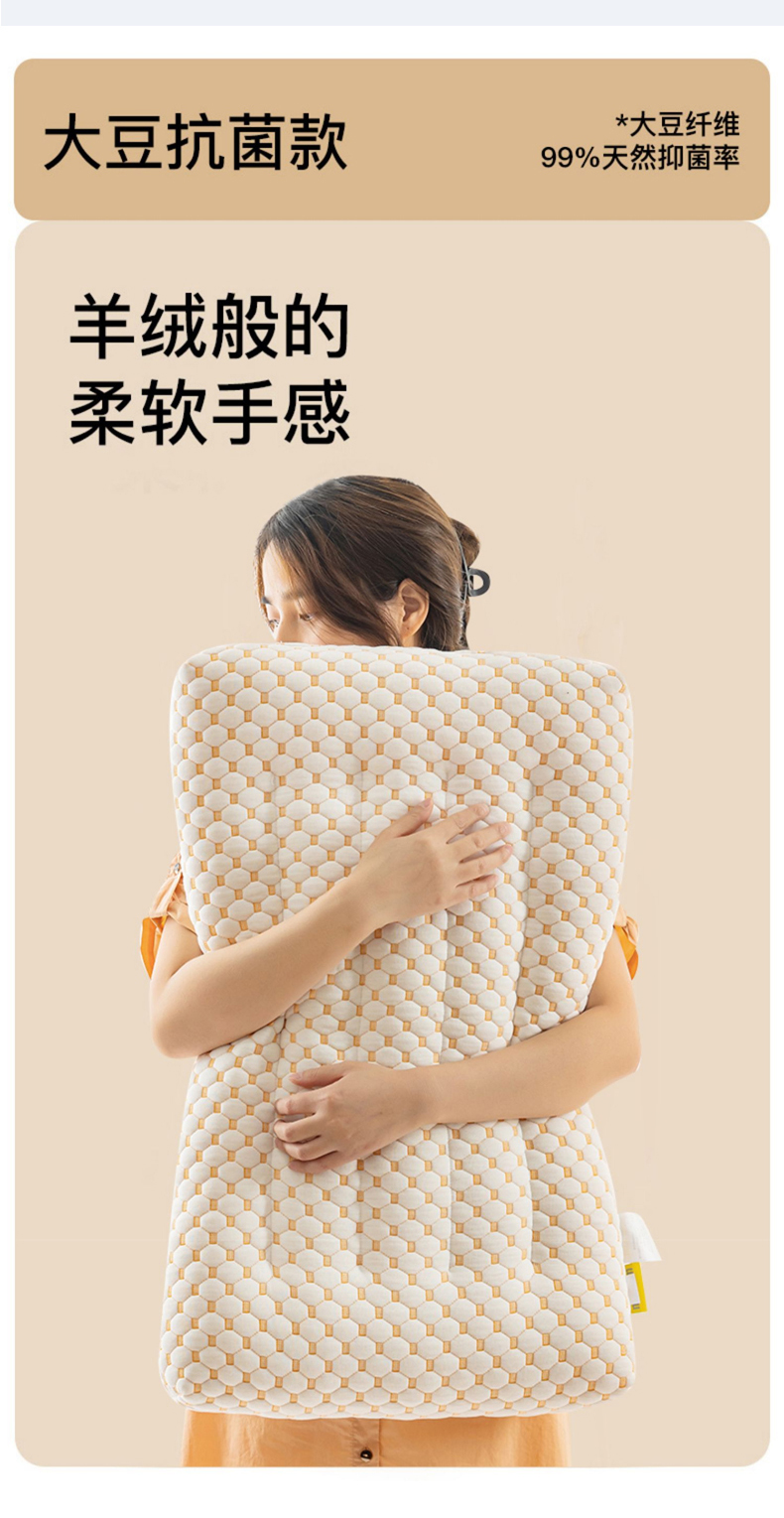 大豆纤维抗菌枕头护颈椎助睡眠超柔低宿舍矮枕芯家用一对装整头小