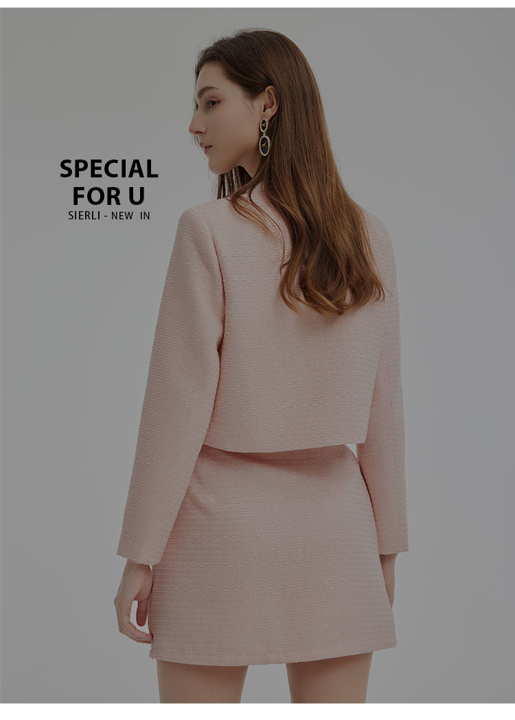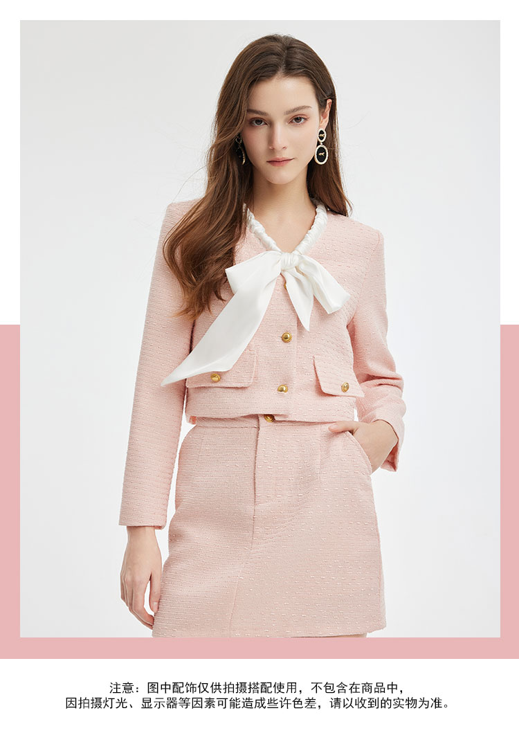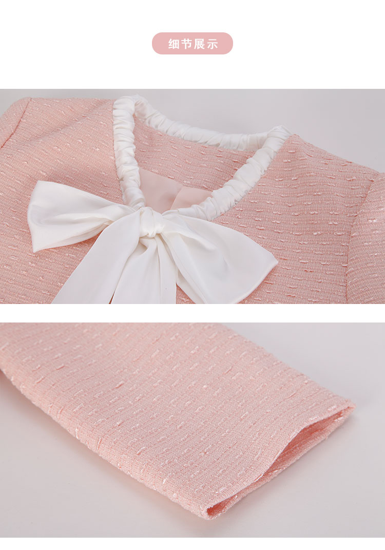 PE106斯尔丽2024春季新款韩版小香风长袖撞色领结短上衣+短裙女式套装