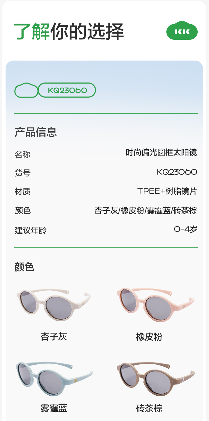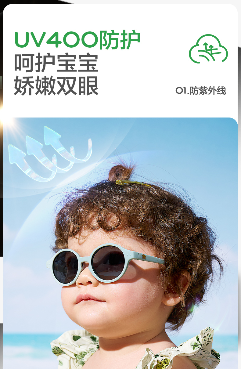 KK树婴儿眼镜宝宝墨镜不伤眼睛男宝幼儿太阳镜防紫外线偏光女宝潮时尚偏光圆框太阳镜