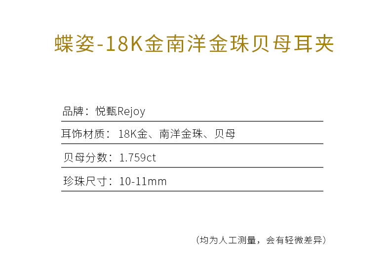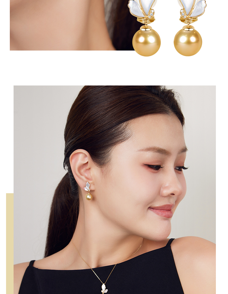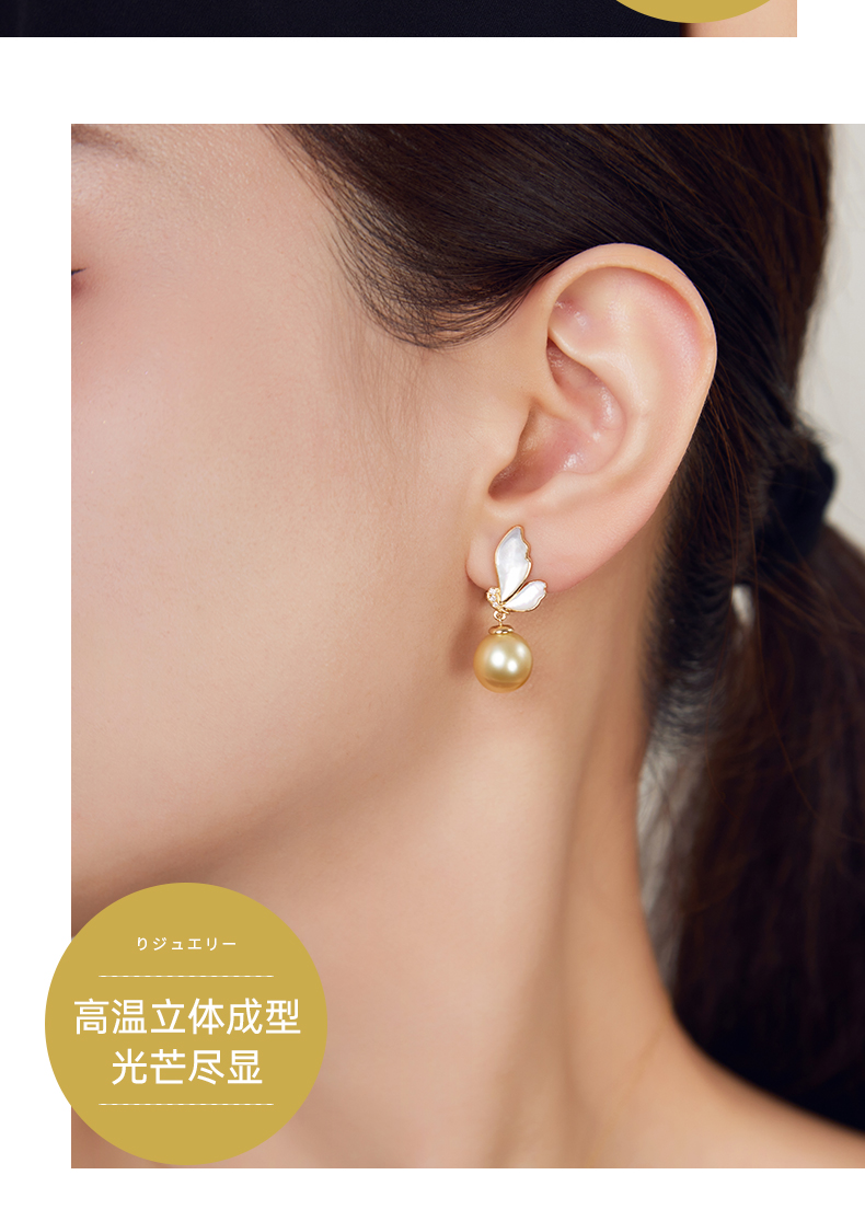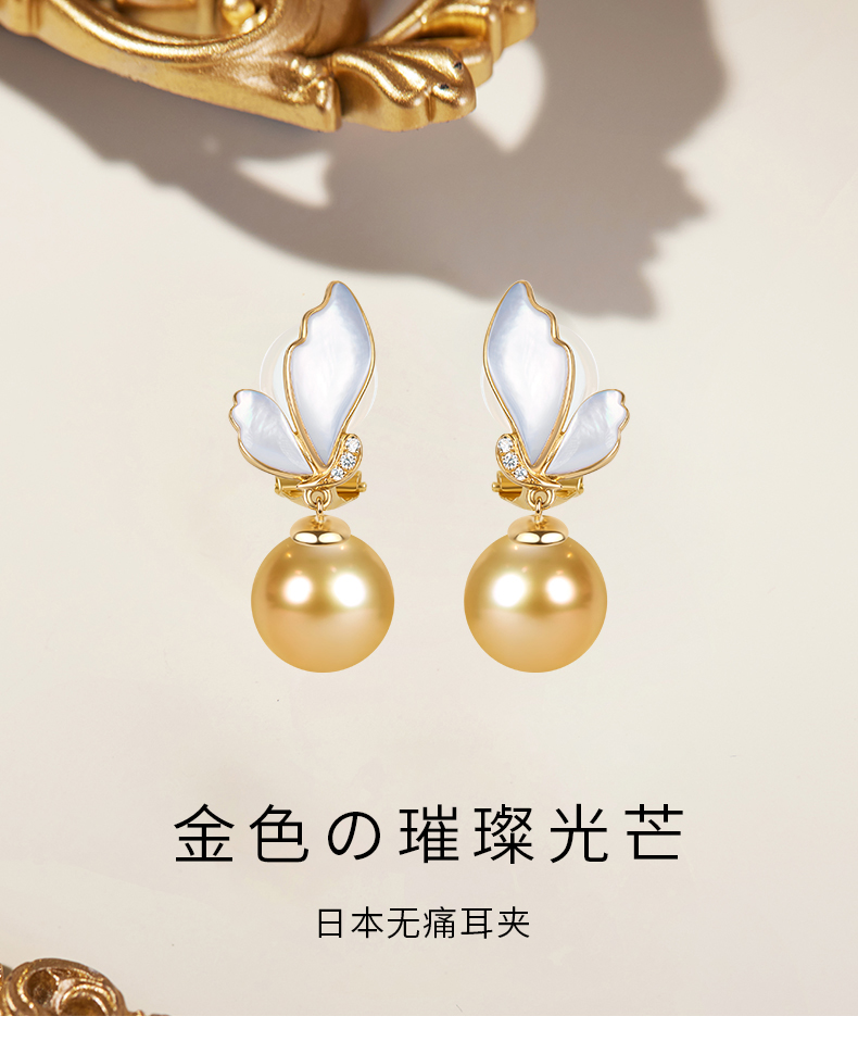 【天猫同款】悦甄 18K金贝母南洋金珠珍珠耳夹 蝶姿