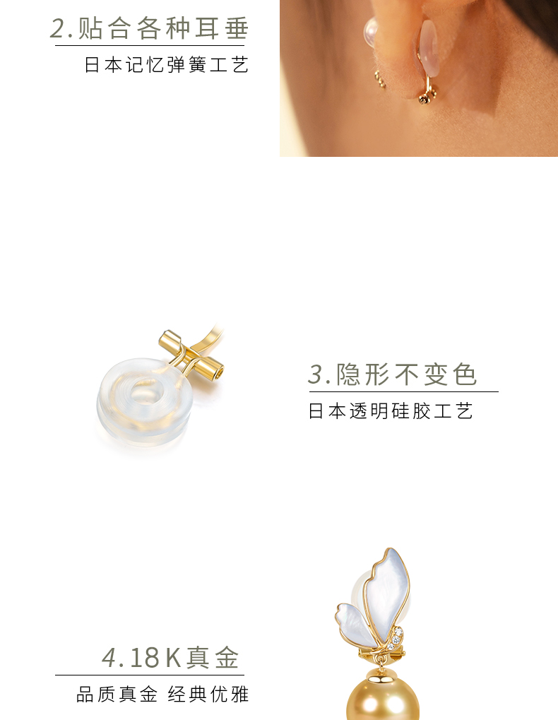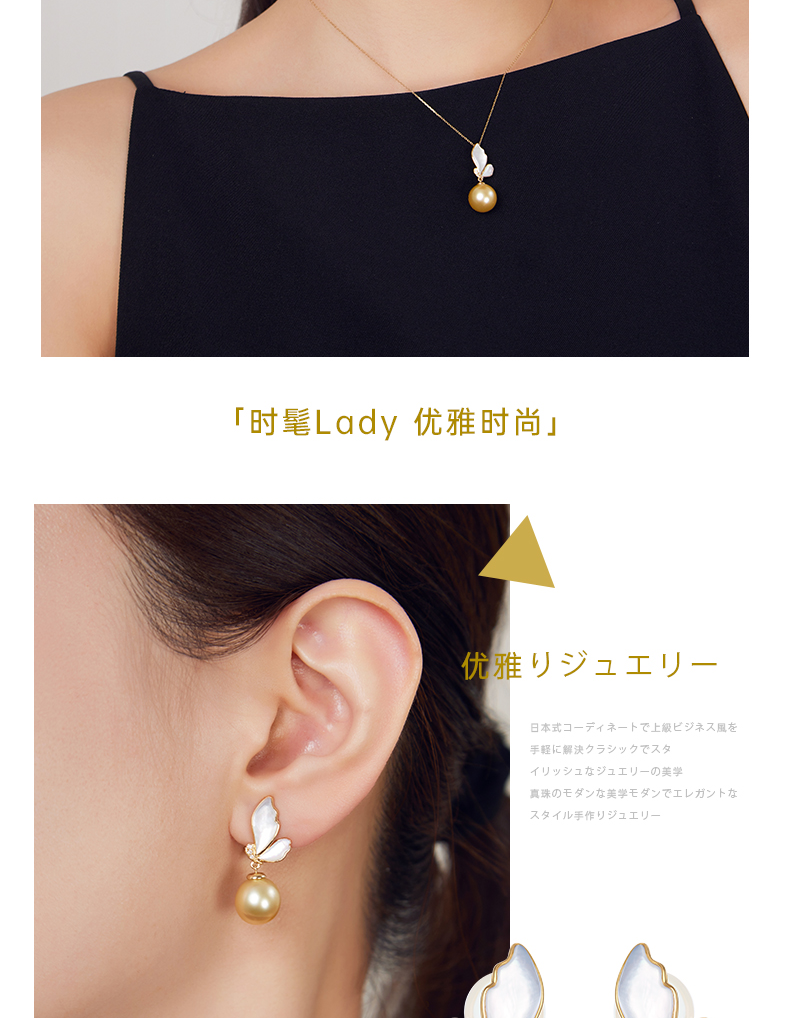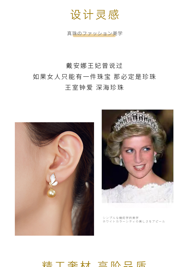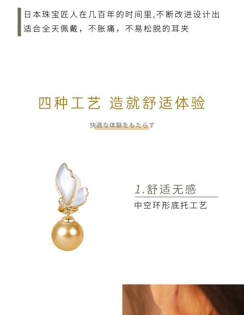 【天猫同款】悦甄 18K金贝母南洋金珠珍珠耳夹 蝶姿