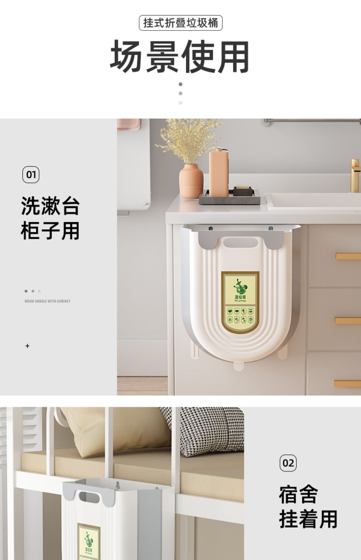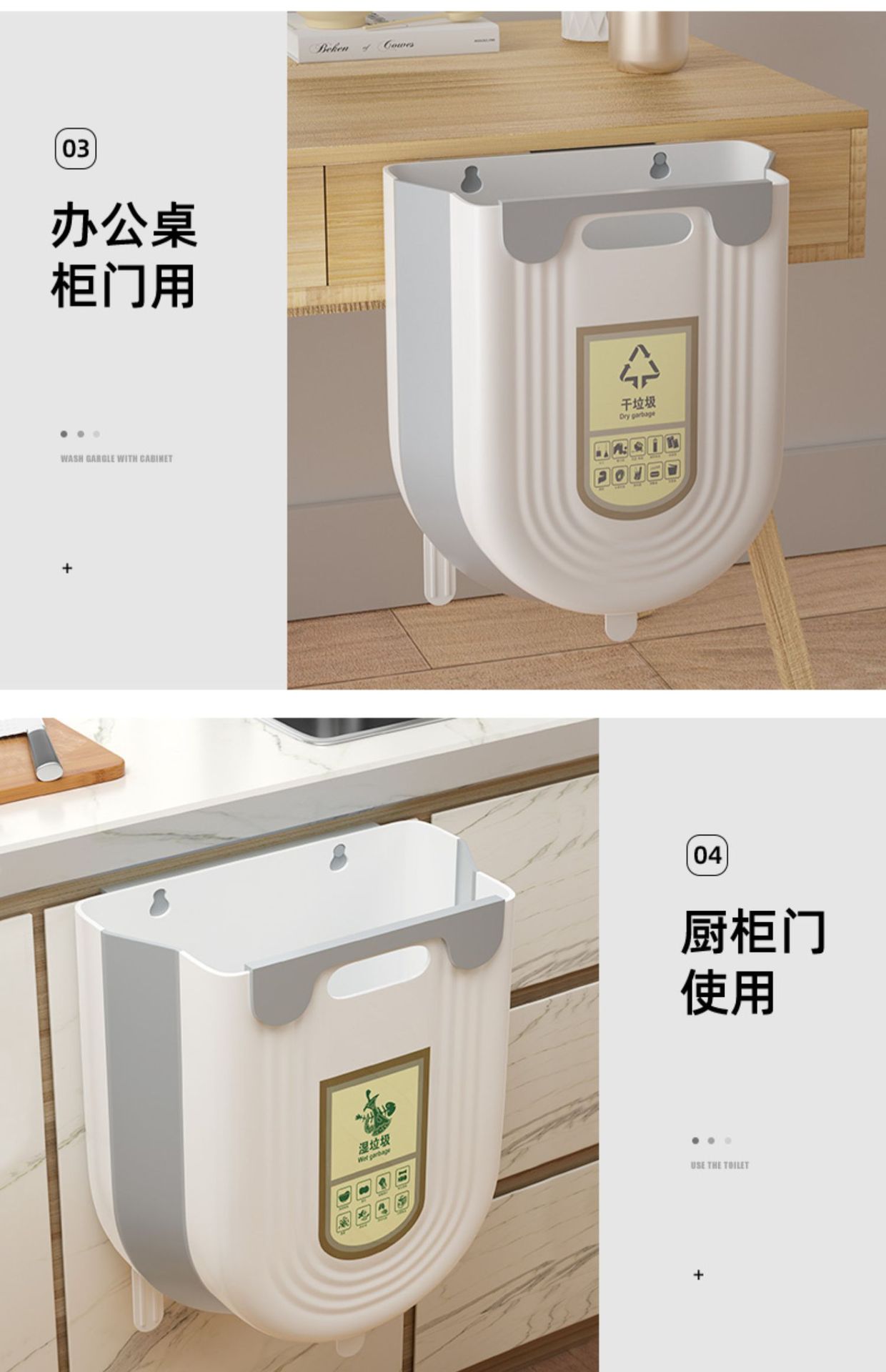 【厨房挂式垃圾桶】家用厨余分类 可折叠橱柜门壁挂 卫生间厕所收纳纸篓