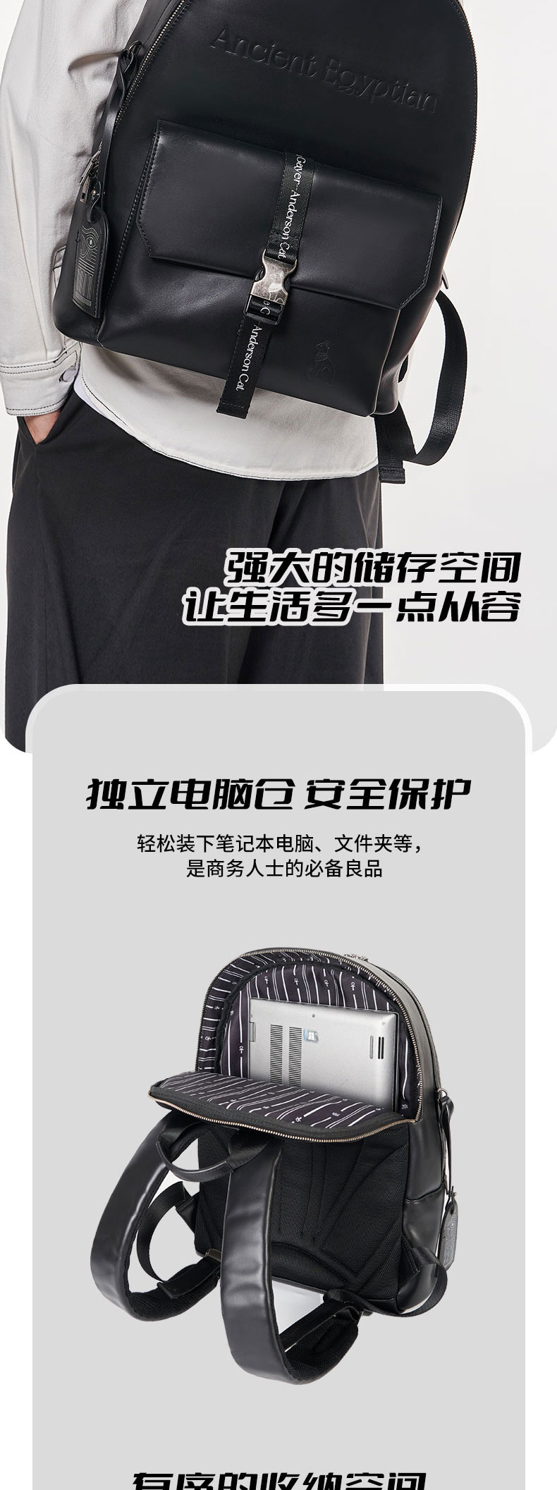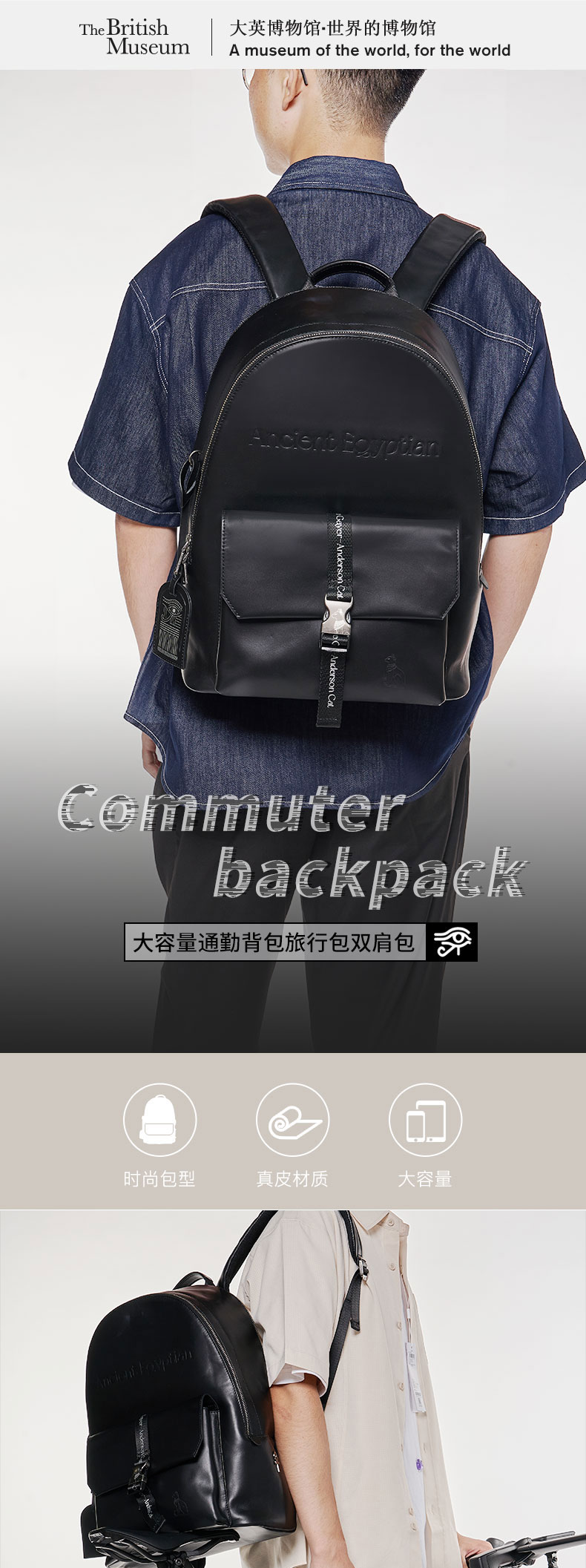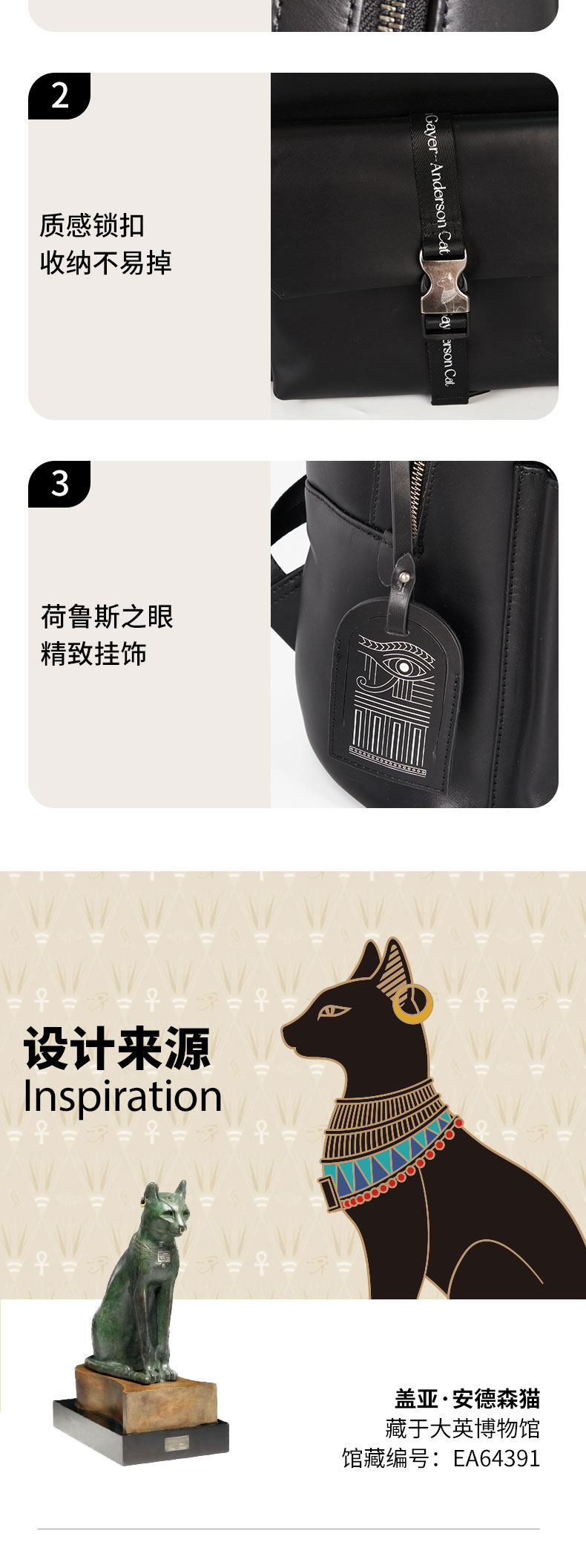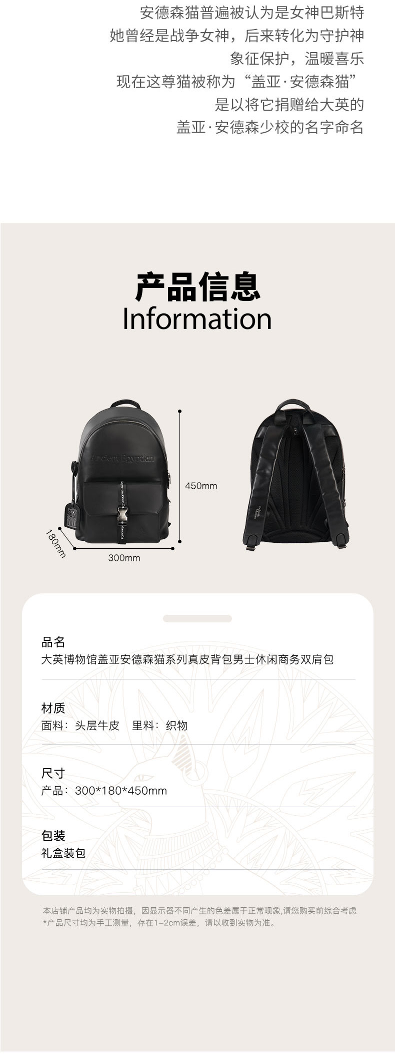 大英博物馆 盖亚·安德森猫系列 头层牛皮革 背包 男女通用 休闲商务 双肩包 大容量 通勤背包 多用途 旅行包
