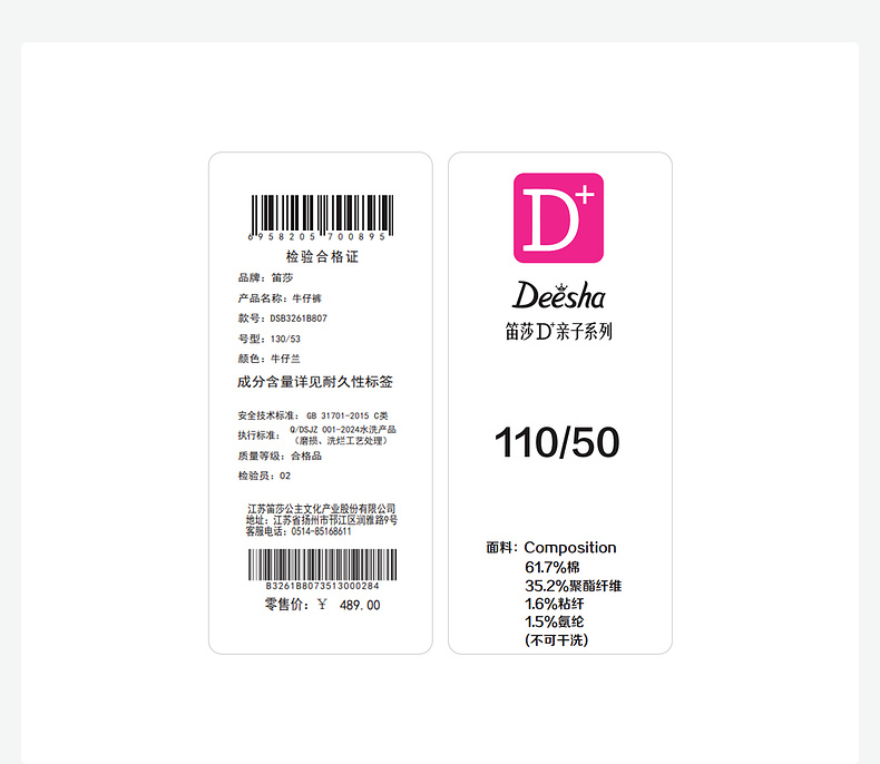 笛莎/Deesha 2026年春季新款女童弯刀牛仔裤