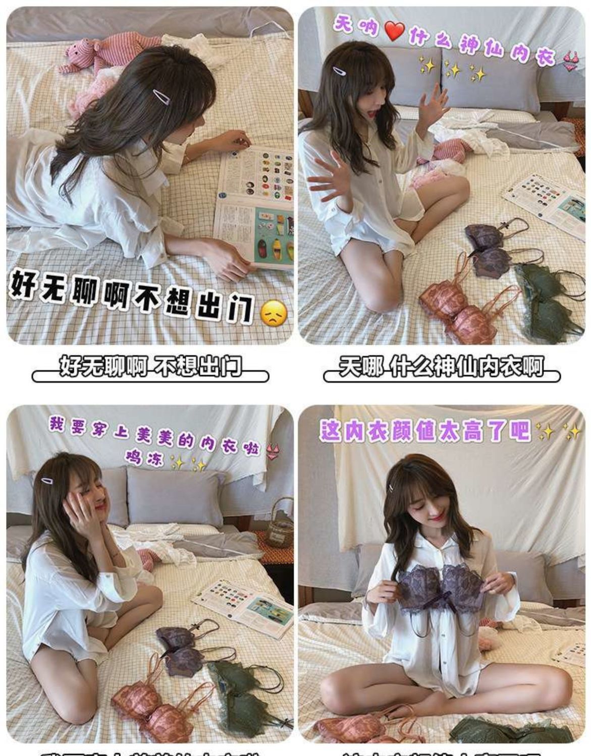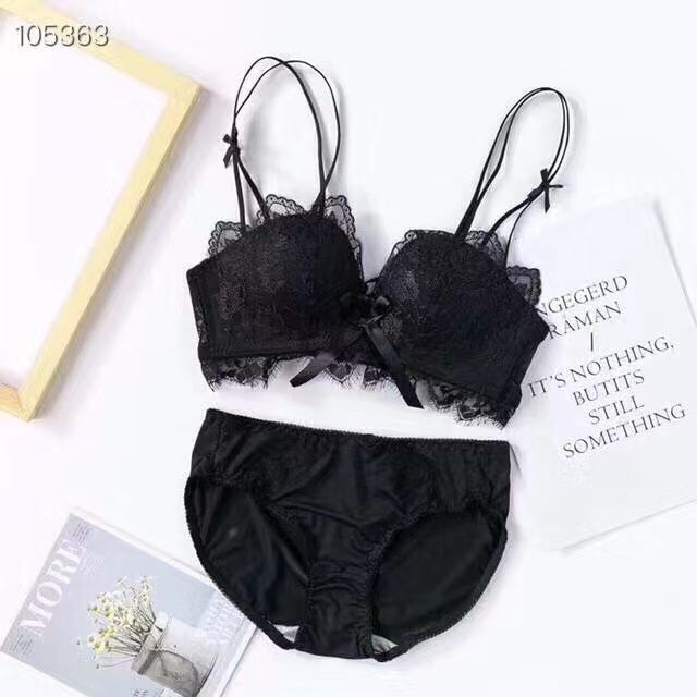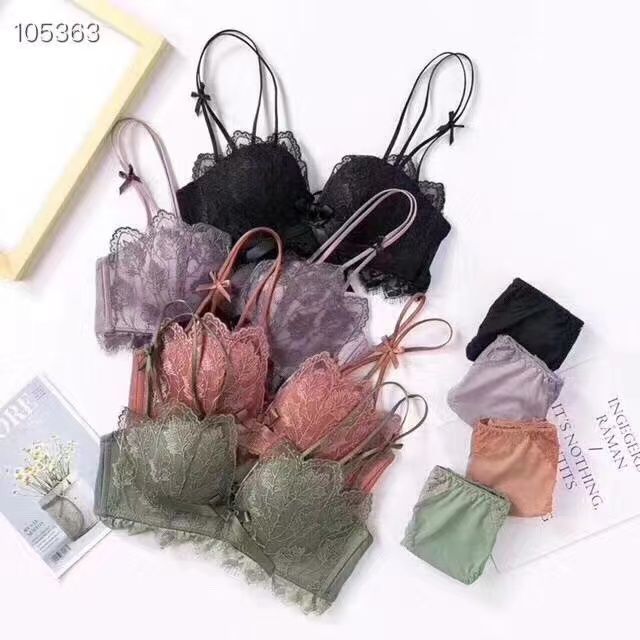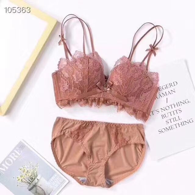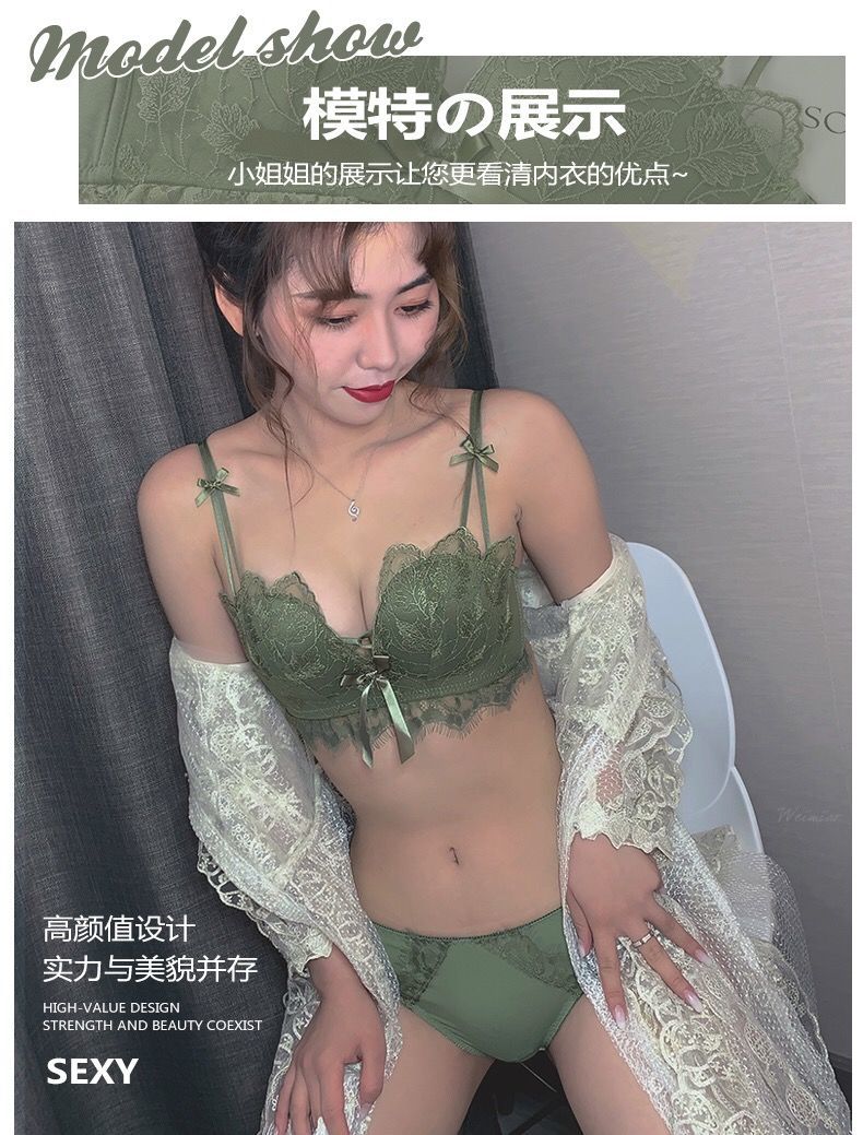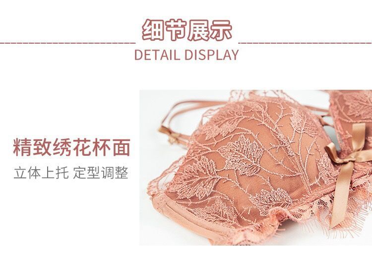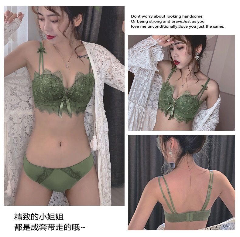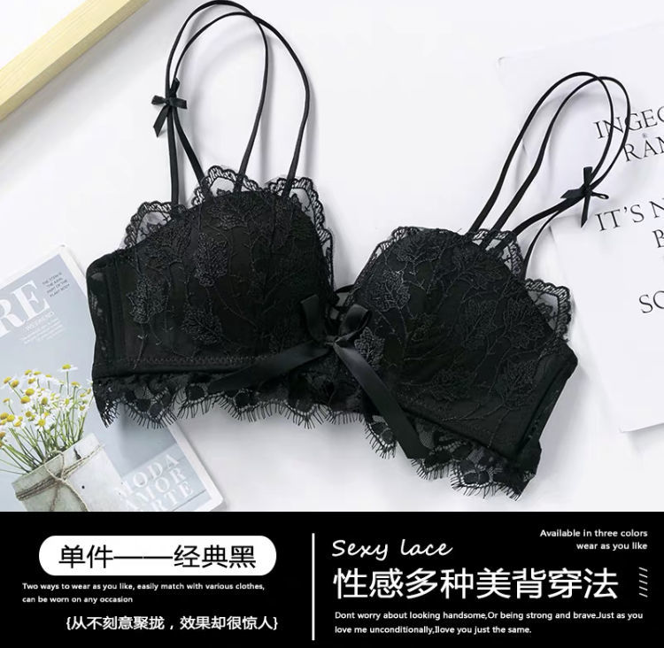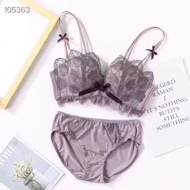 黛唯梵薰衣草无钢圈美背交叉小胸聚拢内衣调整型上托文胸女士蕾丝性感文胸内衣裤套装