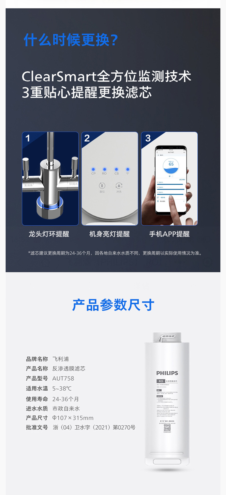 飞利浦(PHILIPS)RO反渗透滤芯AUT758(RO)500G 适配机器AUT1008
