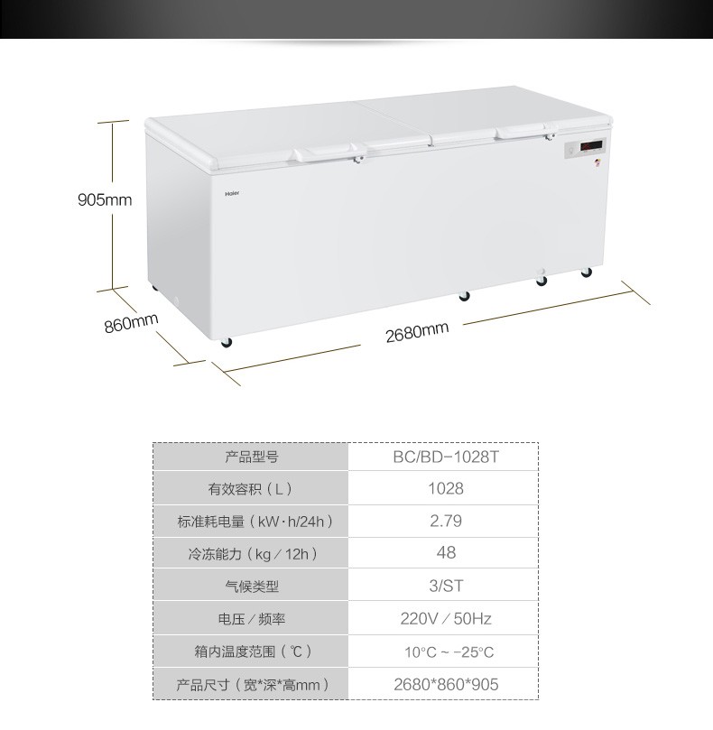 海尔冰柜商用1028升 冷藏冷冻转换电子控温低温顶开门冷柜BC/BD-1028T