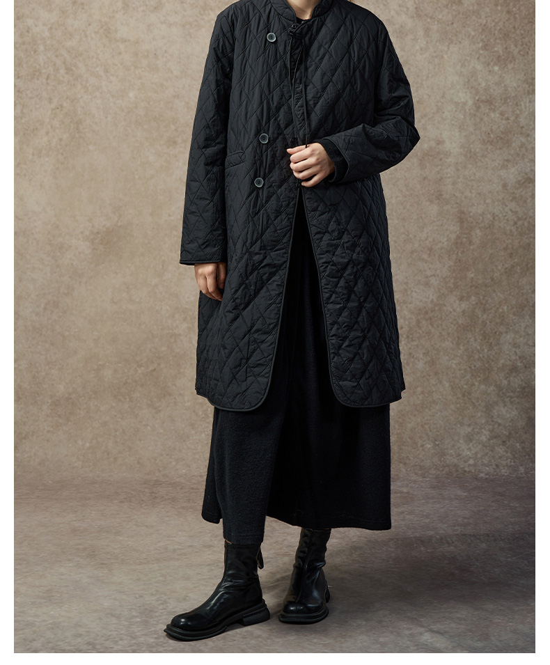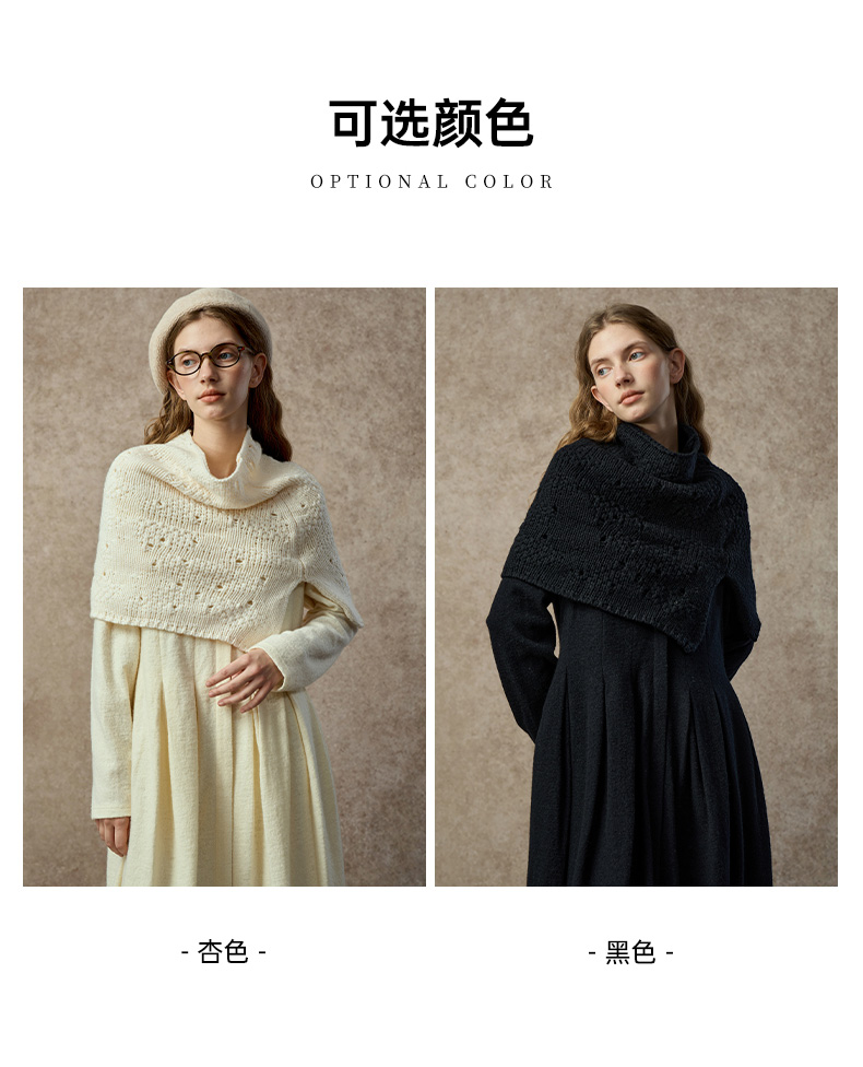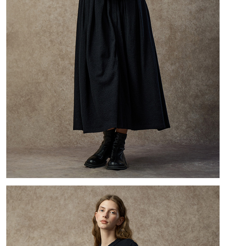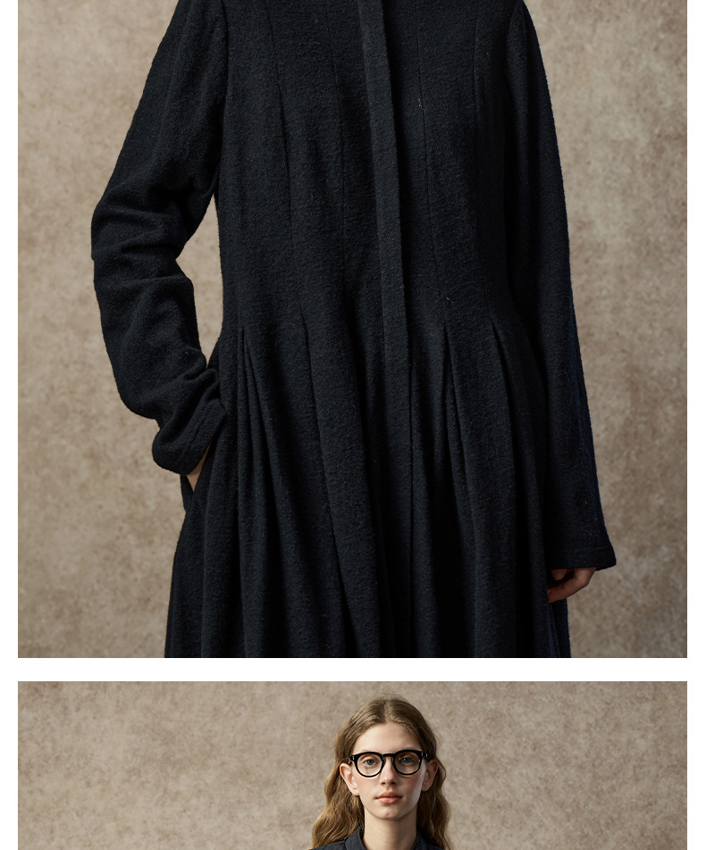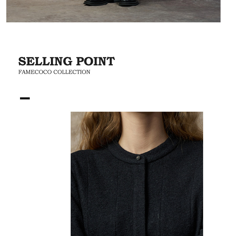 Famecoco简约经典肌理感羊毛开襟连衣裙中式圆领A字长裙FAC8FA017