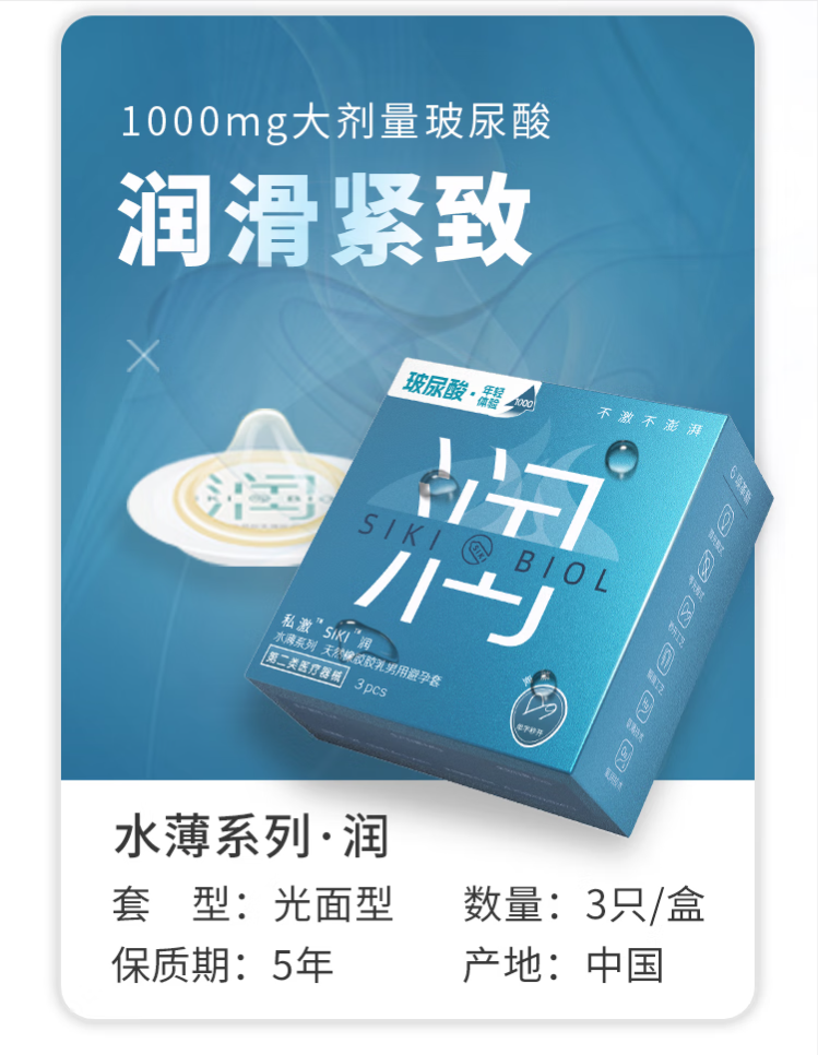SIKI私激避孕套海草滋润玻尿酸安全套超薄003顺滑光面型3只装