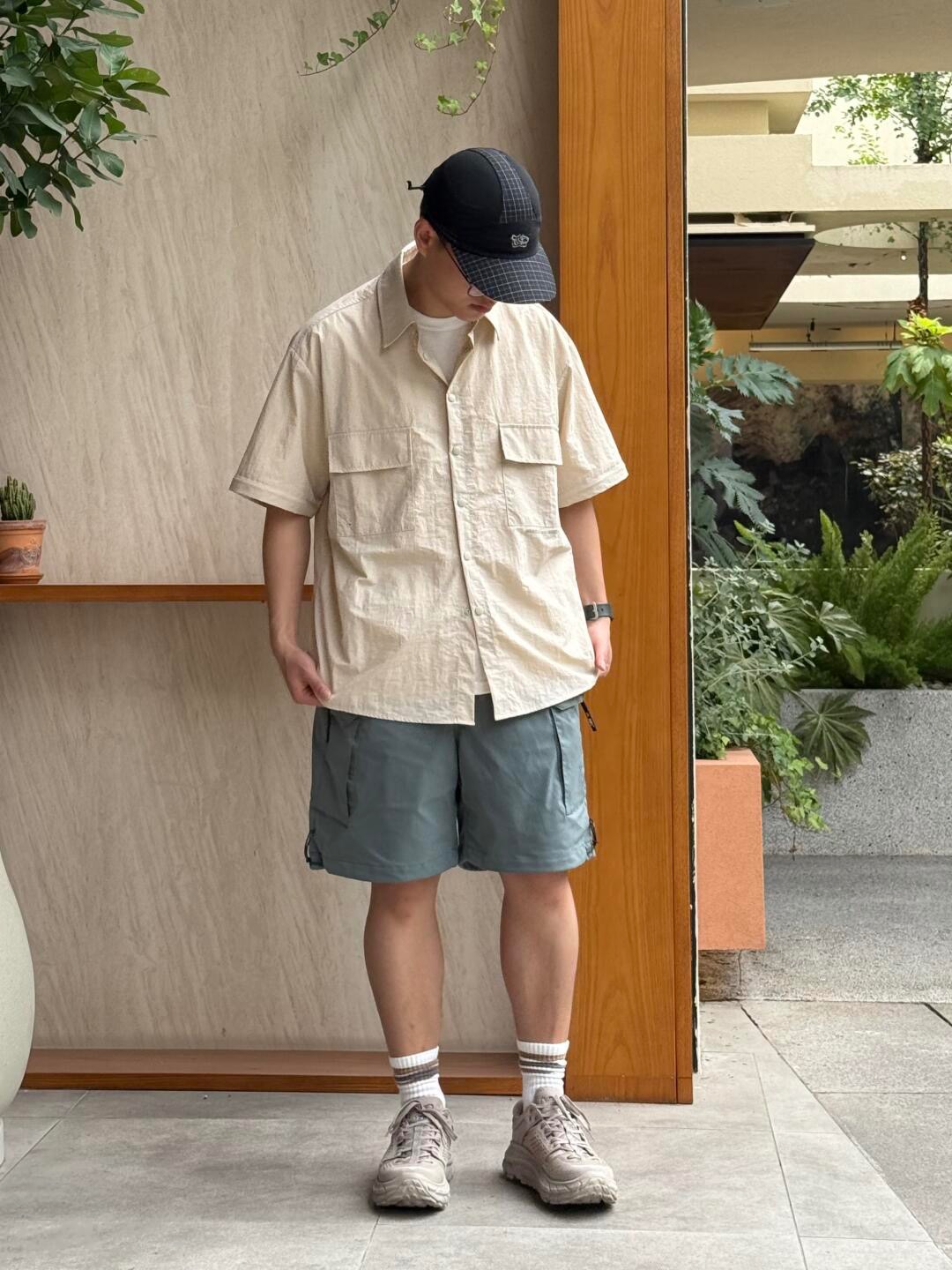 WHEELS and WIND 竹节皱盐缩尼龙袖子可脱卸机能性衬衫
