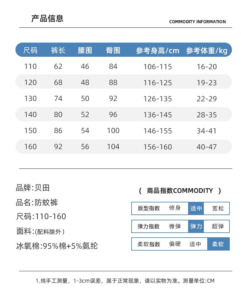 贝田男童防蚊裤夏季薄款儿童裤子夏装休闲裤男孩帅气夏天运动裤潮