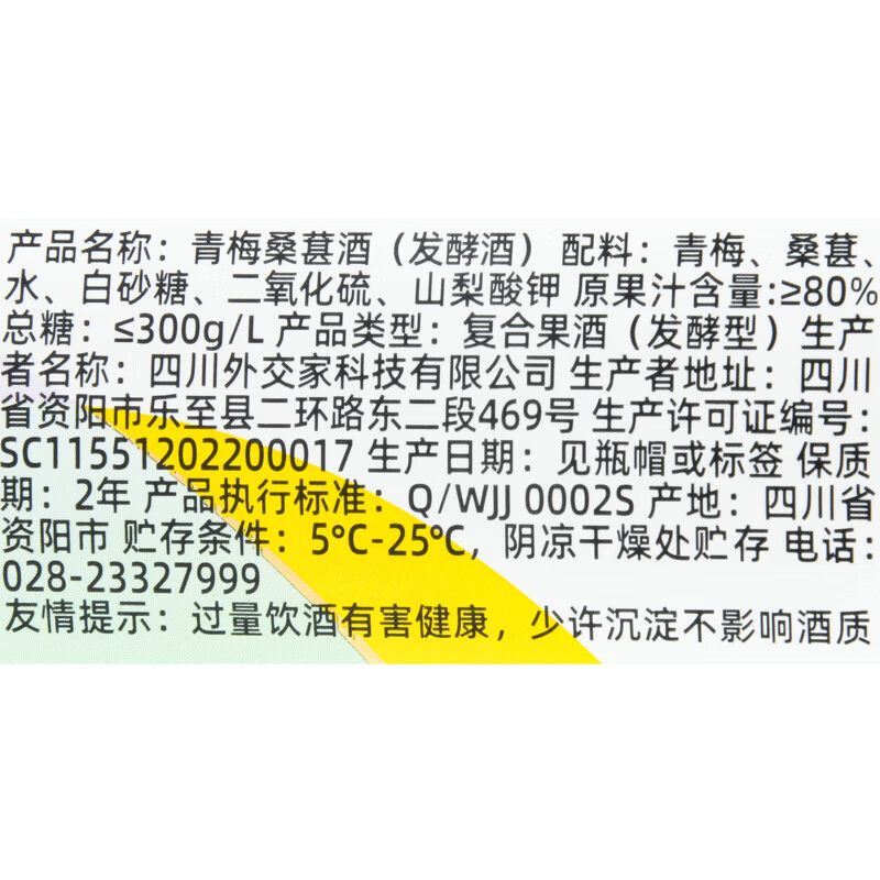 乐意青梅桑葚酒9°330ml