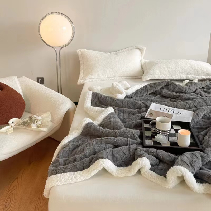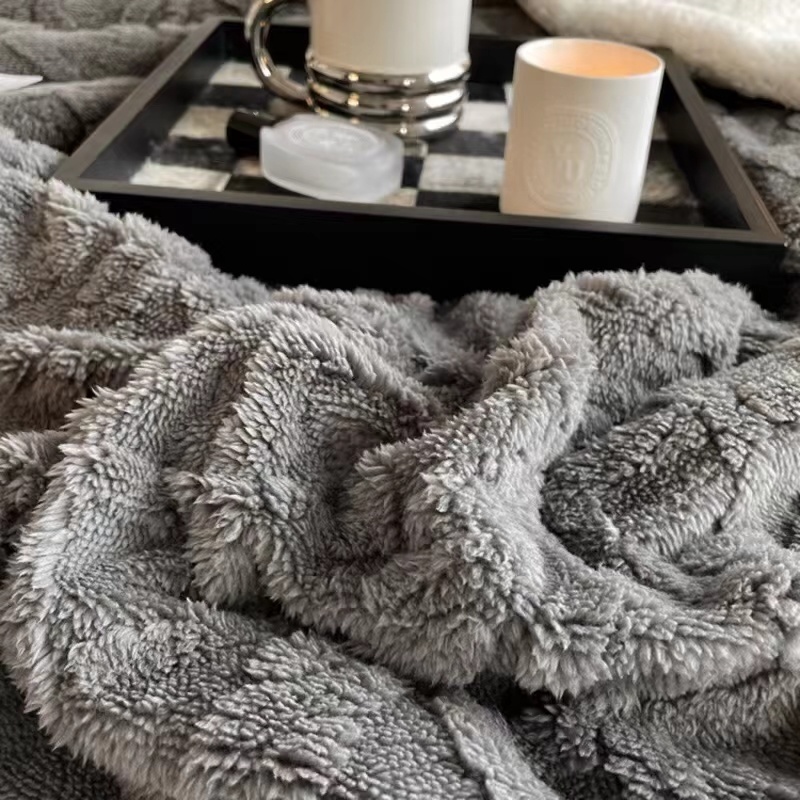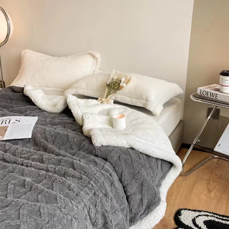 总有一些温暖与美好,与你不期而遇。 面料:正面320g塔芙绒提花剪花工艺 反面230g定制素色大朵羊羔绒