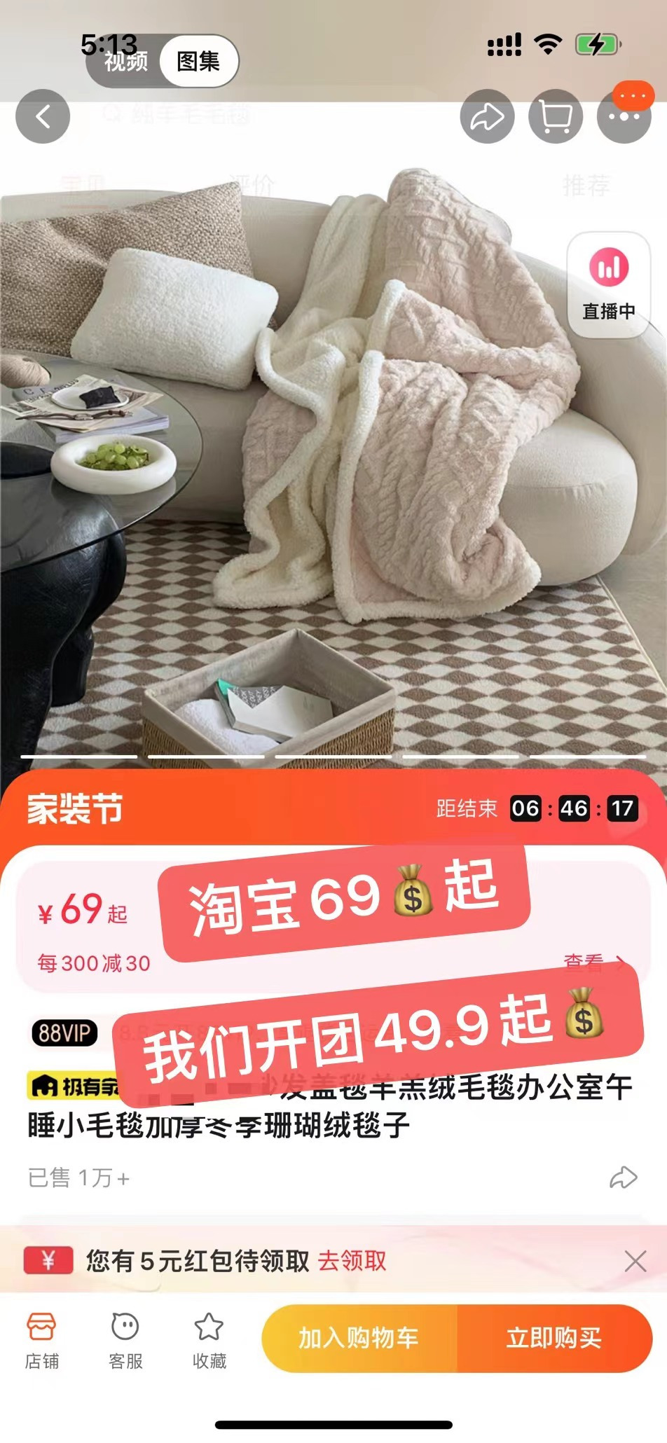 原版塔芙蓉毛毯 某宝这个价格销量卖了1万件🤯 今天我们直接清仓价出 ! 之前开团售价都在69! 我们今天直接49.9带走一块大毛毯❗️ 强烈推荐人手2条‼️‼️ 这个价格快冲