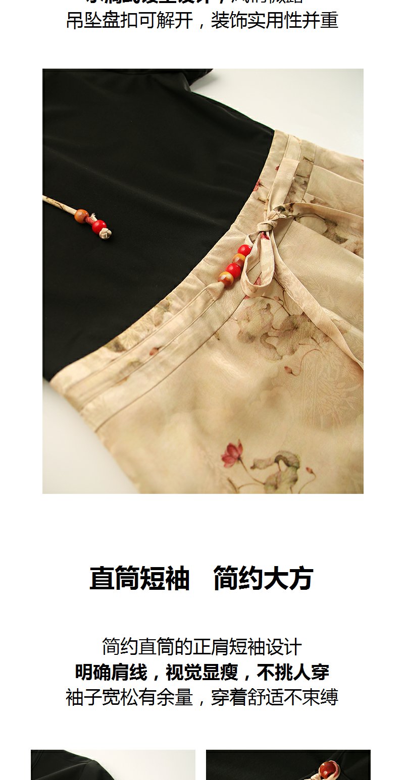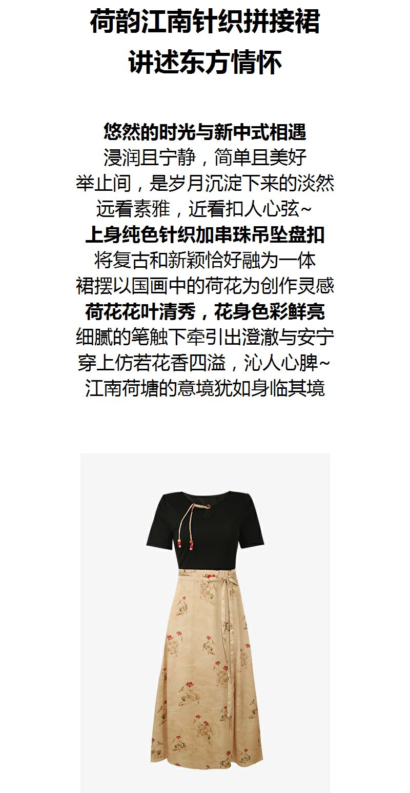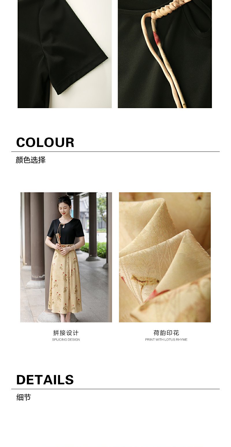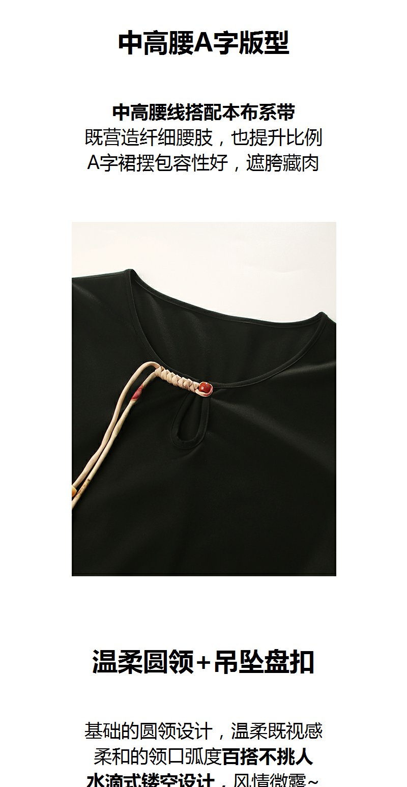 未风黑色针织拼接连衣裙女夏2025年新款夏季高腰新中式假两件裙子