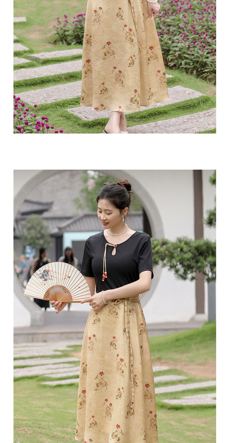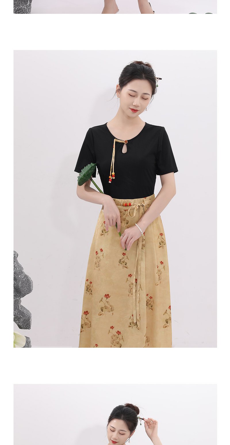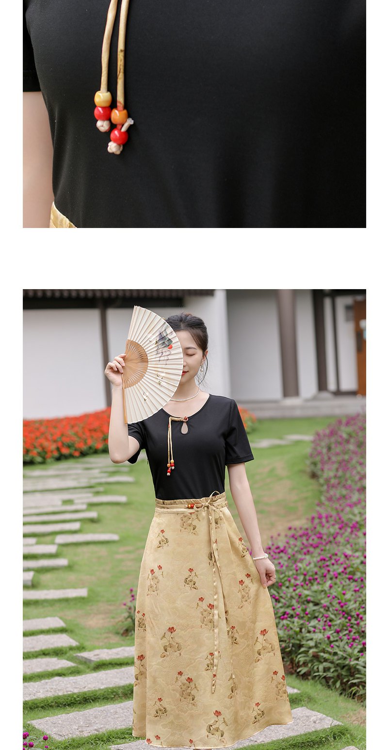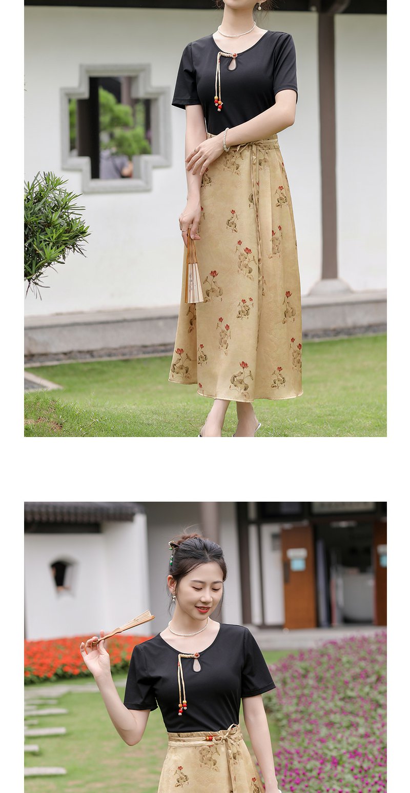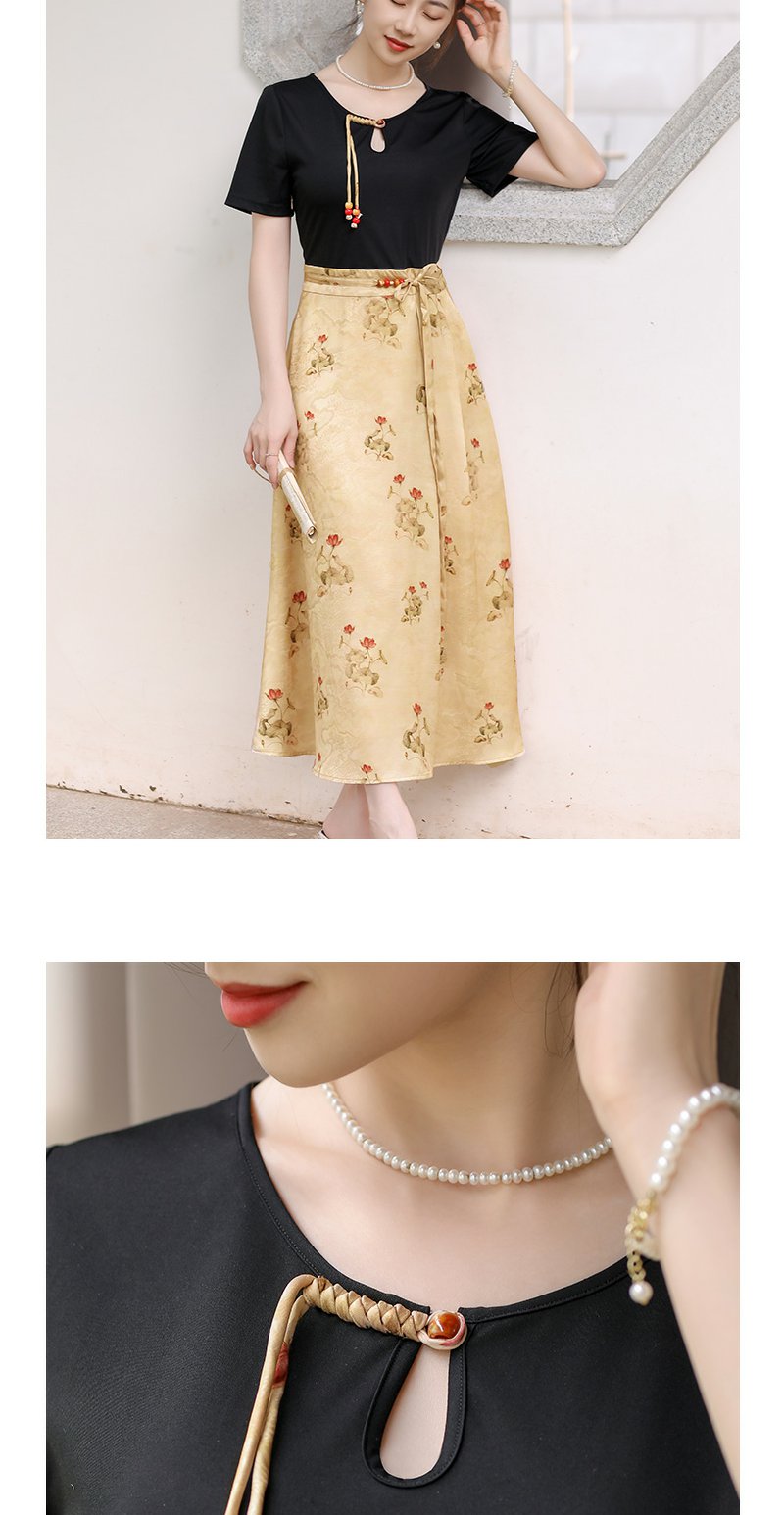 未风黑色针织拼接连衣裙女夏2025年新款夏季高腰新中式假两件裙子